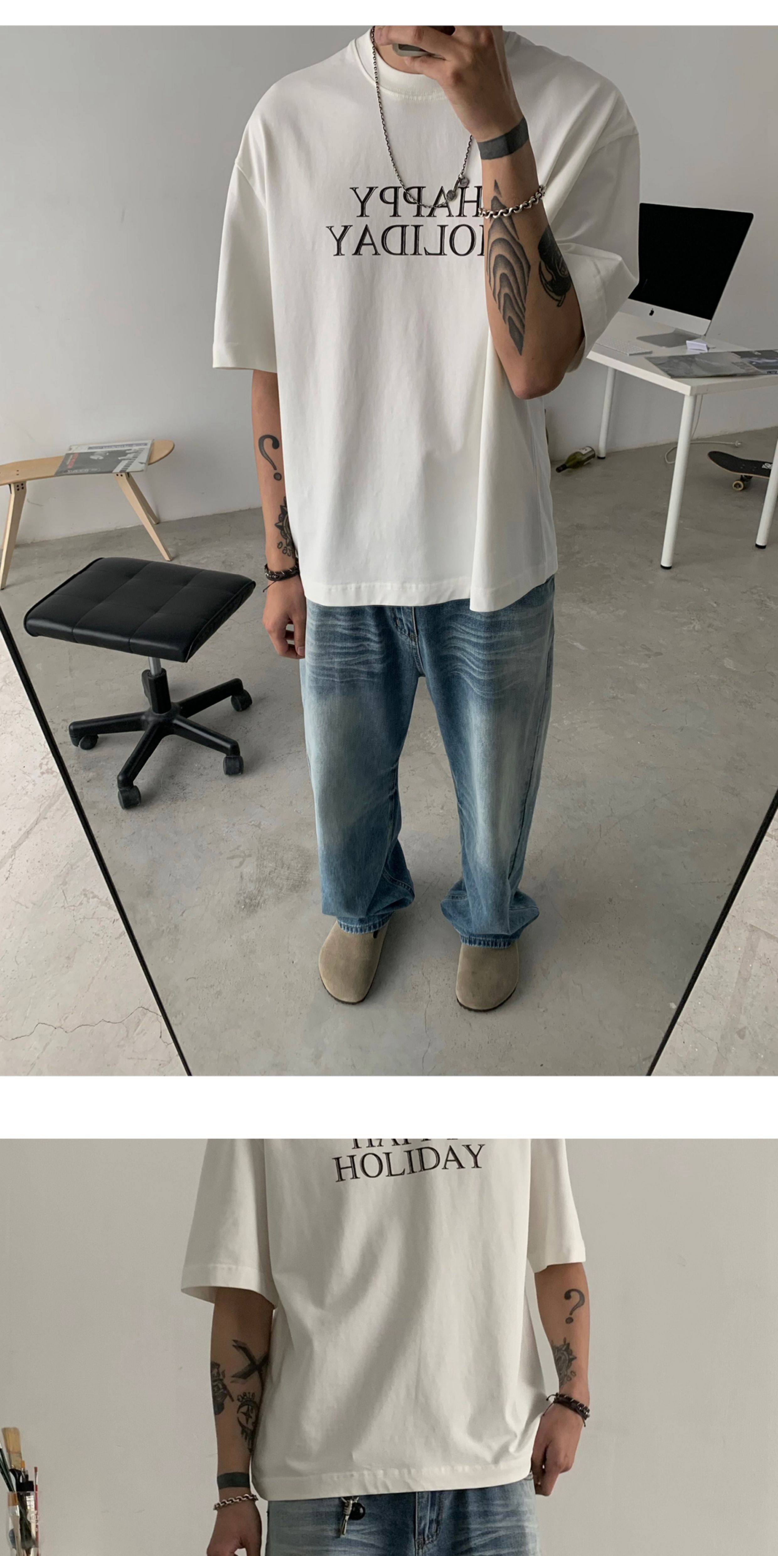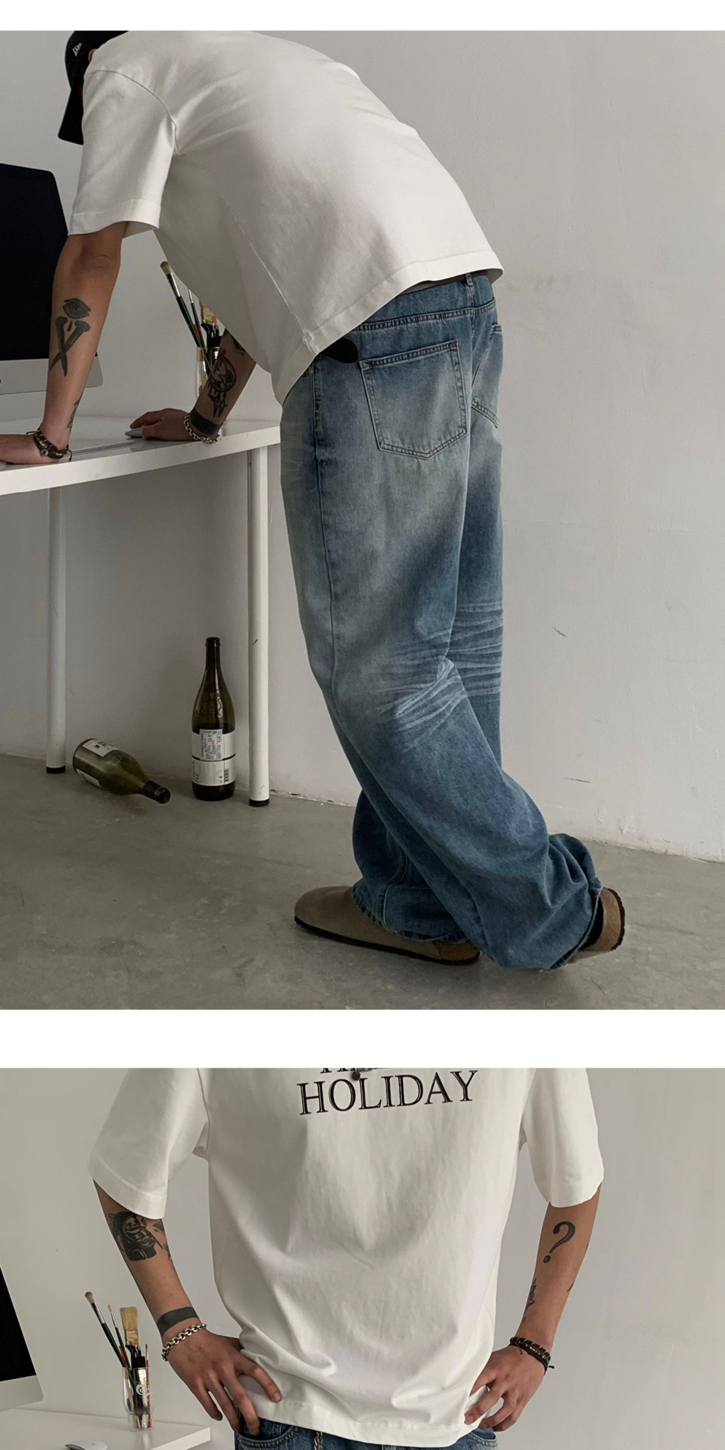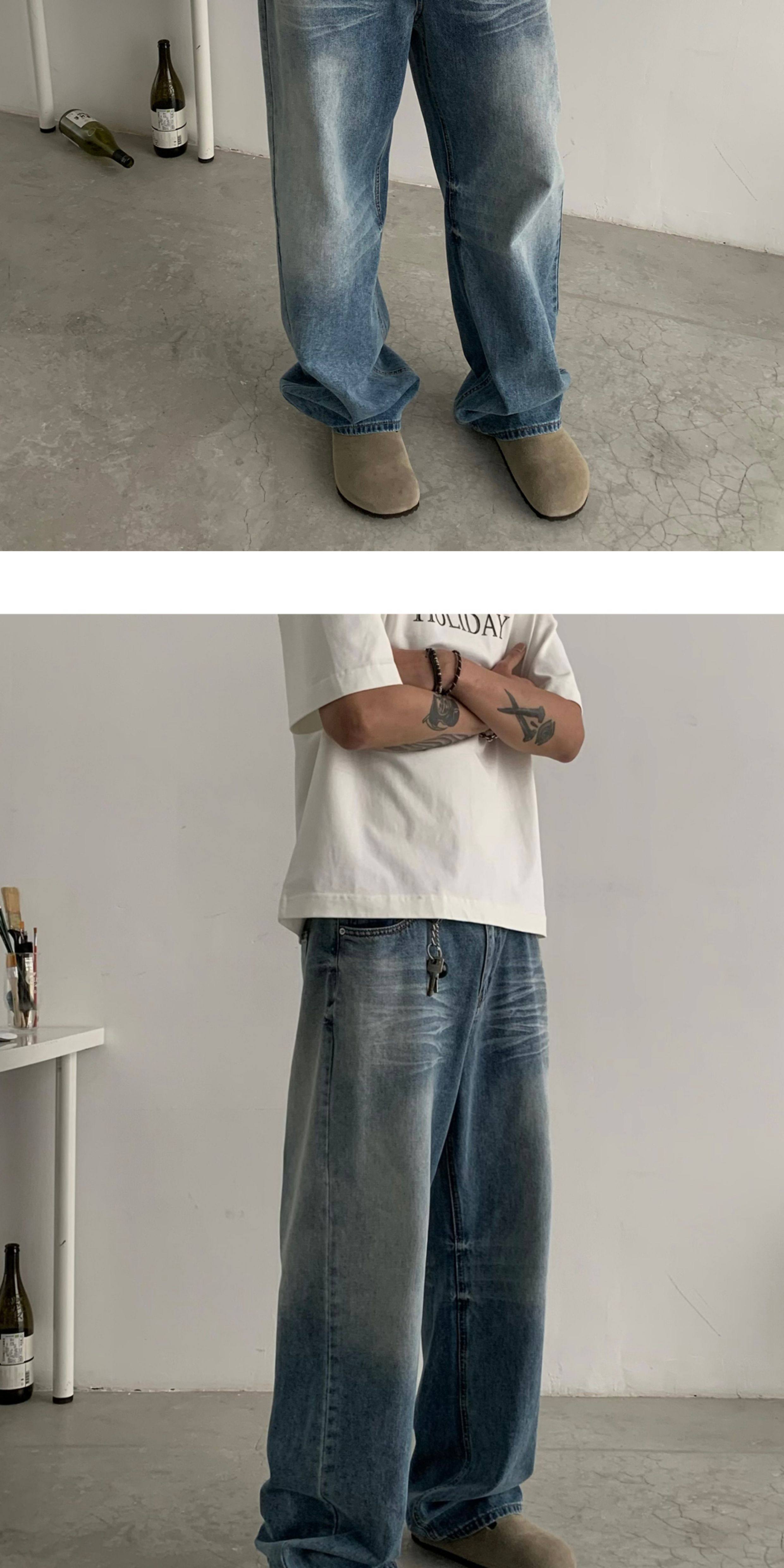 Inknots American Retro Washed Clean Fit Straight-Leg Jeans Unisex Trendy Loose Casual Pants