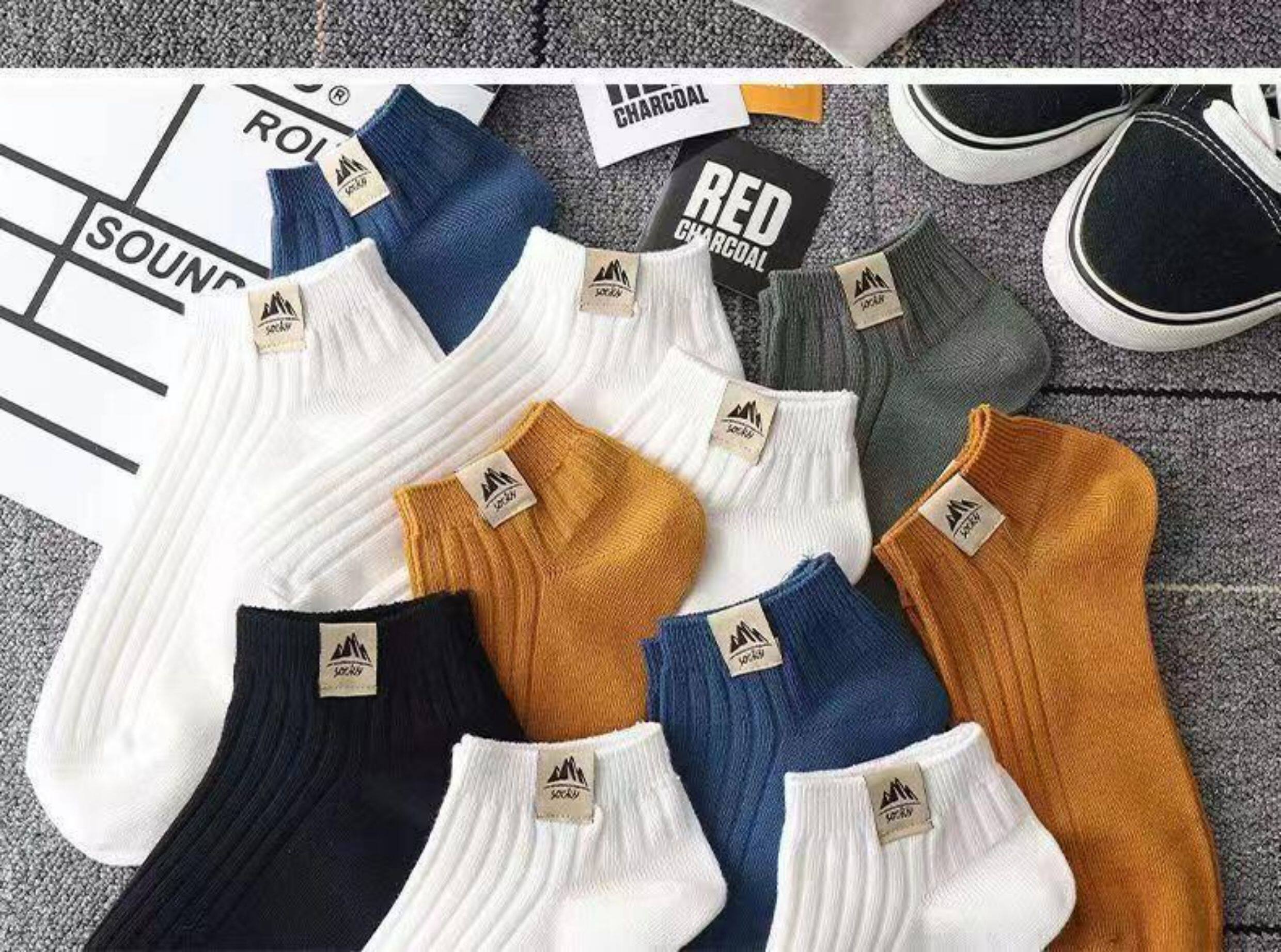 Men's Trendy Socks ins Summer Thin Versatile Short Socks Deodorant Sweat-Absorbent Low-Cut Spring and Autumn Black and White Men's No-Show Socks