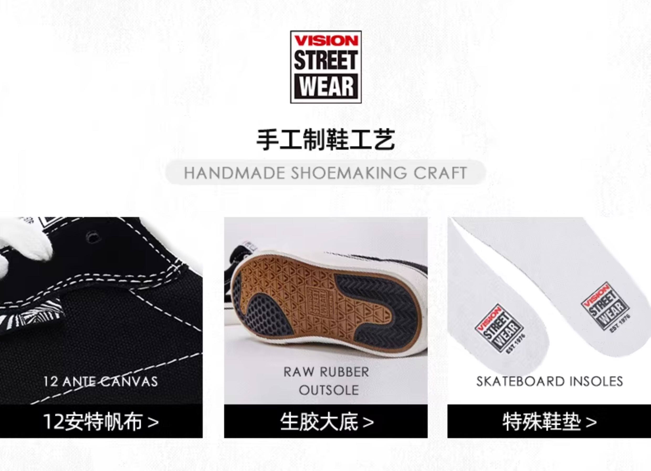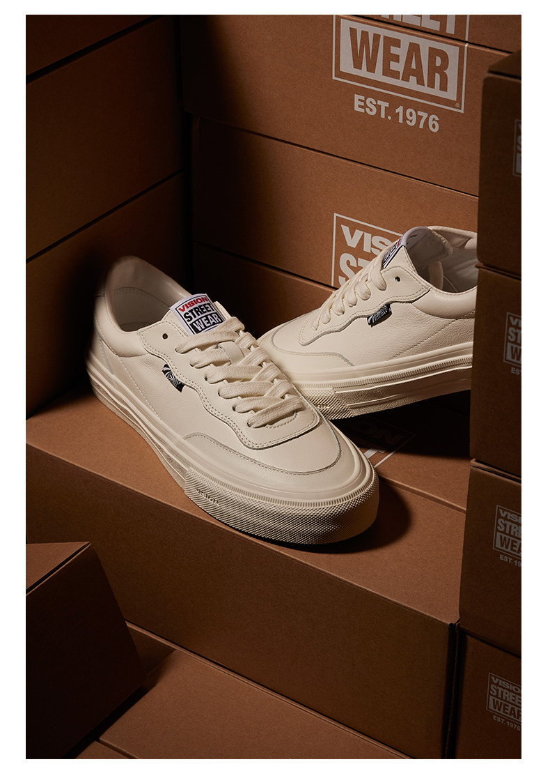 Vision Official Flat Top Retro Street Skateboard Shoes Full Leather Low-Top Casual Sneakers for Men and Women White Shoes