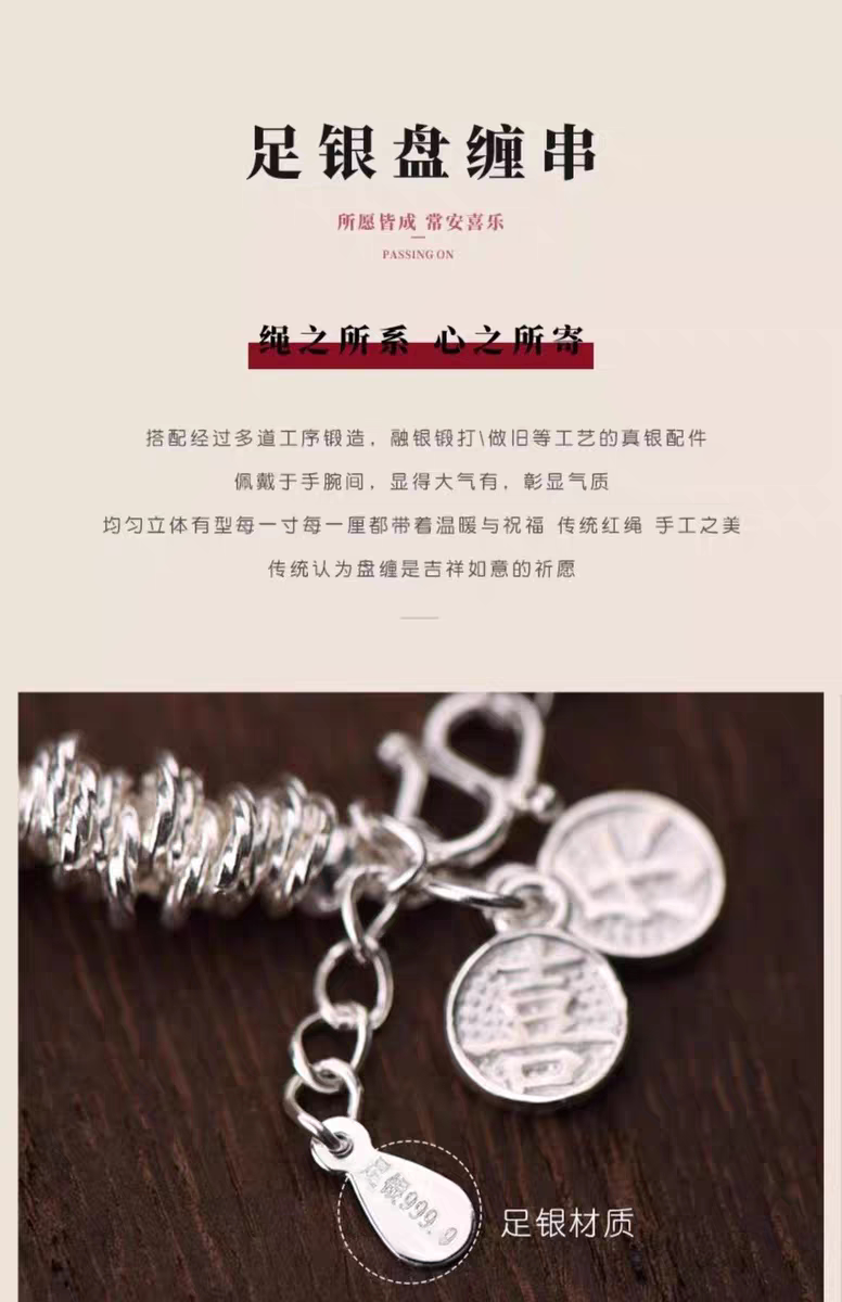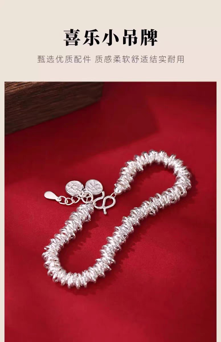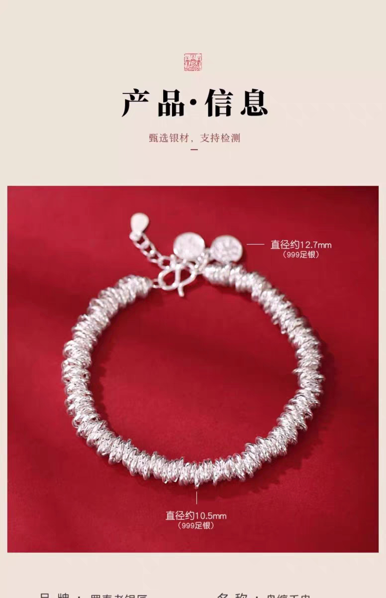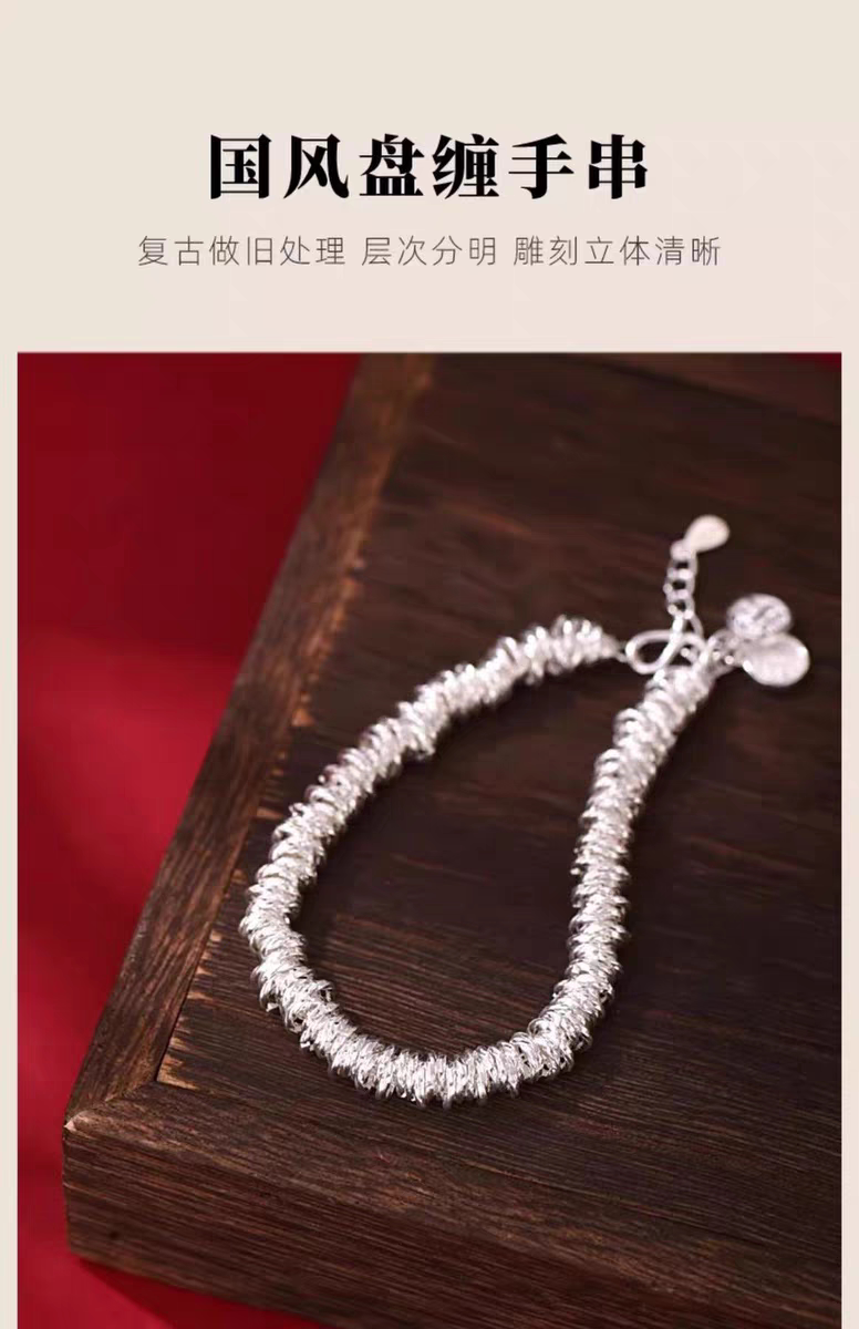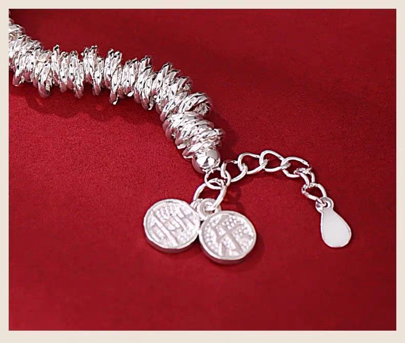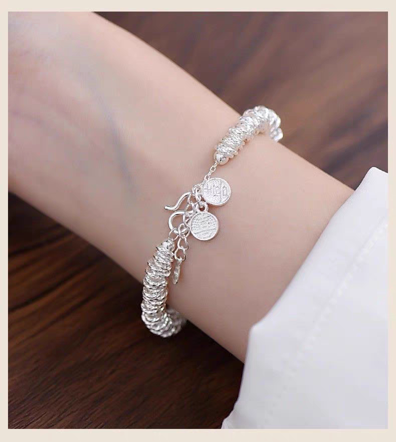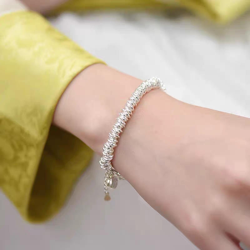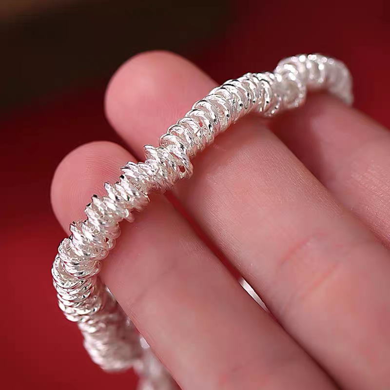 Pure Silver 9999 Sterling Silver Small Round Coiled Bracelet, Heavy Weight, Women's Style, Light Luxury Broken Silver Bracelet for Valentine's Day