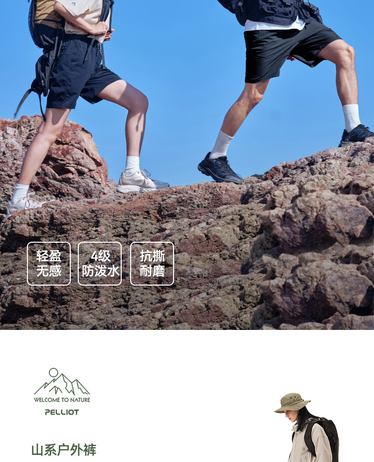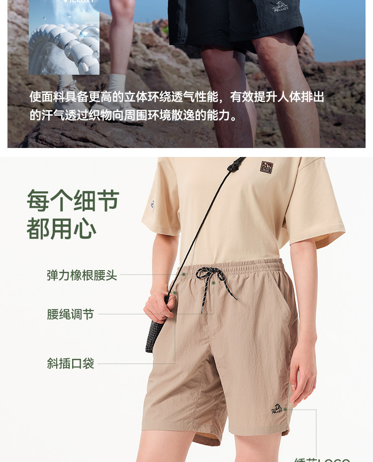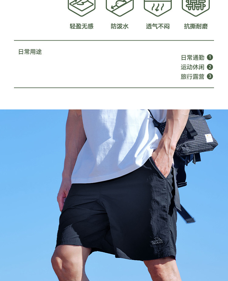 Pelliot Outdoor Climbing Shorts Men's New Lightweight Breathable Sports Shorts Women's Splash-Proof Casual Shorts