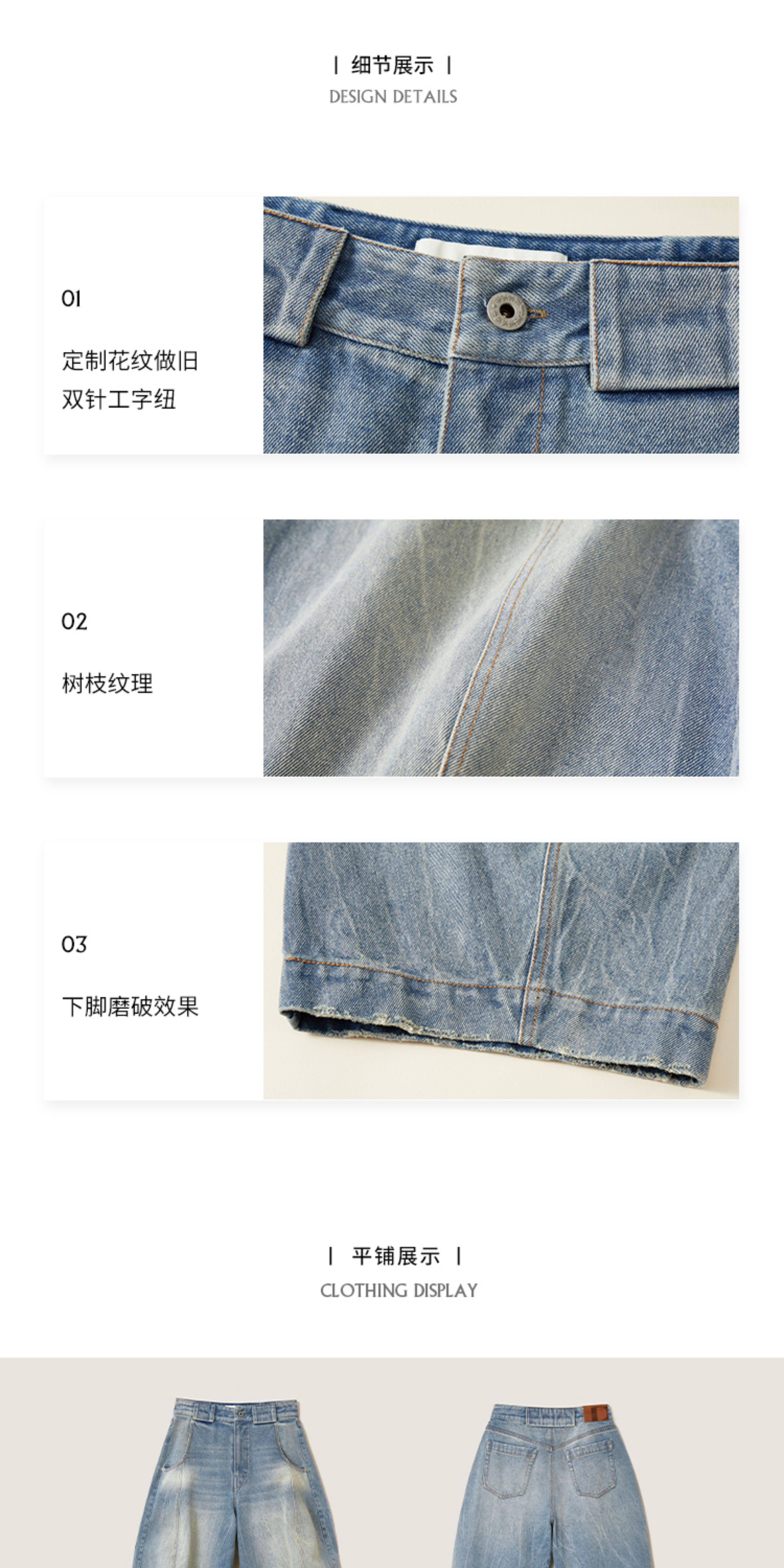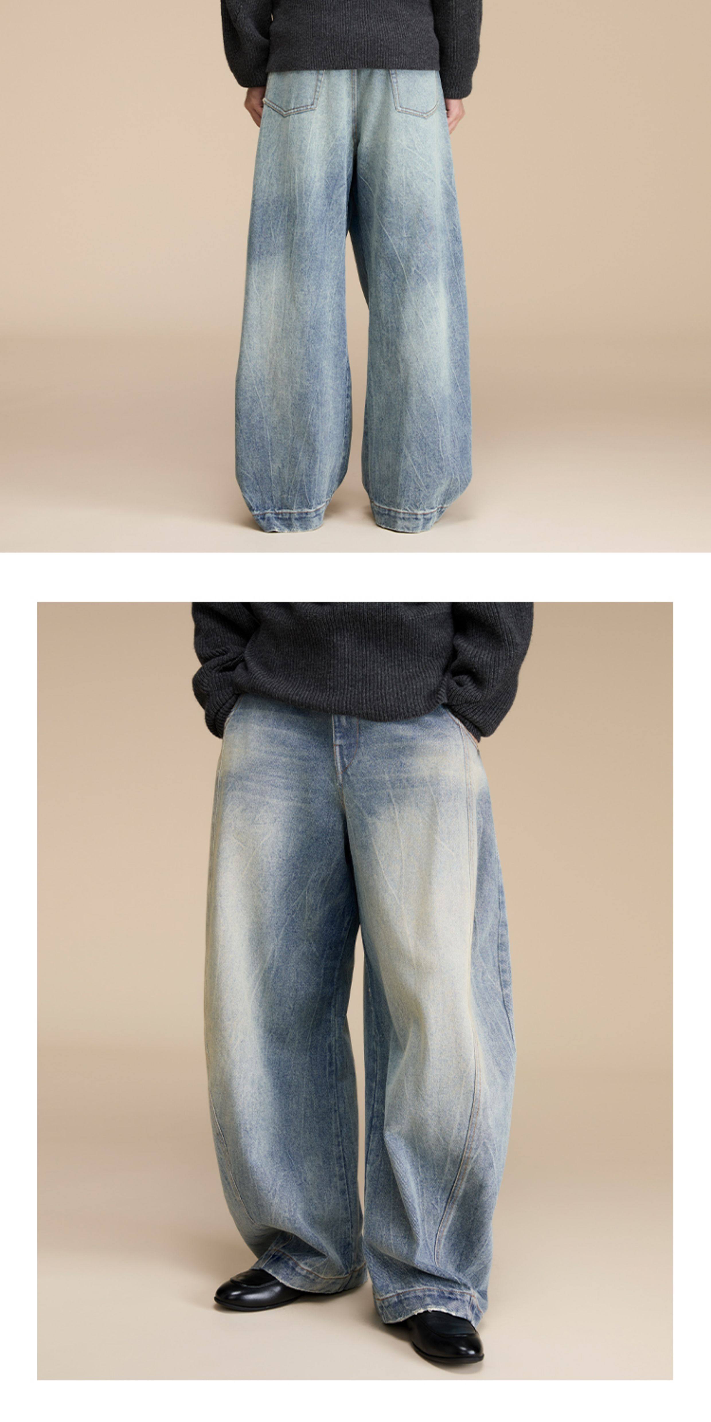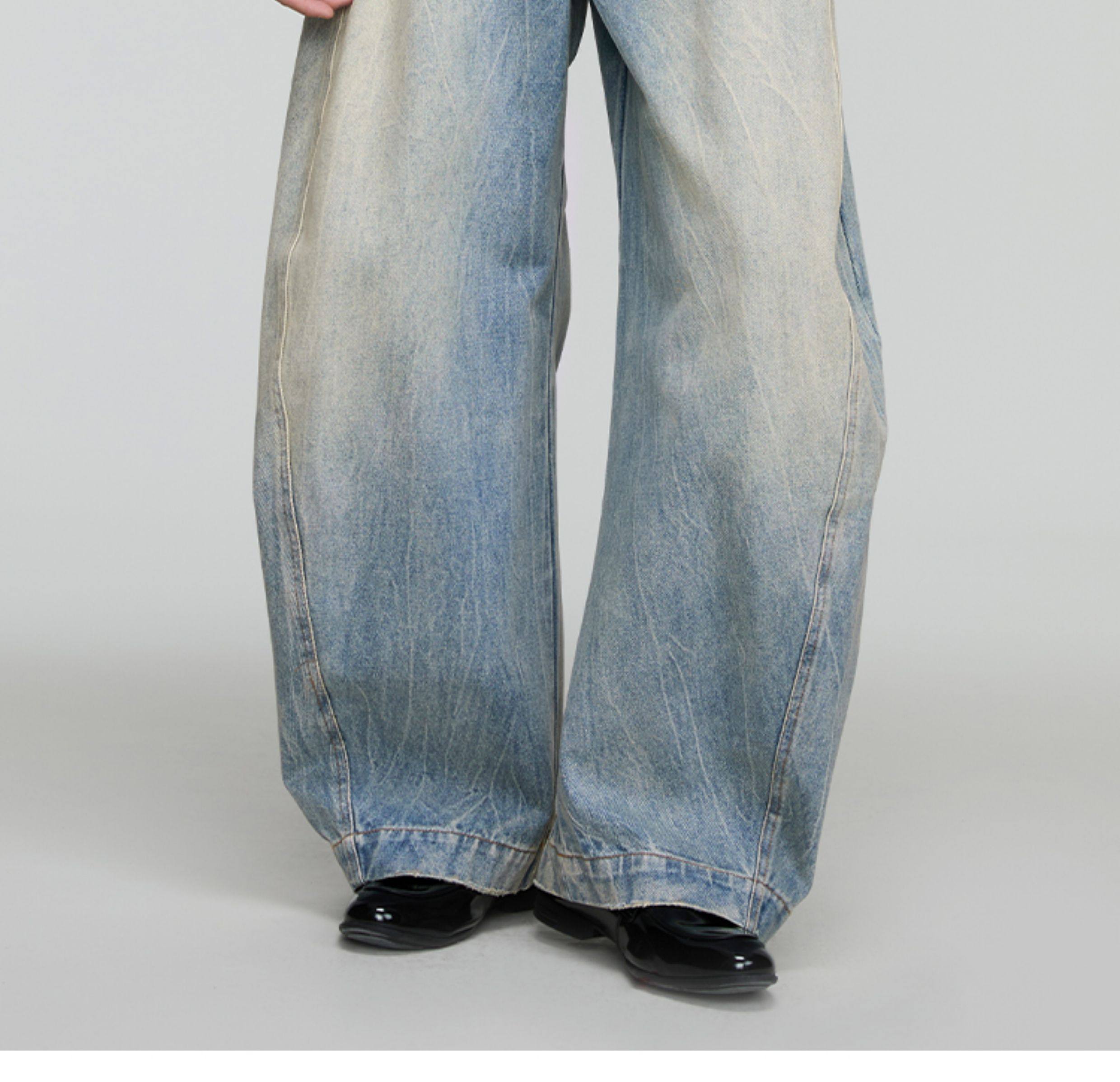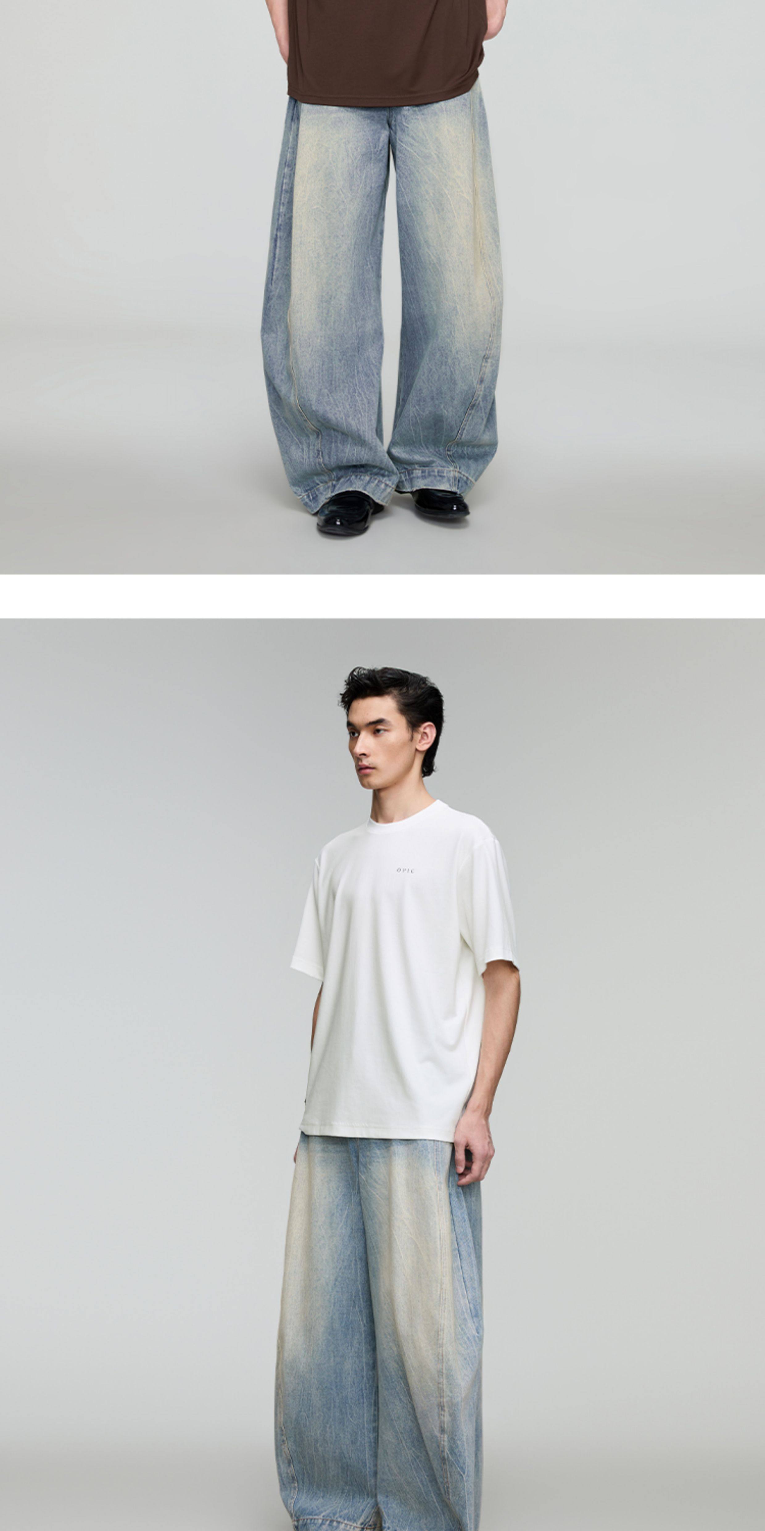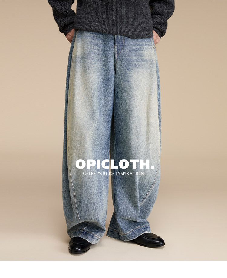 Opicloth/Opic Vintage Washed Distressed Branch Texture Scimitar Loose Fit Casual Denim Pants