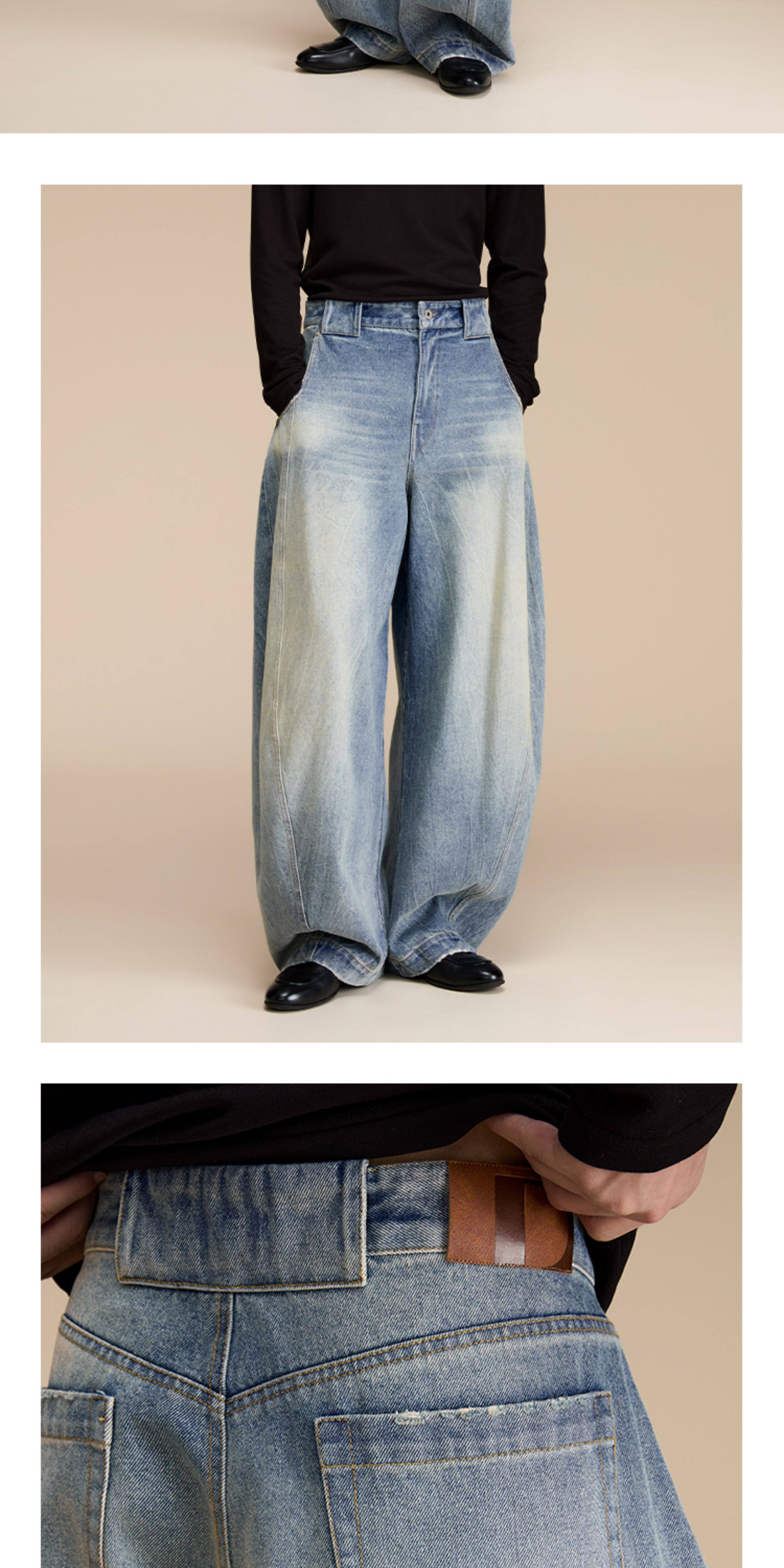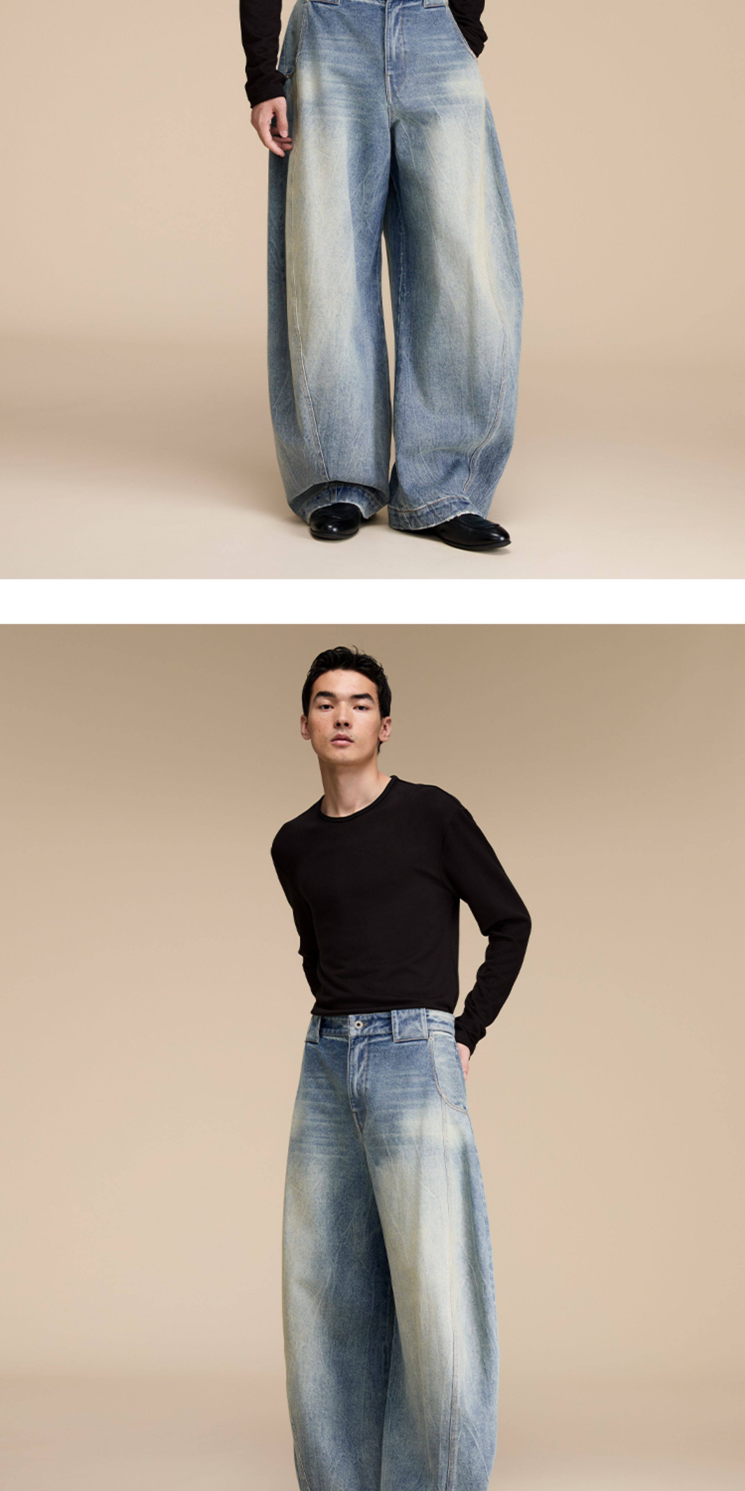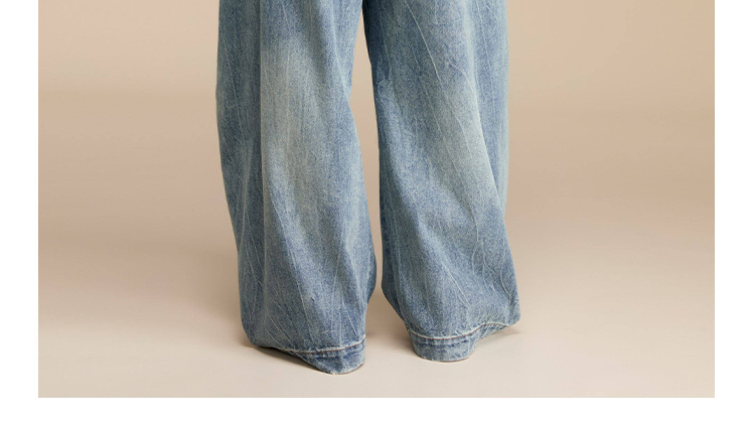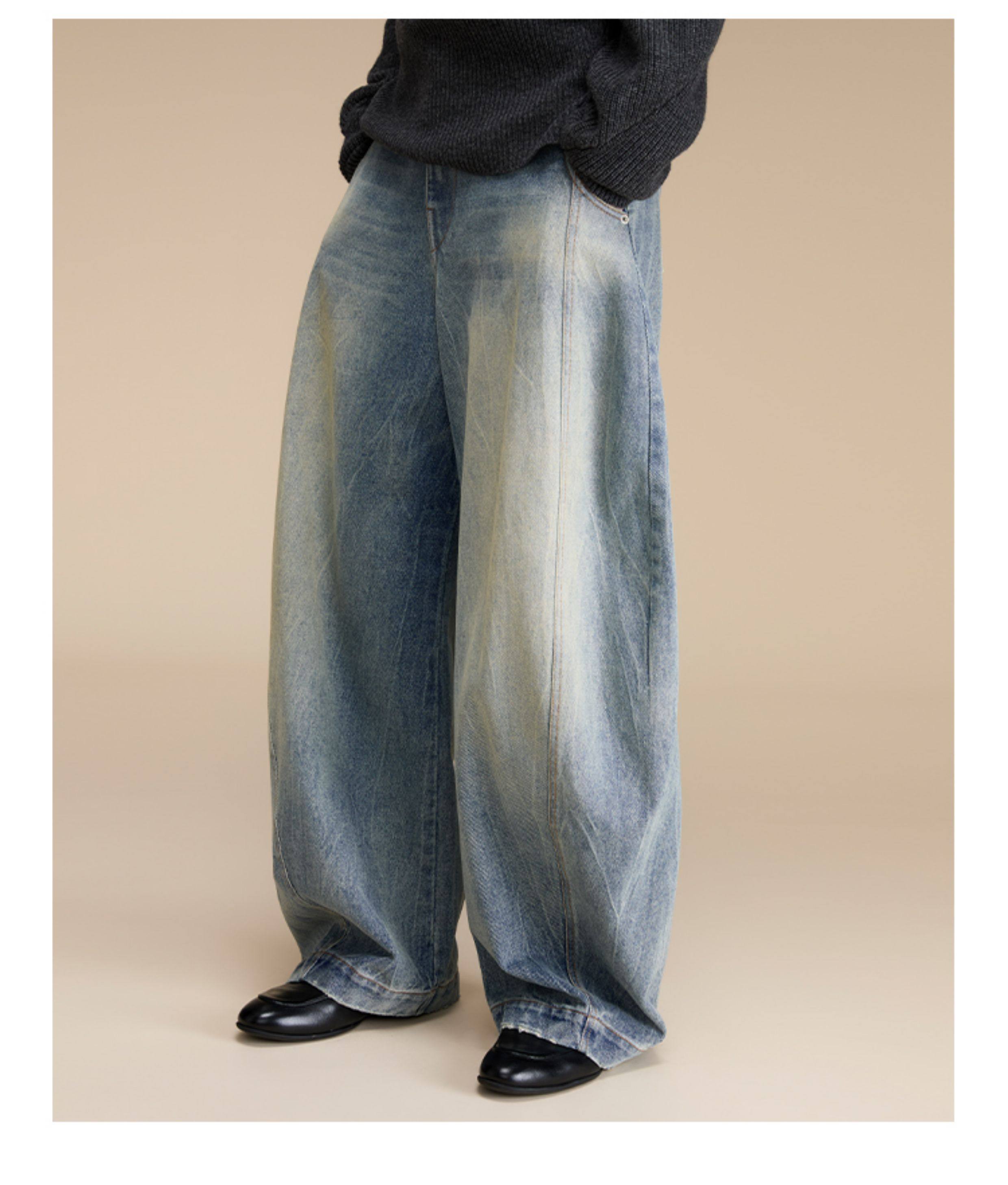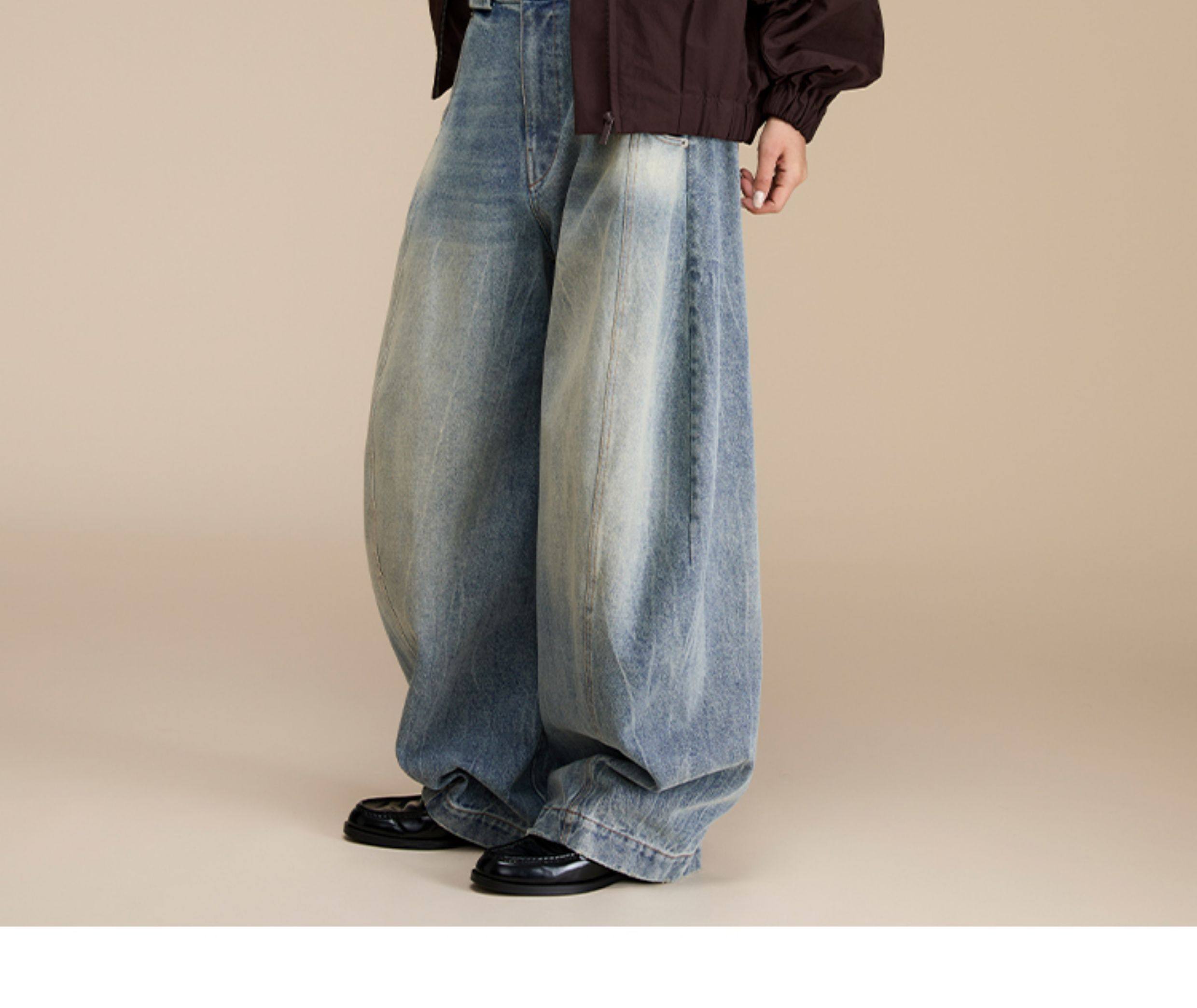 Opicloth/Opic Vintage Washed Distressed Branch Texture Scimitar Loose Fit Casual Denim Pants