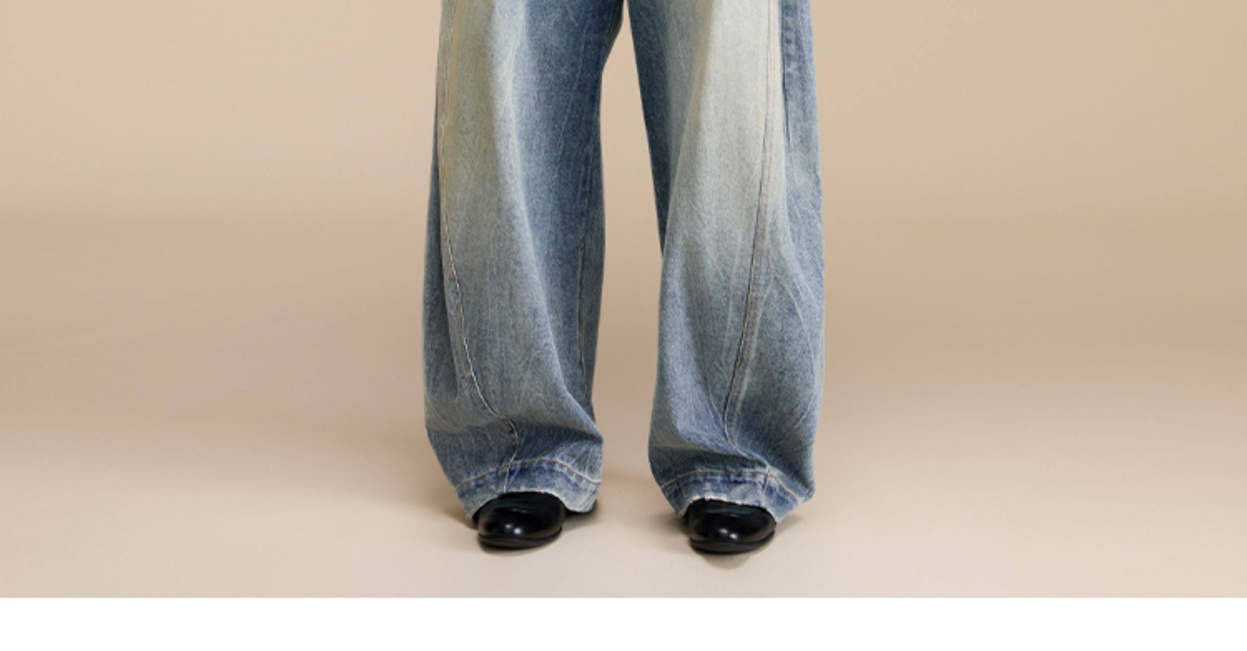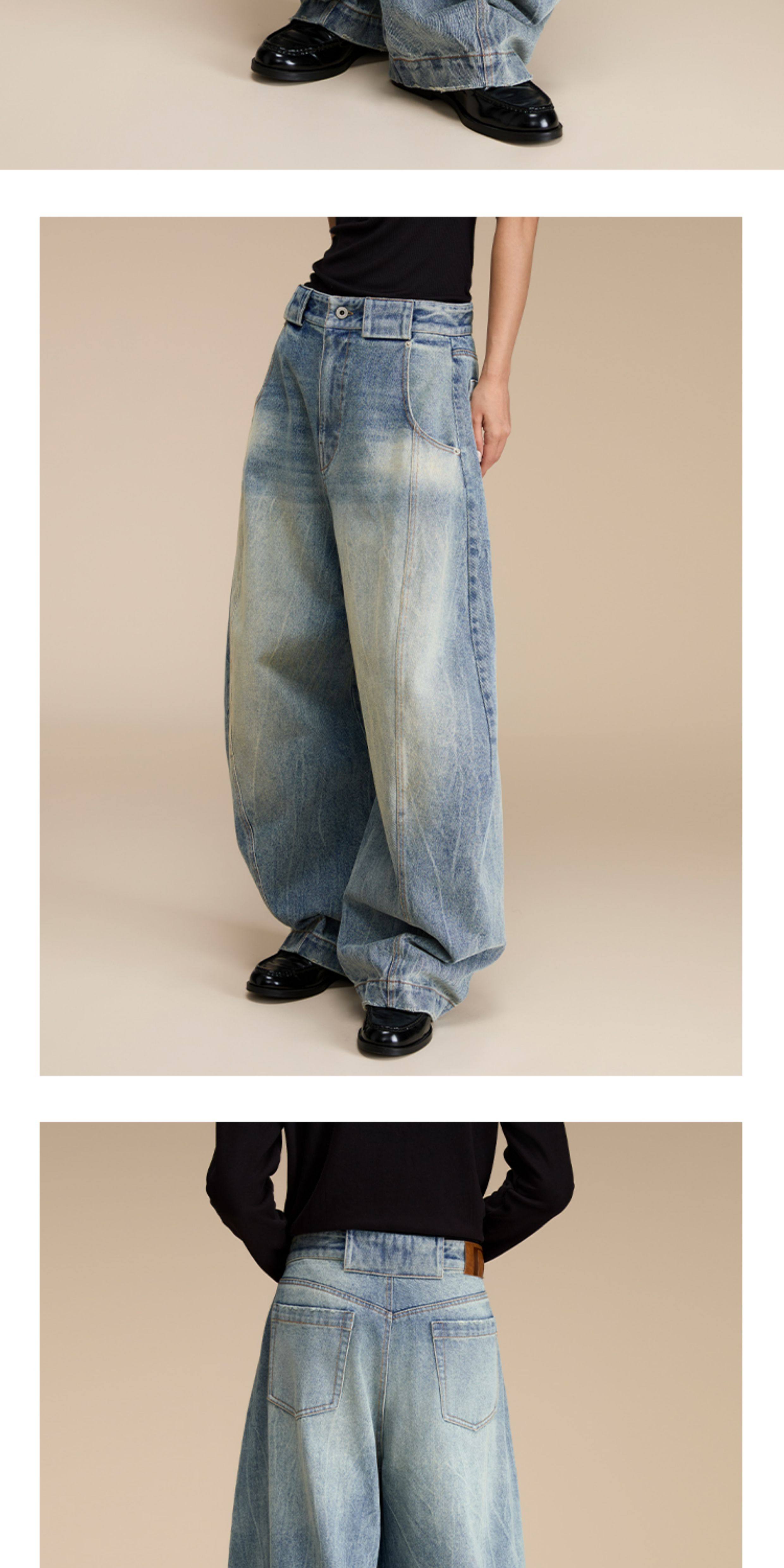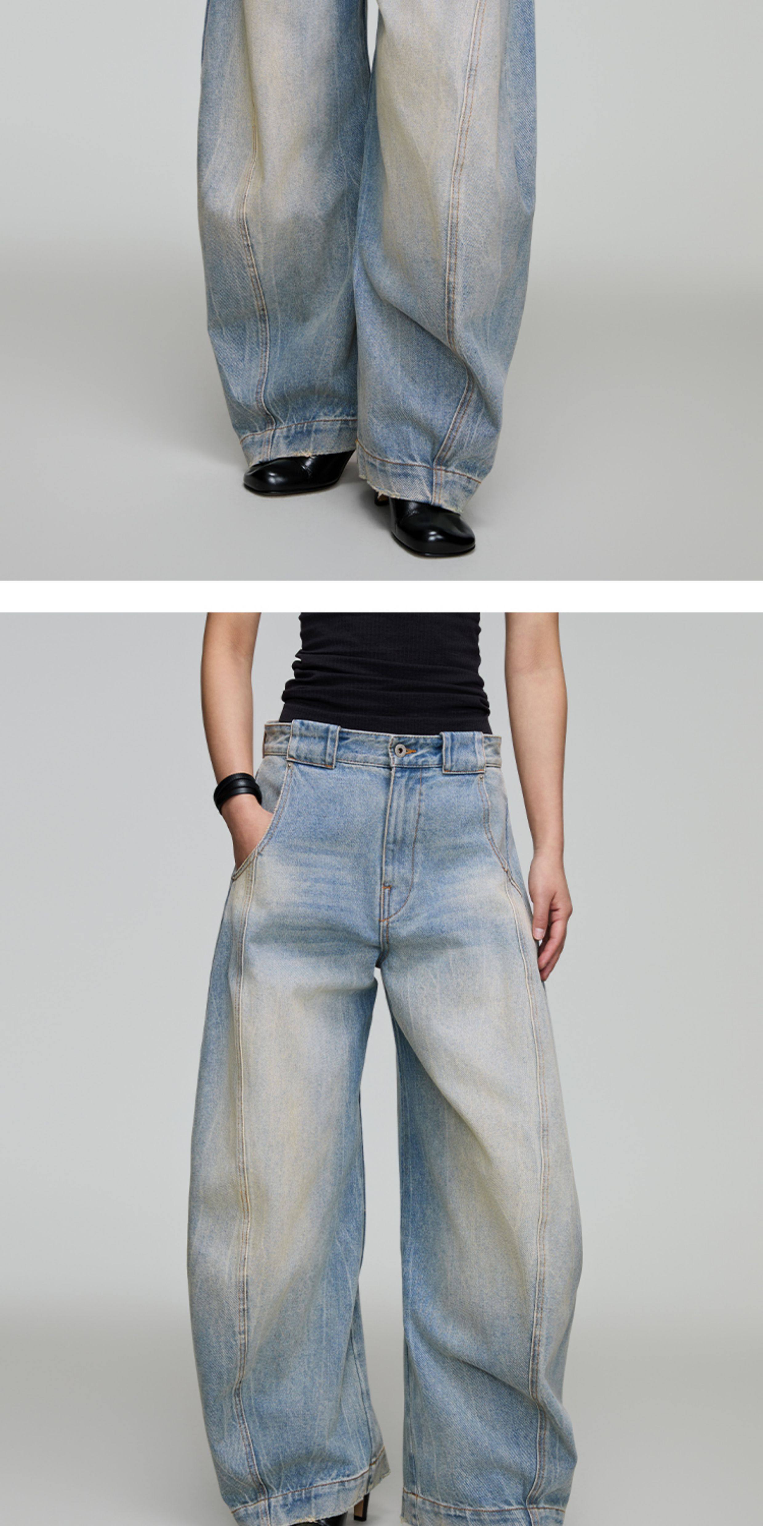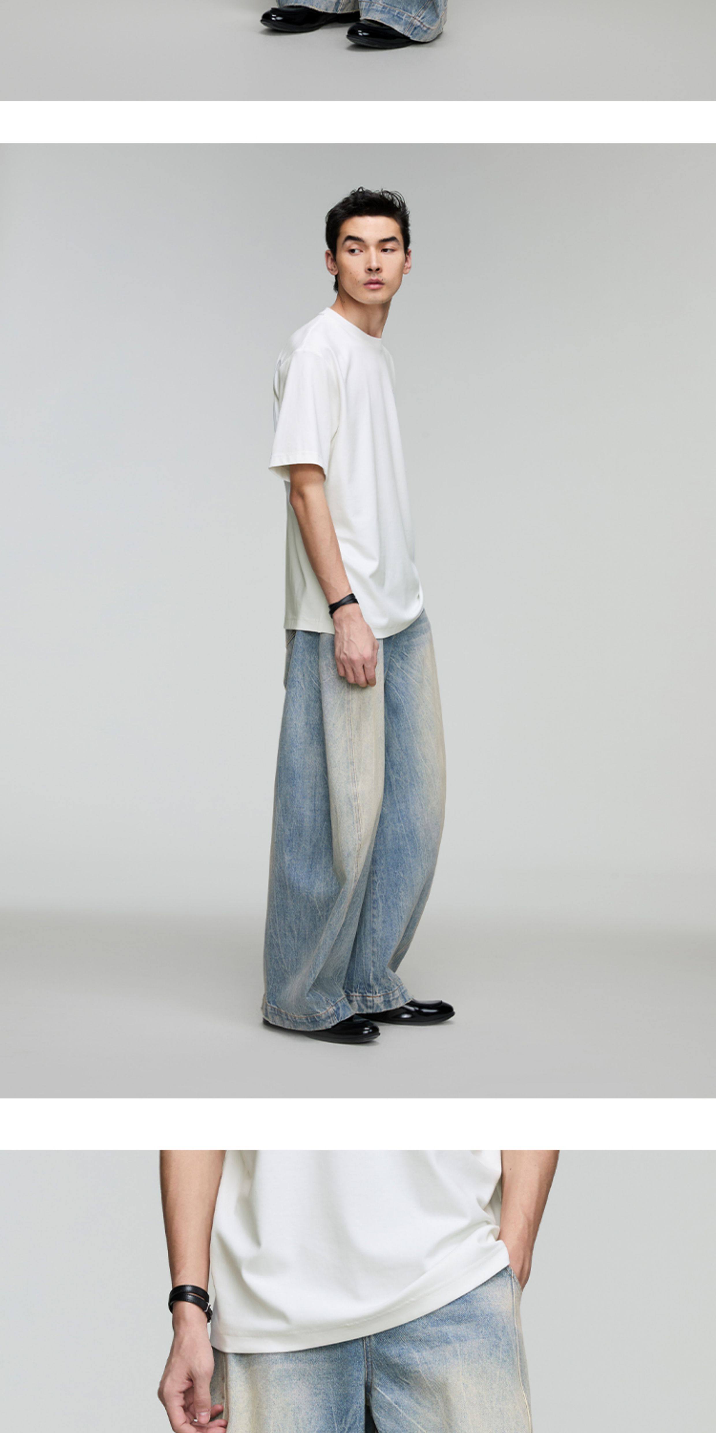 Opicloth/Opic Vintage Washed Distressed Branch Texture Scimitar Loose Fit Casual Denim Pants