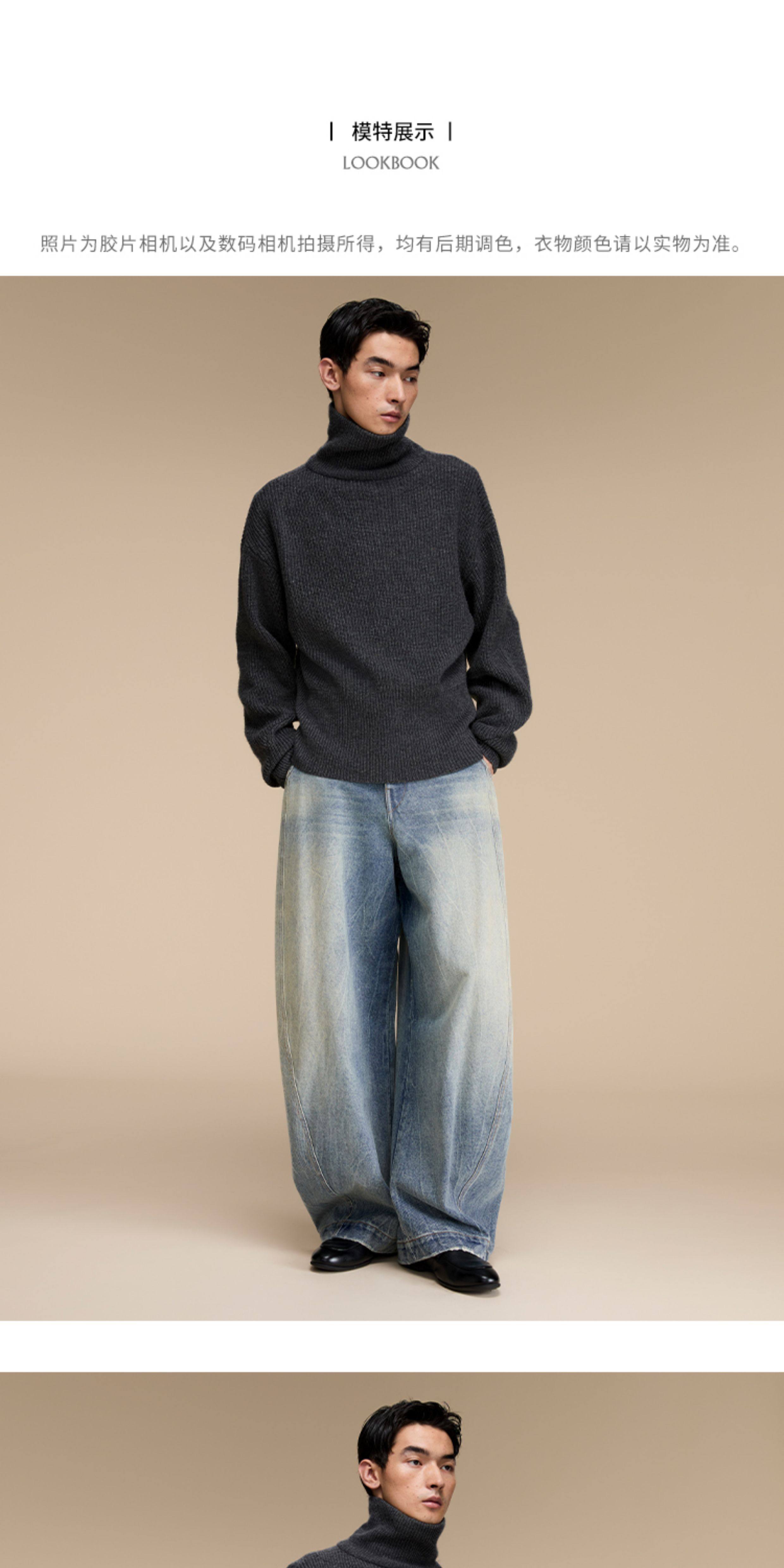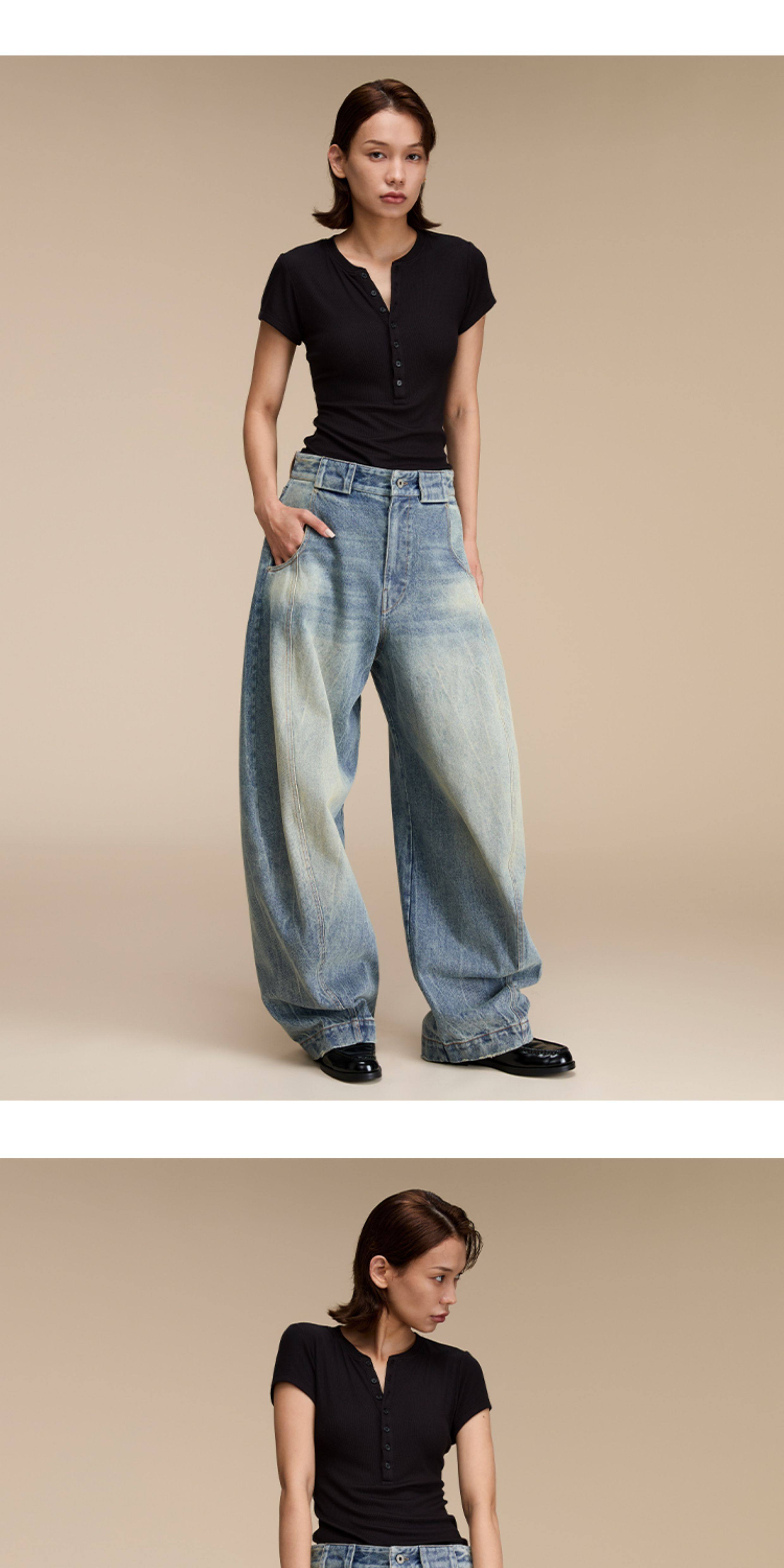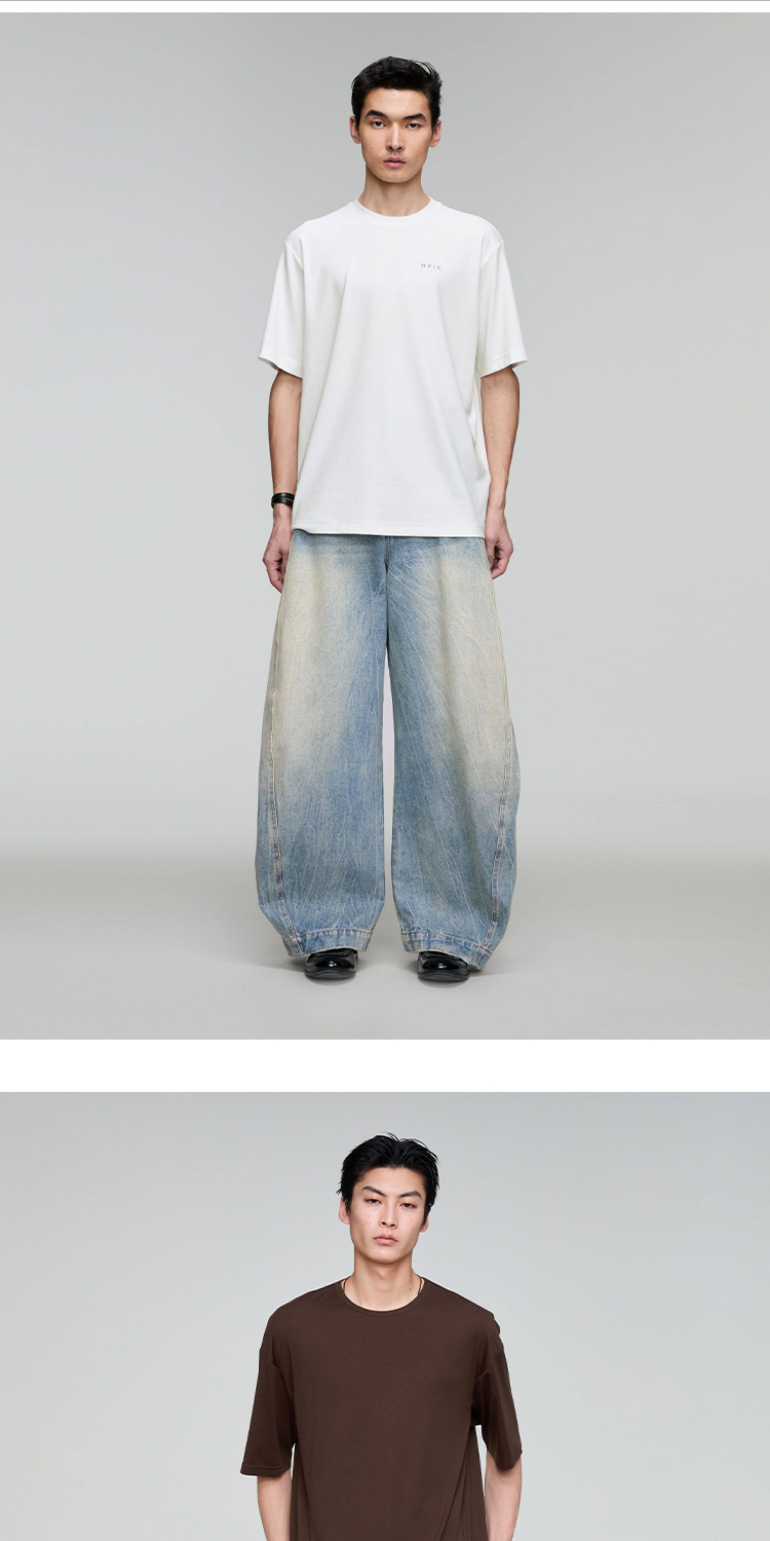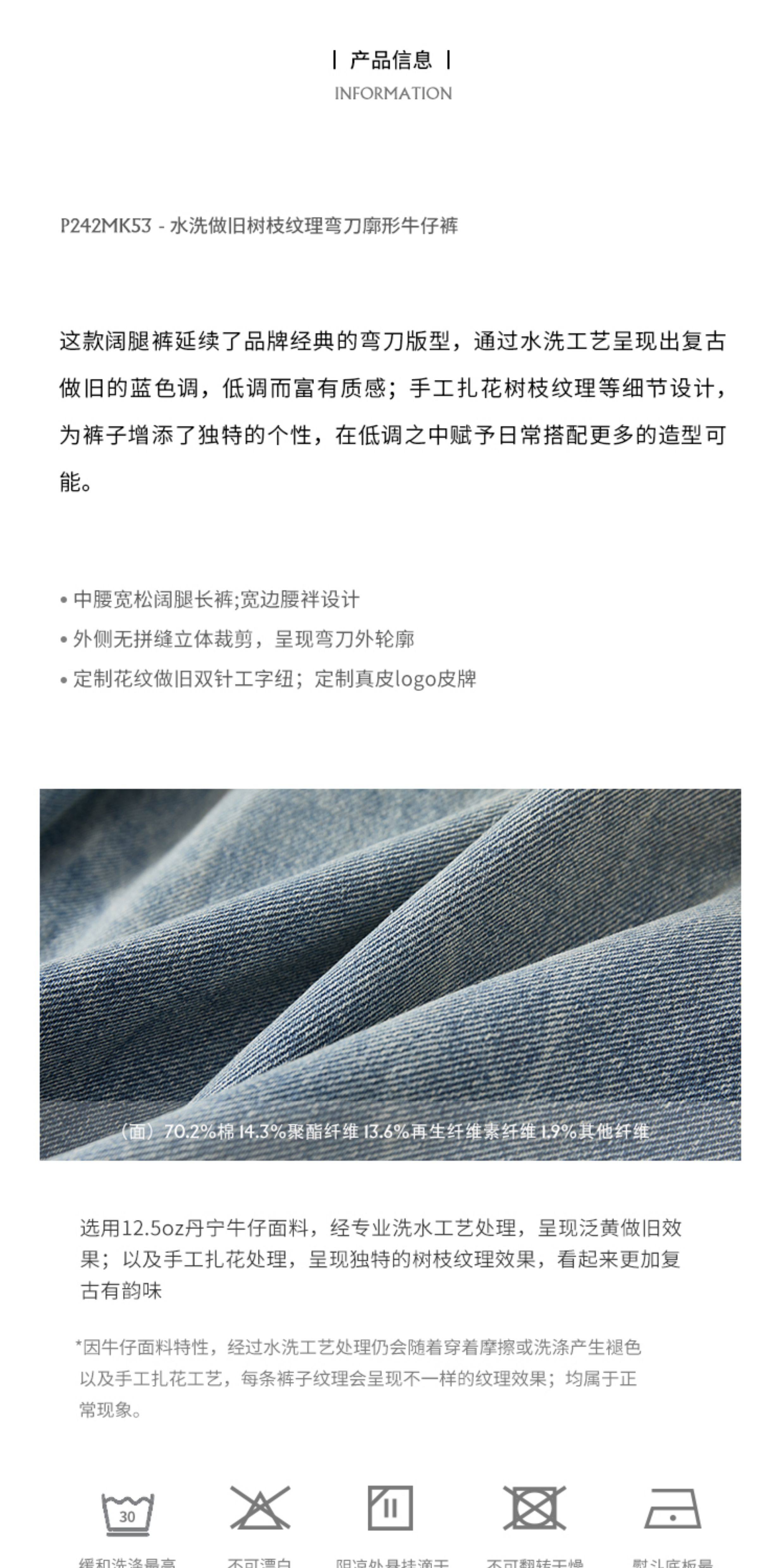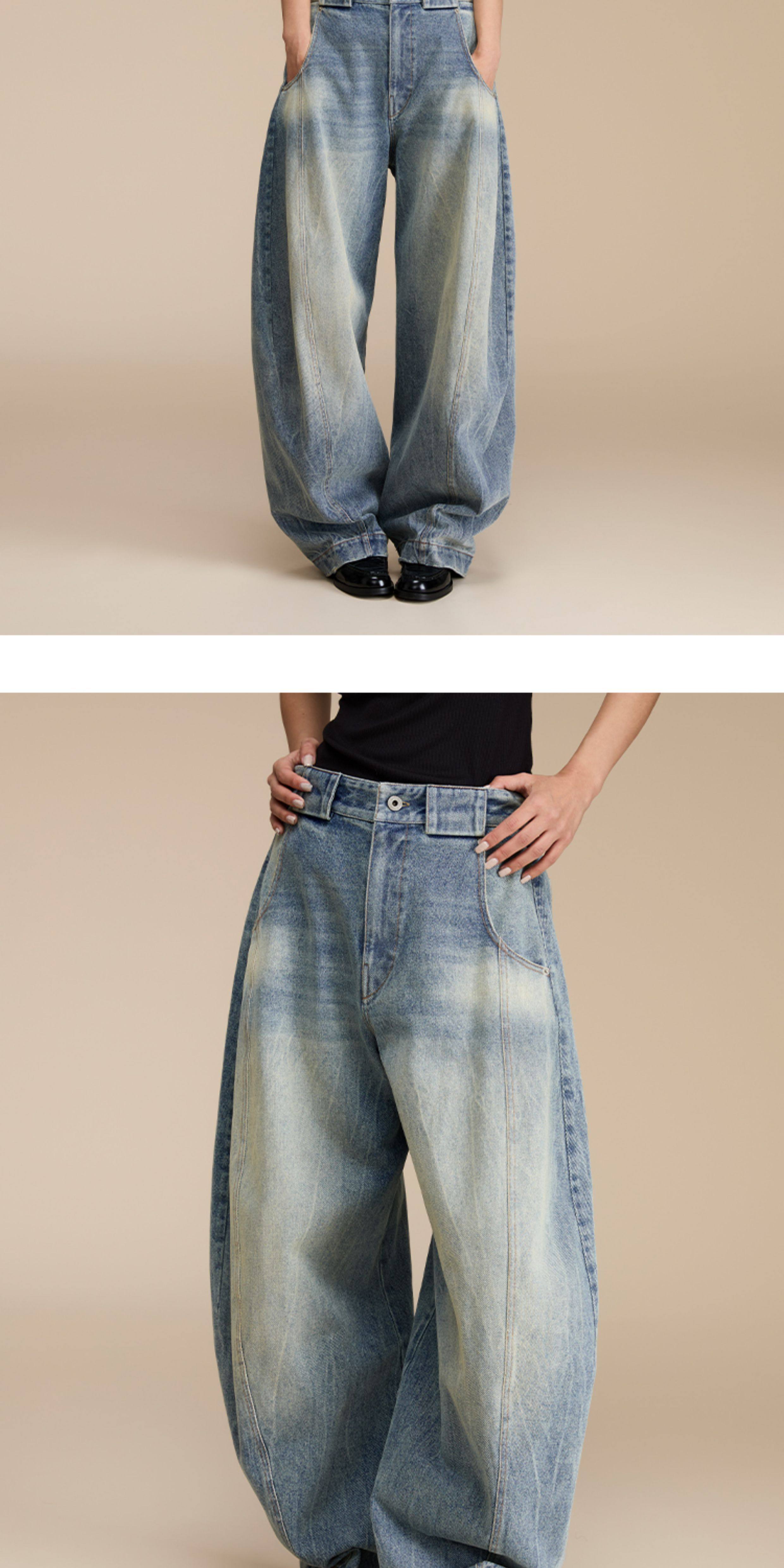 Opicloth/Opic Vintage Washed Distressed Branch Texture Scimitar Loose Fit Casual Denim Pants