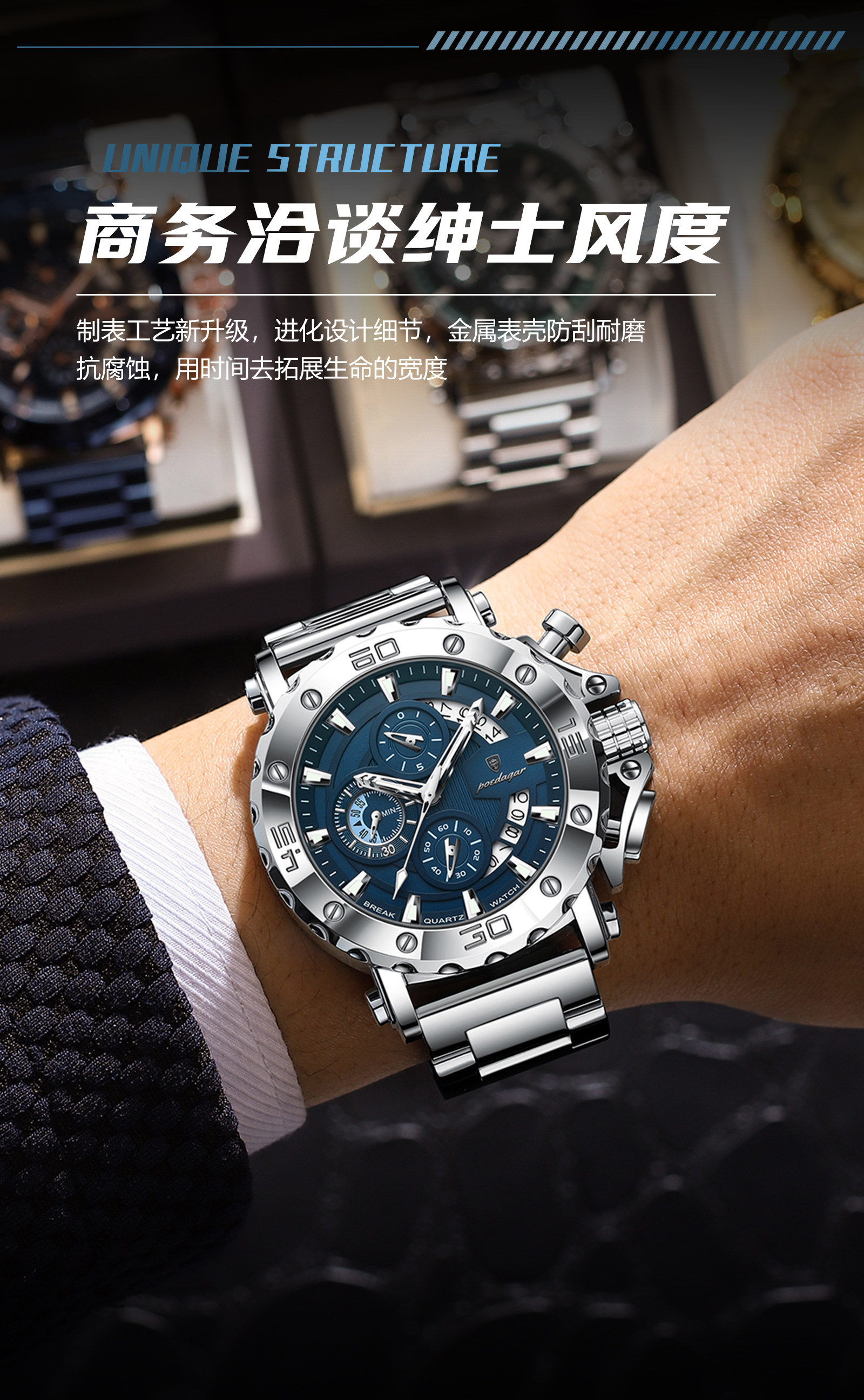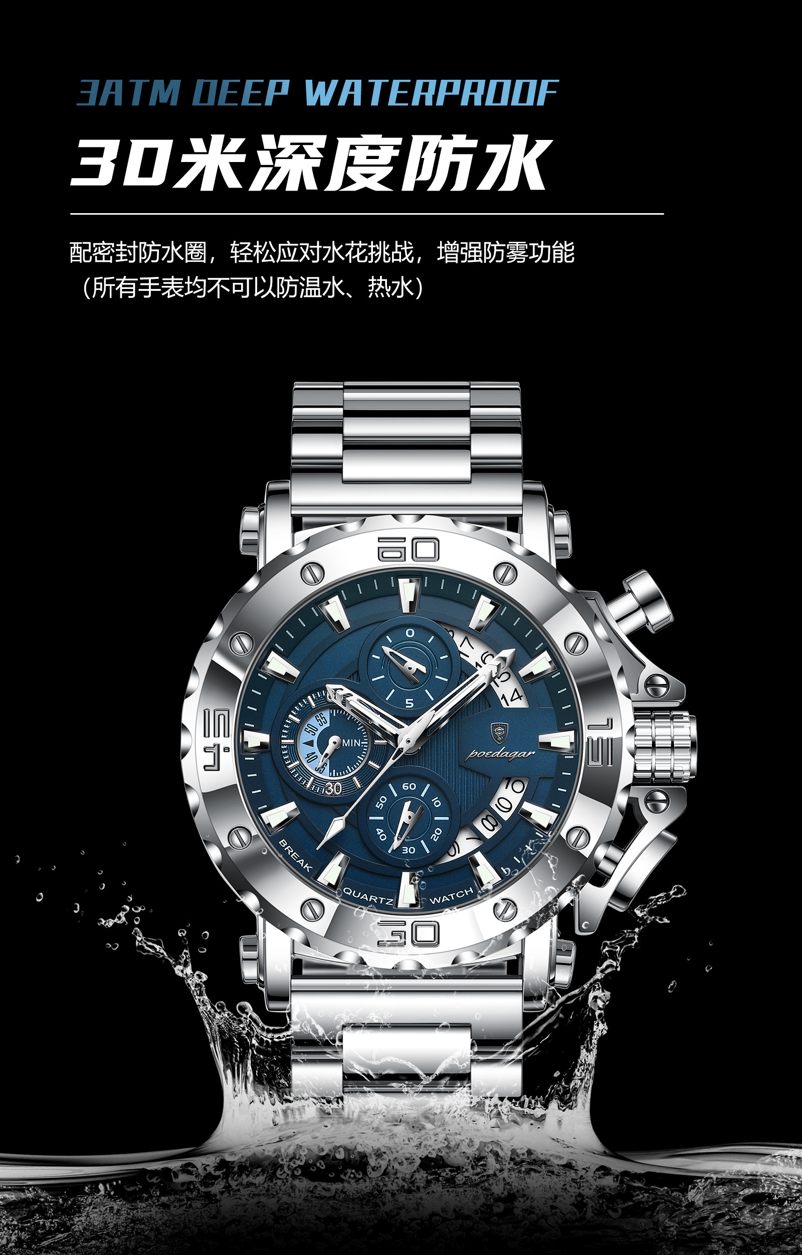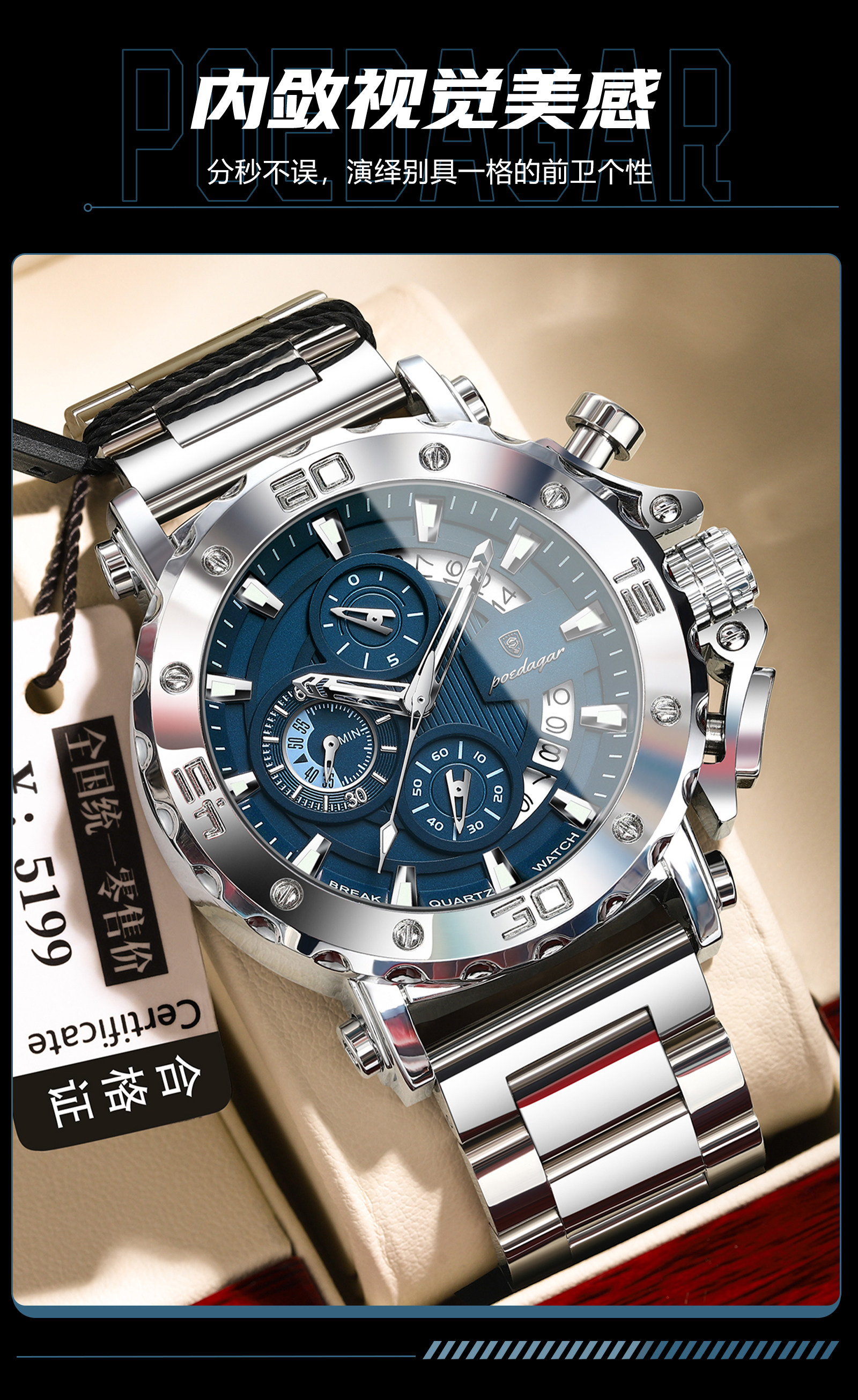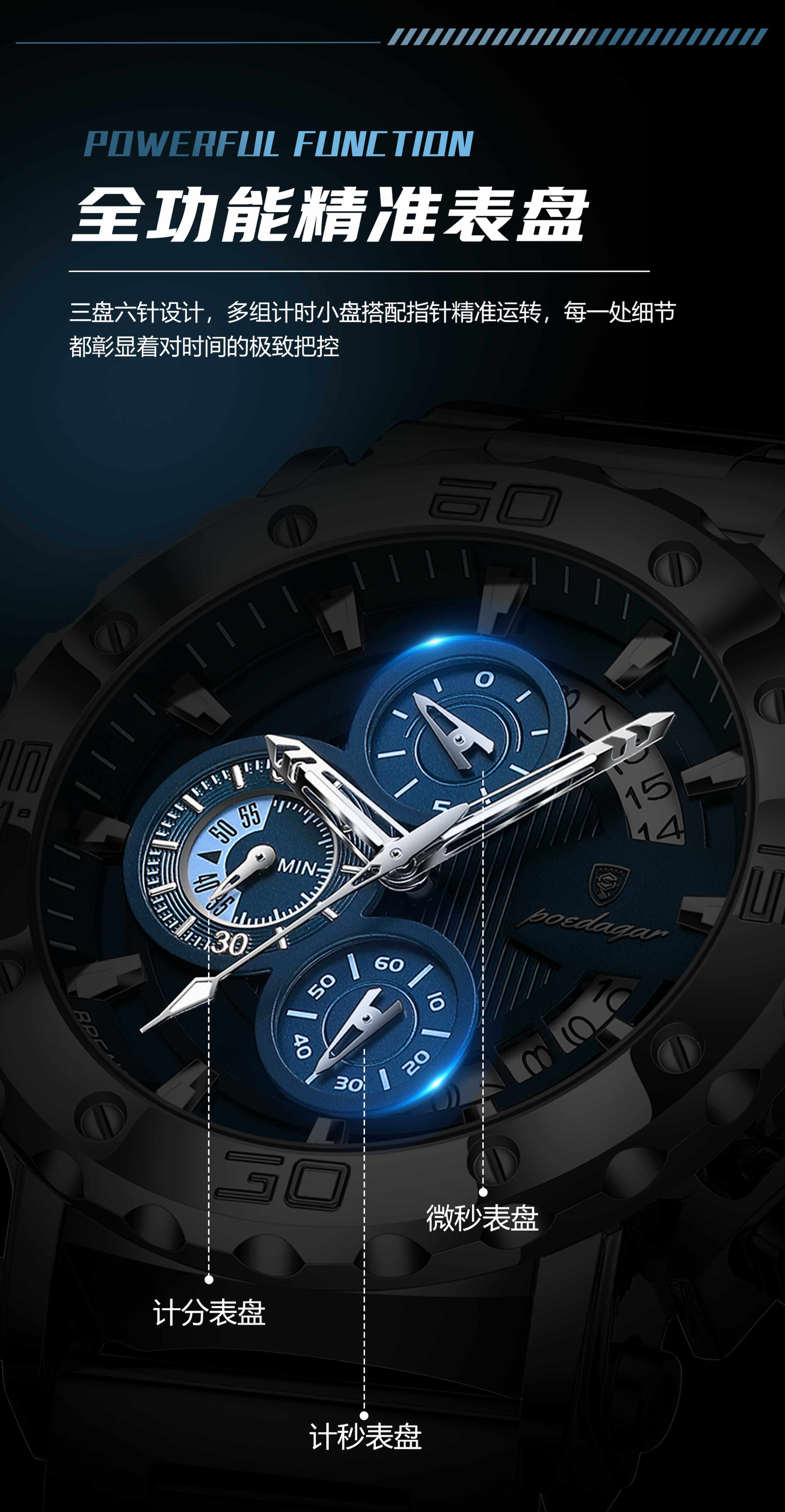 Genuine Swiss Men's Watch Luminous Business Multi-Functional Waterproof Casual New Watch Men's Quartz Watch Men's