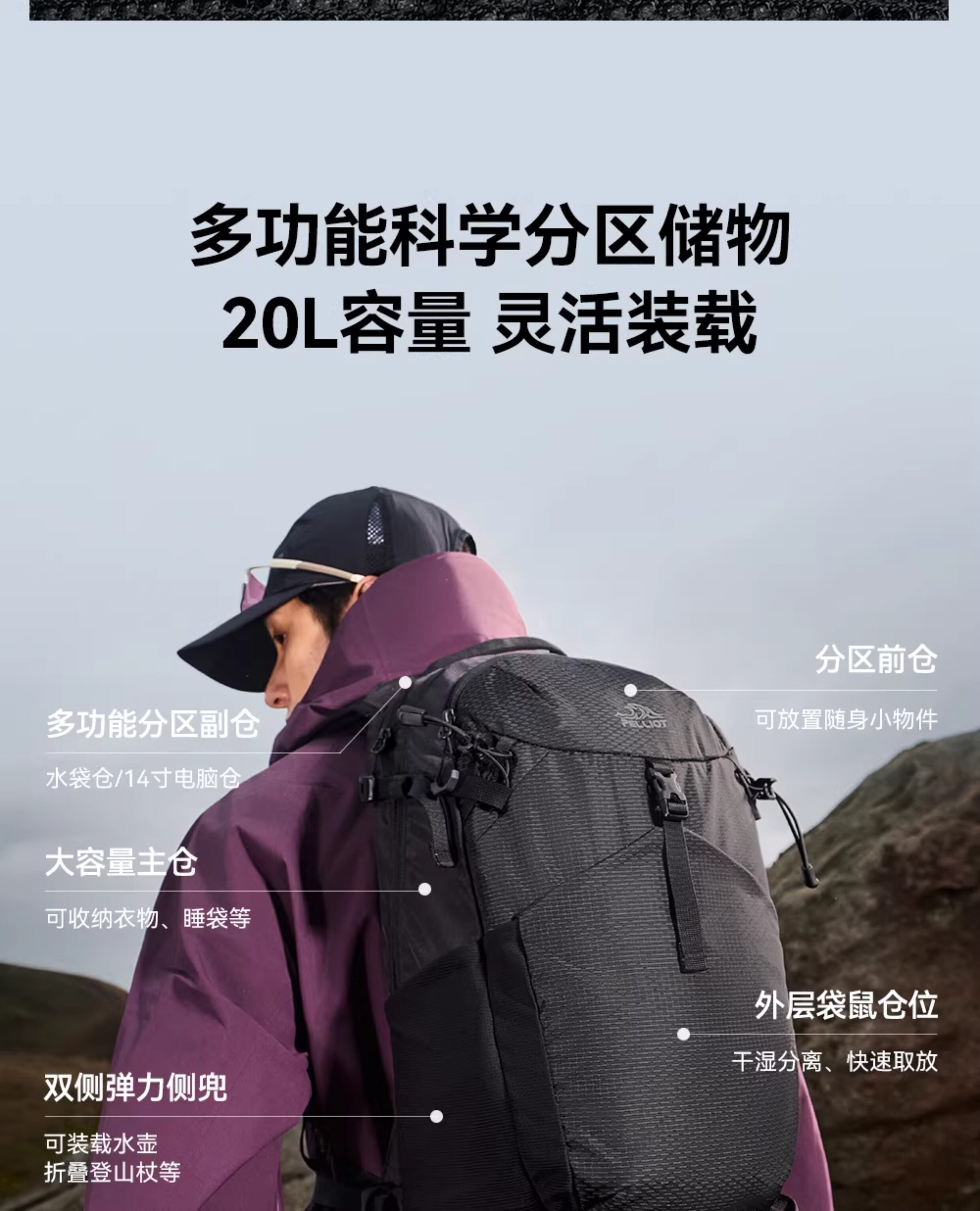 【Lightweight Outdoor】Pelliot Outdoor Hiking Backpack for Women, Purple 20L, Lightweight Commuting Backpack for Men