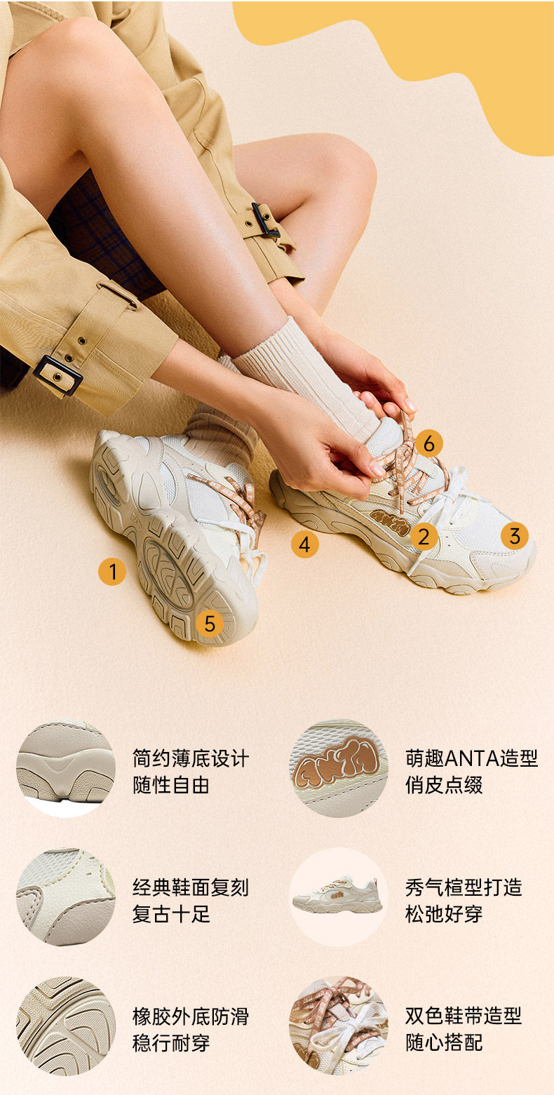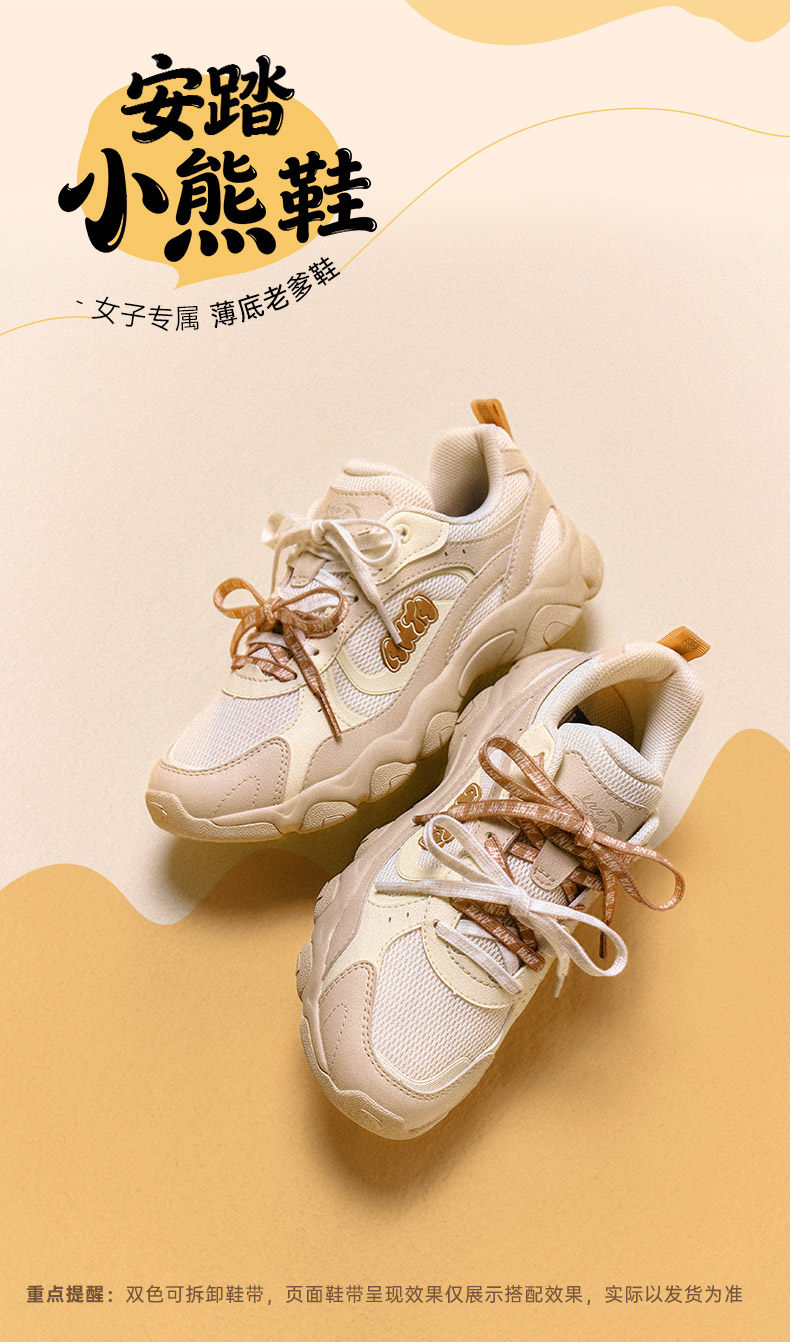 Anta Little Bear Shoes | Thin-Soled Dad Shoes for Women, Casual Shoes, Summer Trendy Versatile Soft-Soled Comfortable Dance Sneakers