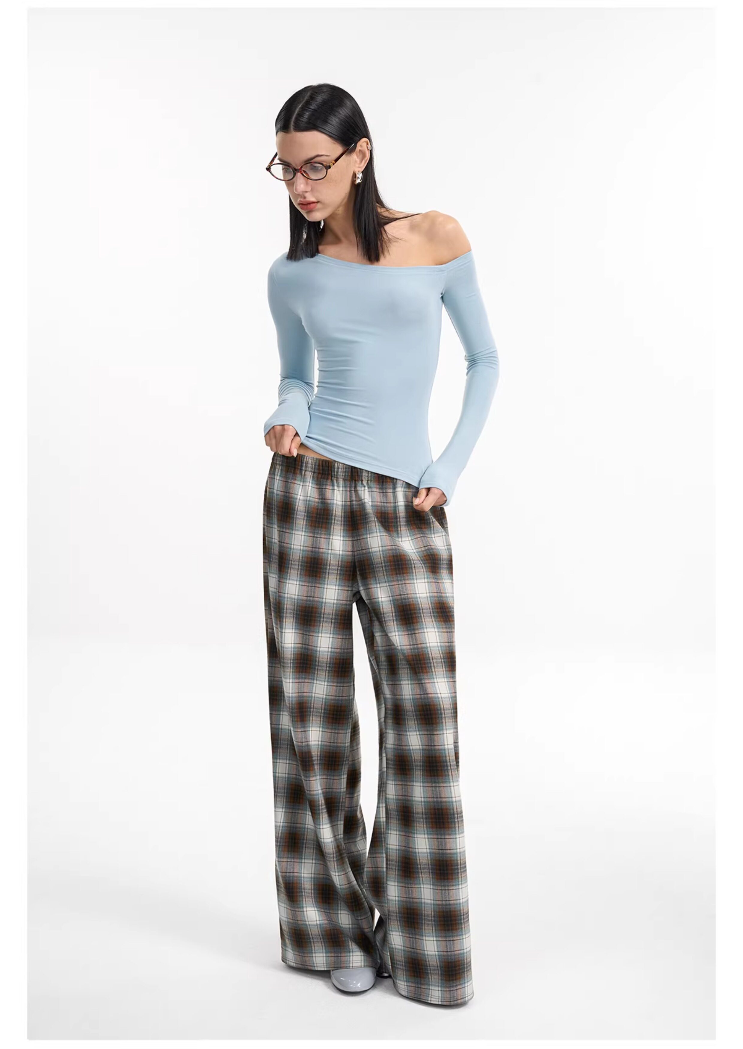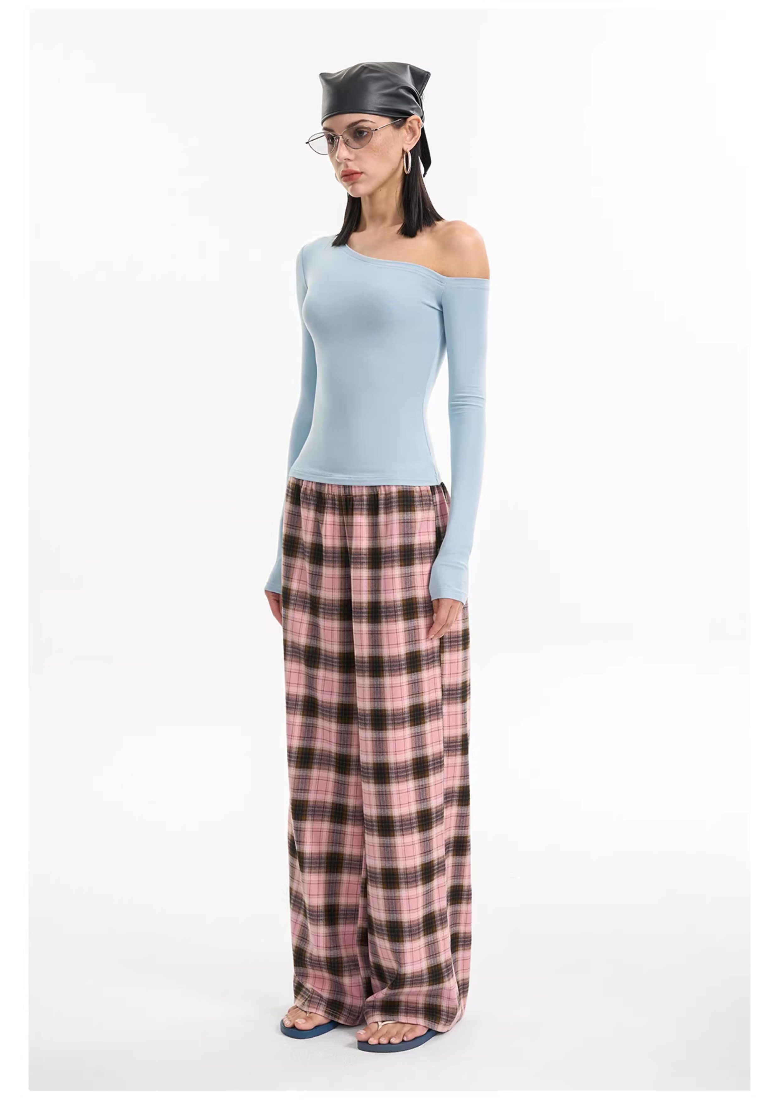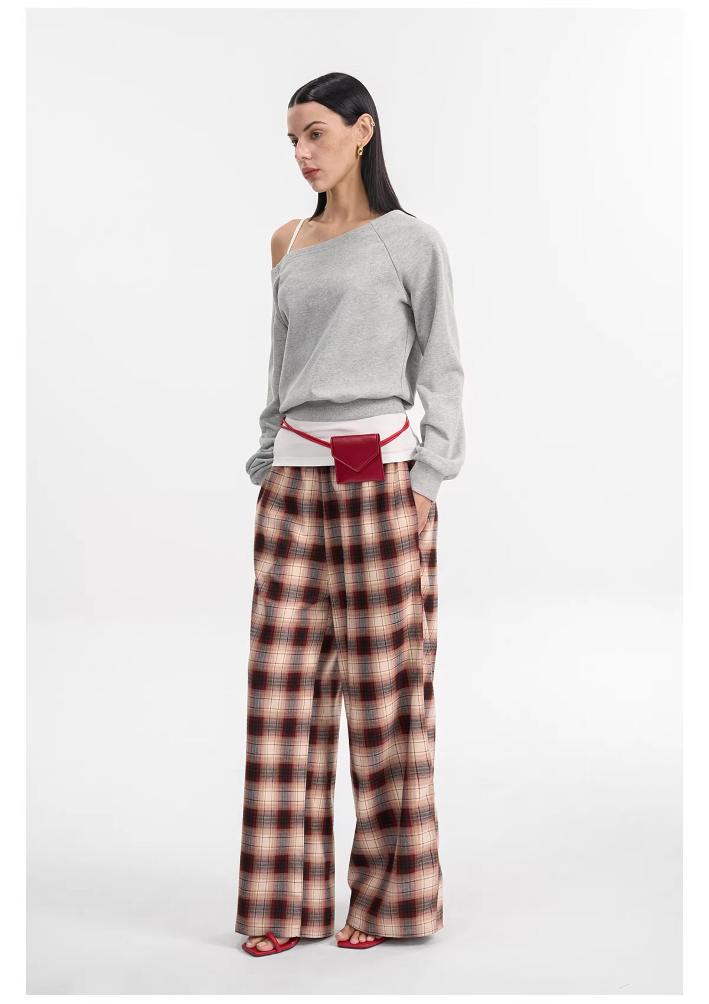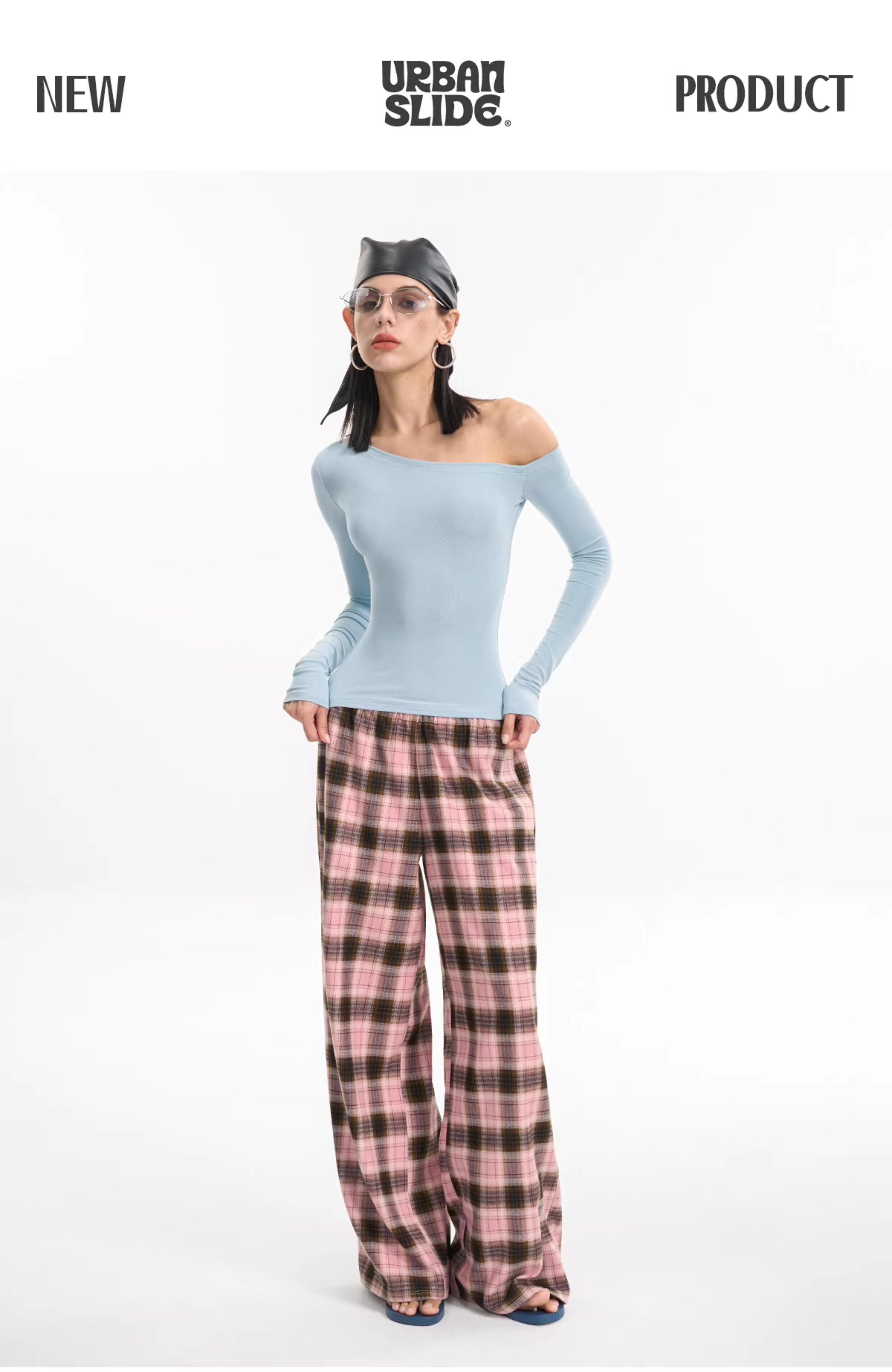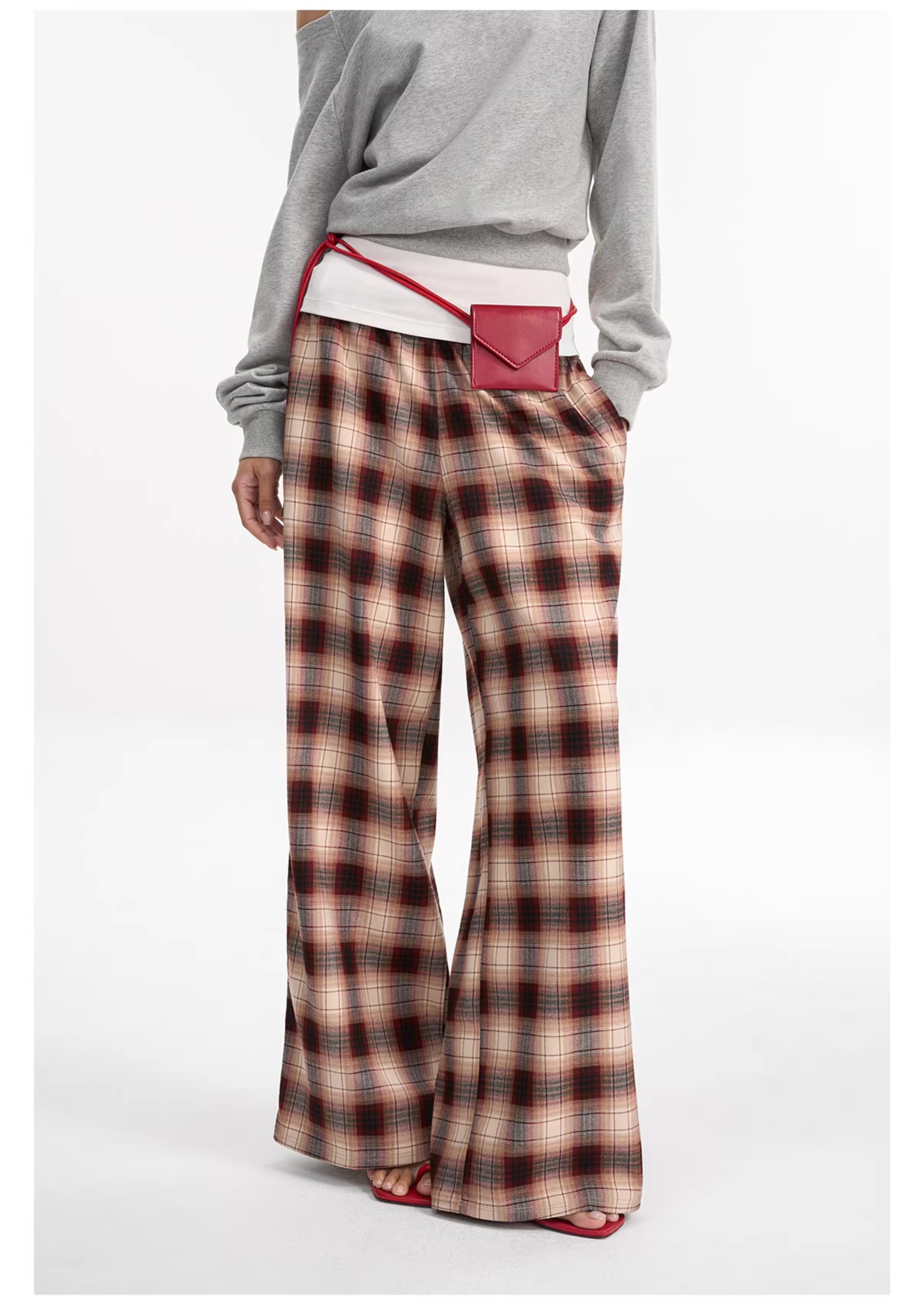 Urbanslide Pink Plaid Pants for Women, New Loose and Lazy Style Wide-Leg Straight Casual Pants
