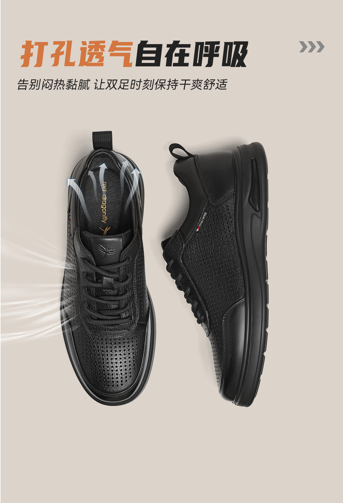 Red Dragonfly Casual Leather Shoes Spring and Summer New Business Men's Shoes Sports Soft Sole Genuine Leather Comfortable Dad Shoes for Middle-Aged and Elderly People