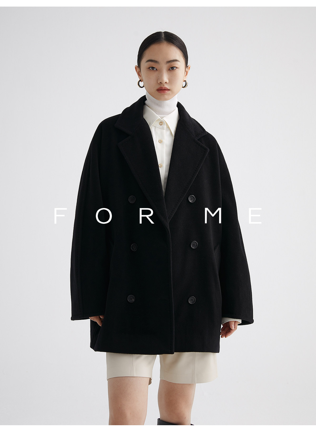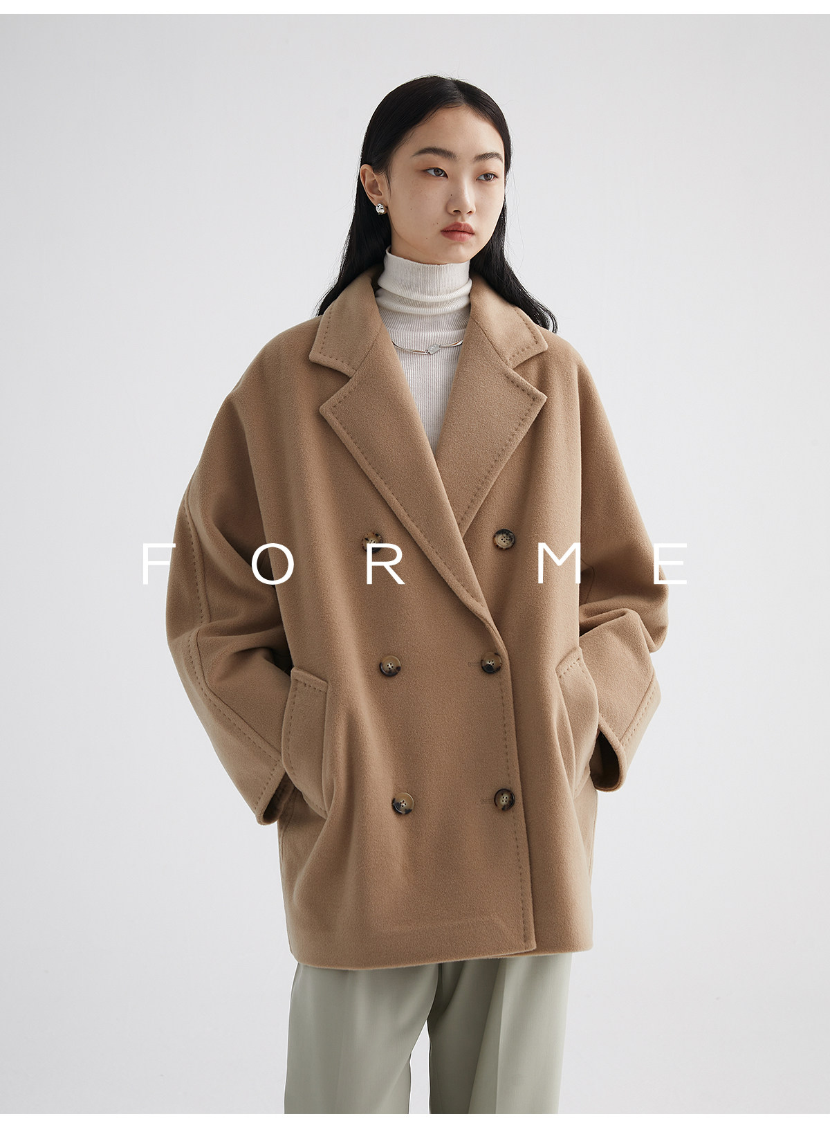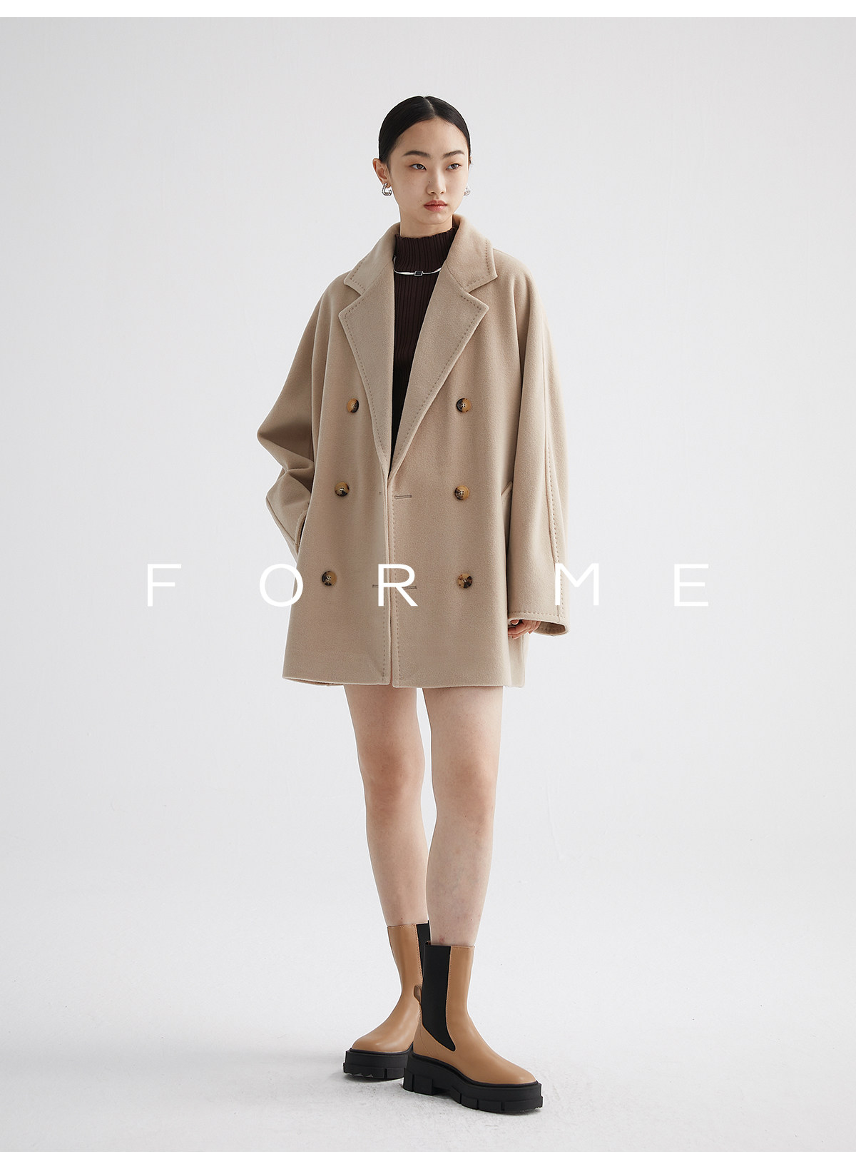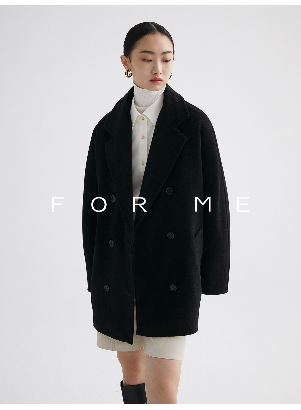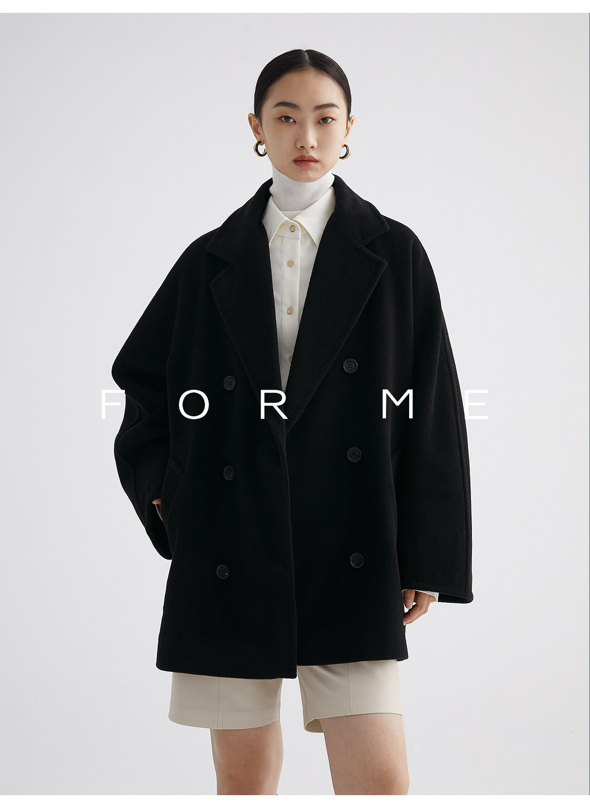 Classic Short 101801 Cashmere Coat for Women, Double-Breasted, Loose Fit, Petite, Guinea Casual Top Jacket