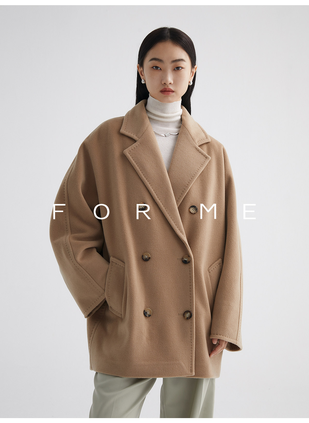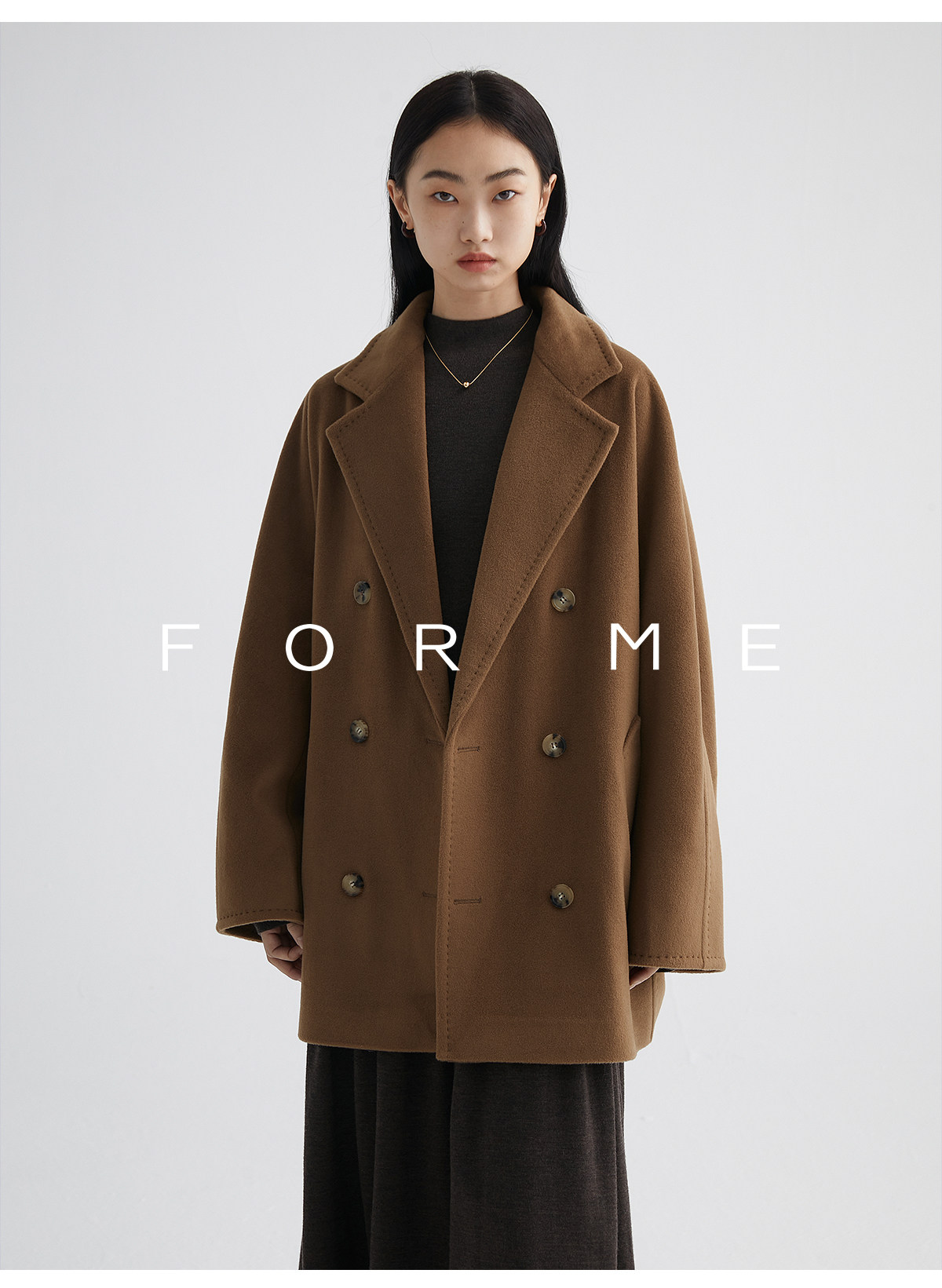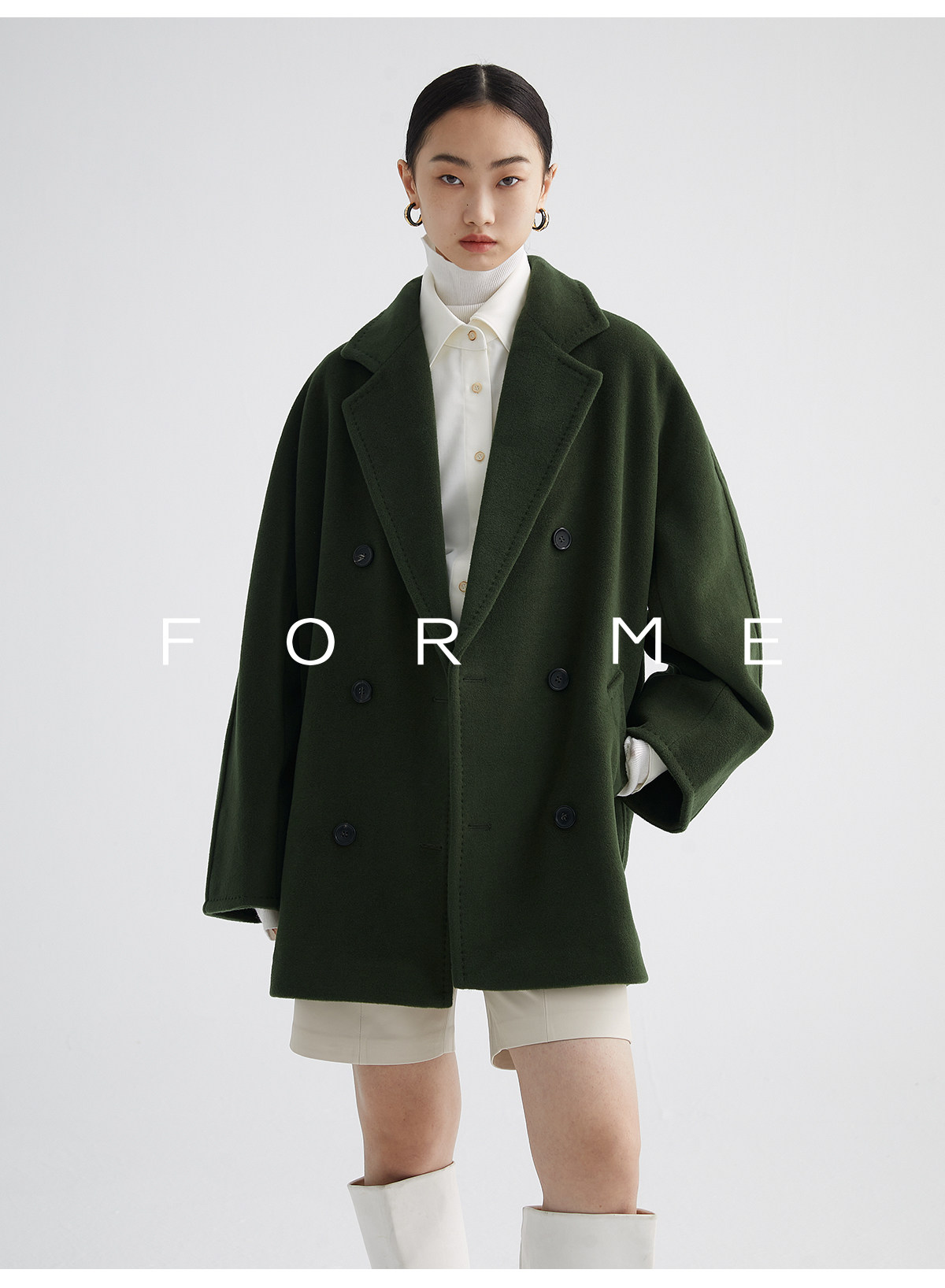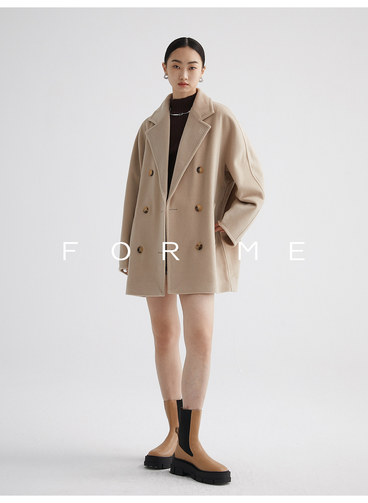 Classic Short 101801 Cashmere Coat for Women, Double-Breasted, Loose Fit, Petite, Guinea Casual Top Jacket
