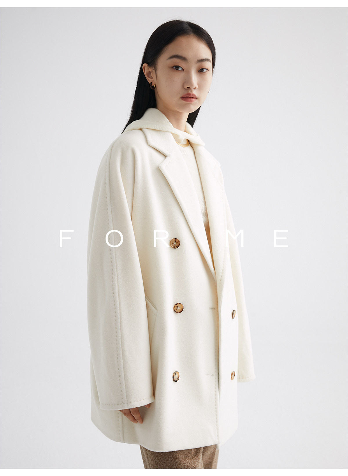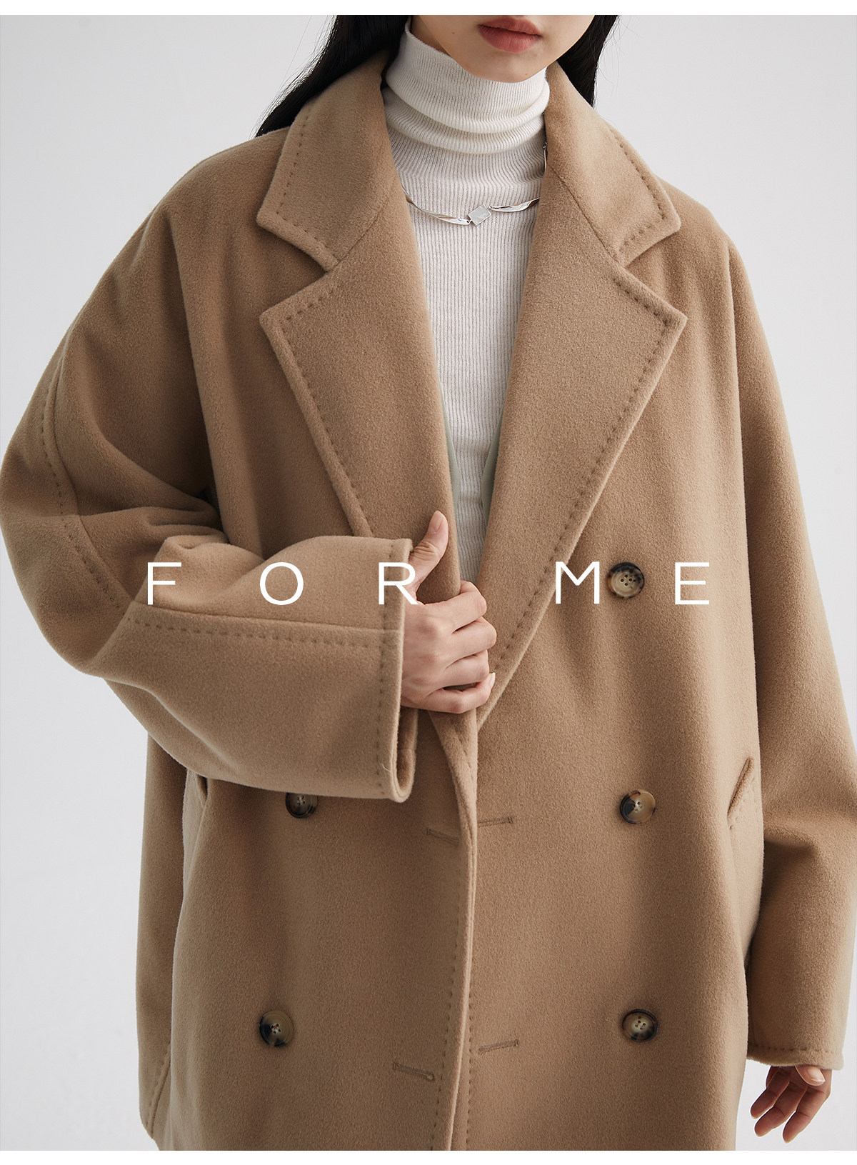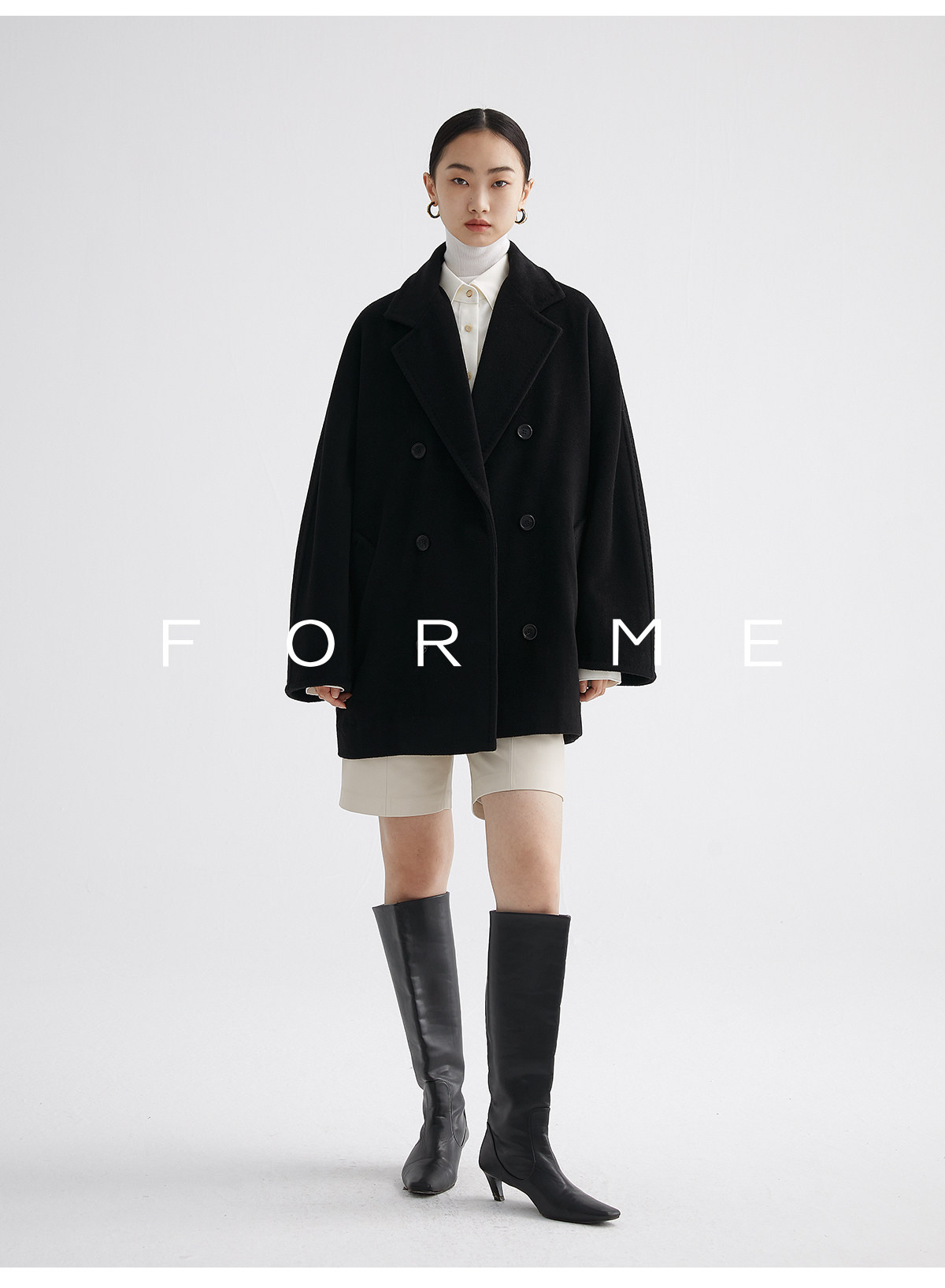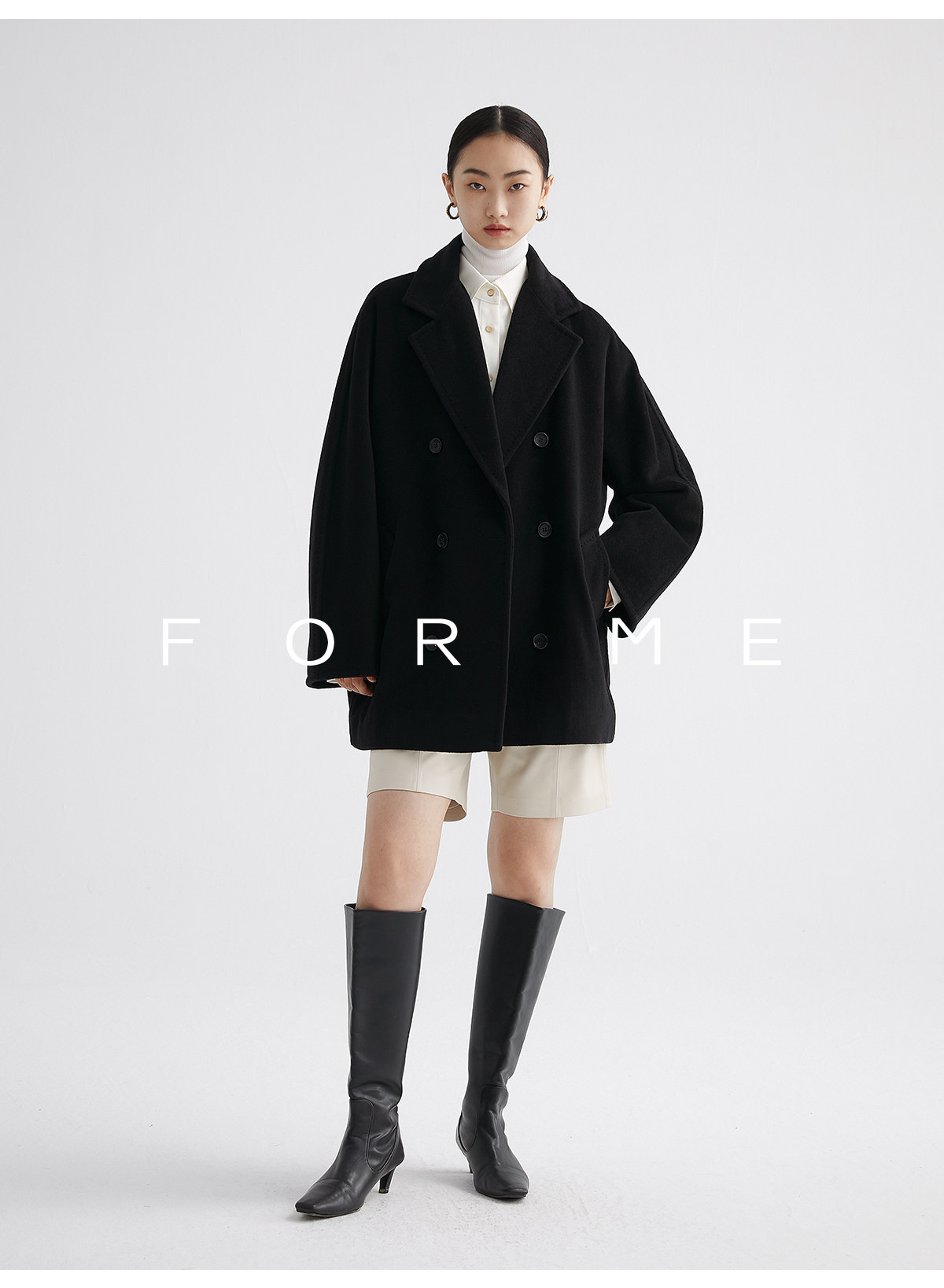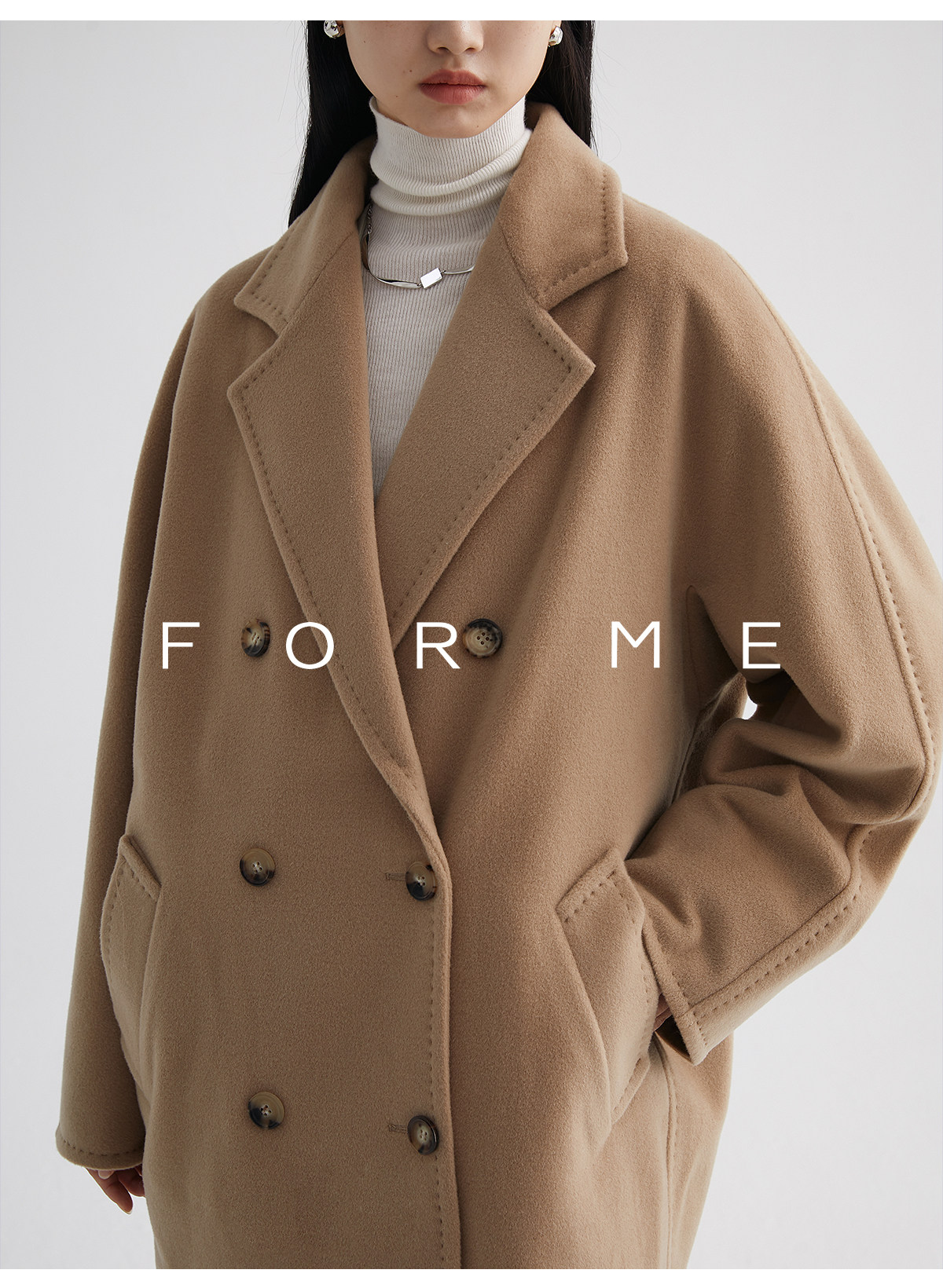 Classic Short 101801 Cashmere Coat for Women, Double-Breasted, Loose Fit, Petite, Guinea Casual Top Jacket