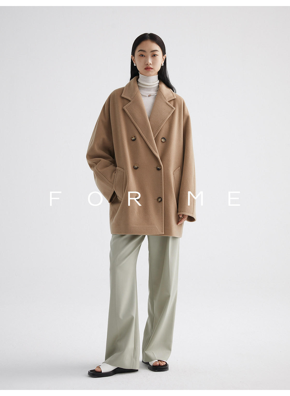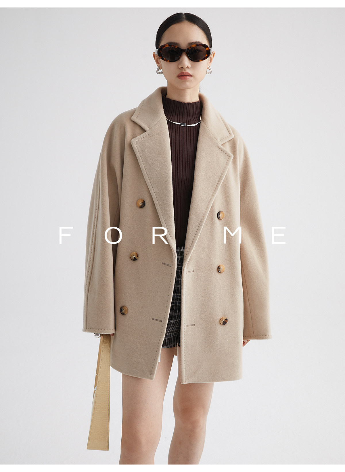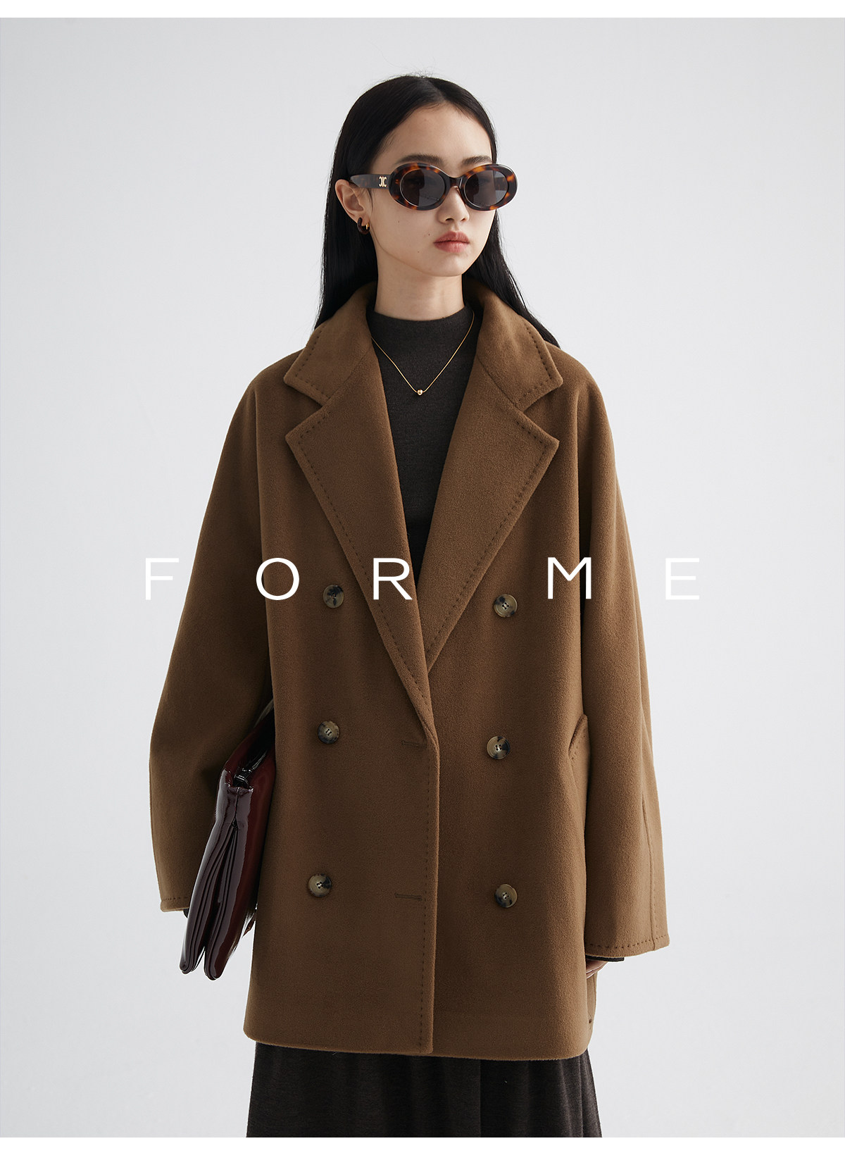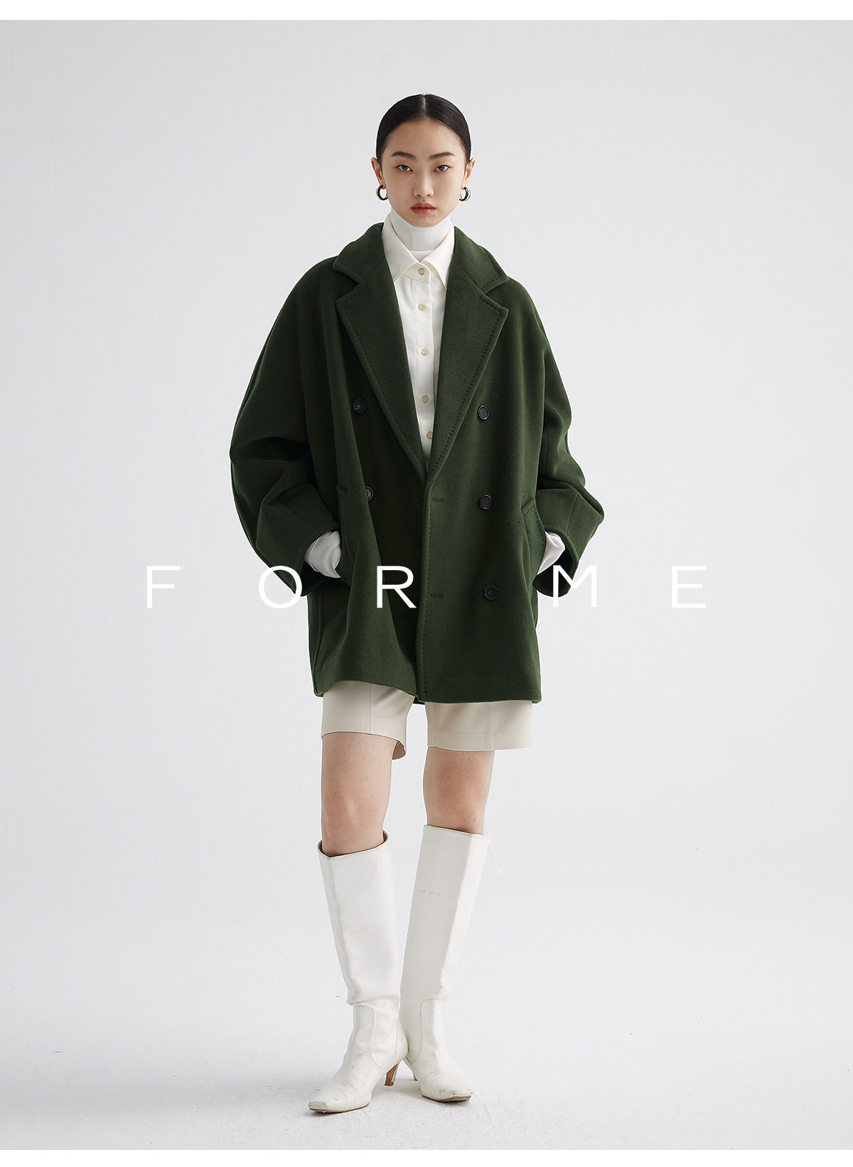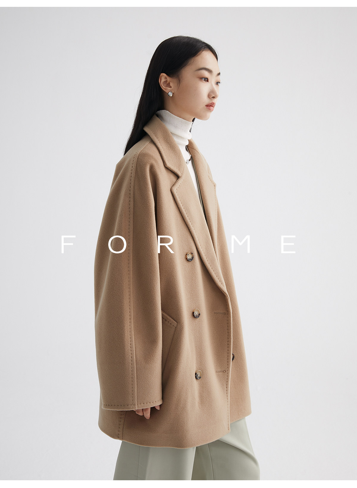 Classic Short 101801 Cashmere Coat for Women, Double-Breasted, Loose Fit, Petite, Guinea Casual Top Jacket