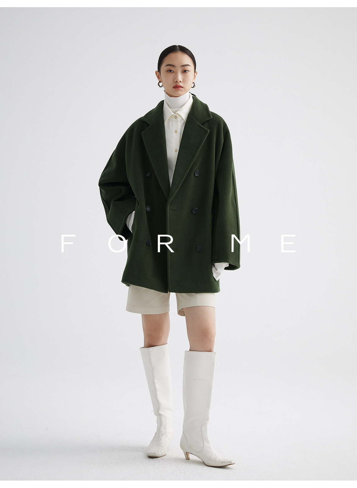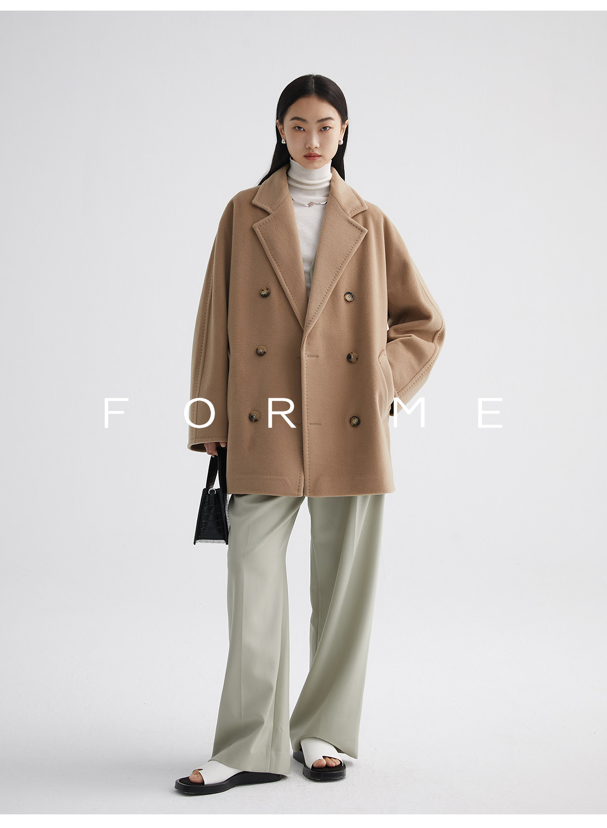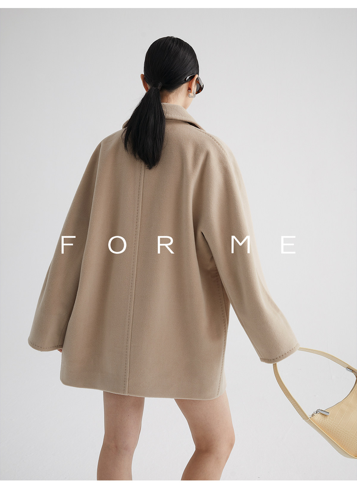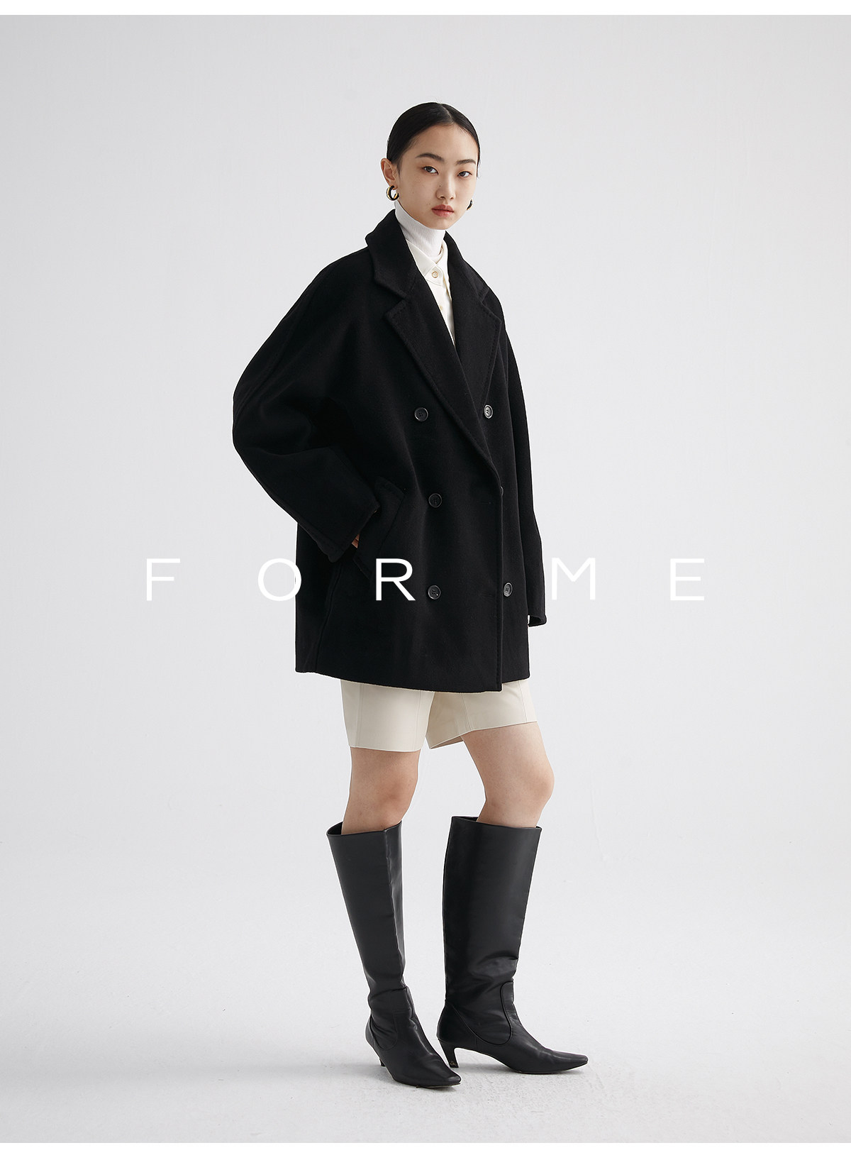Classic Short 101801 Cashmere Coat for Women, Double-Breasted, Loose Fit, Petite, Guinea Casual Top Jacket