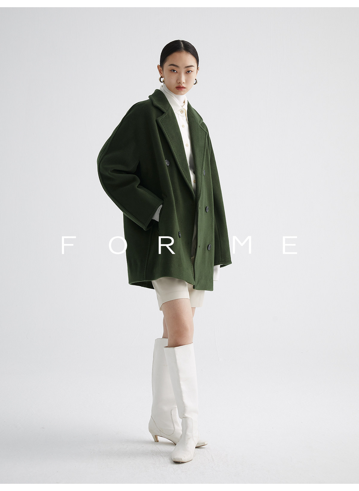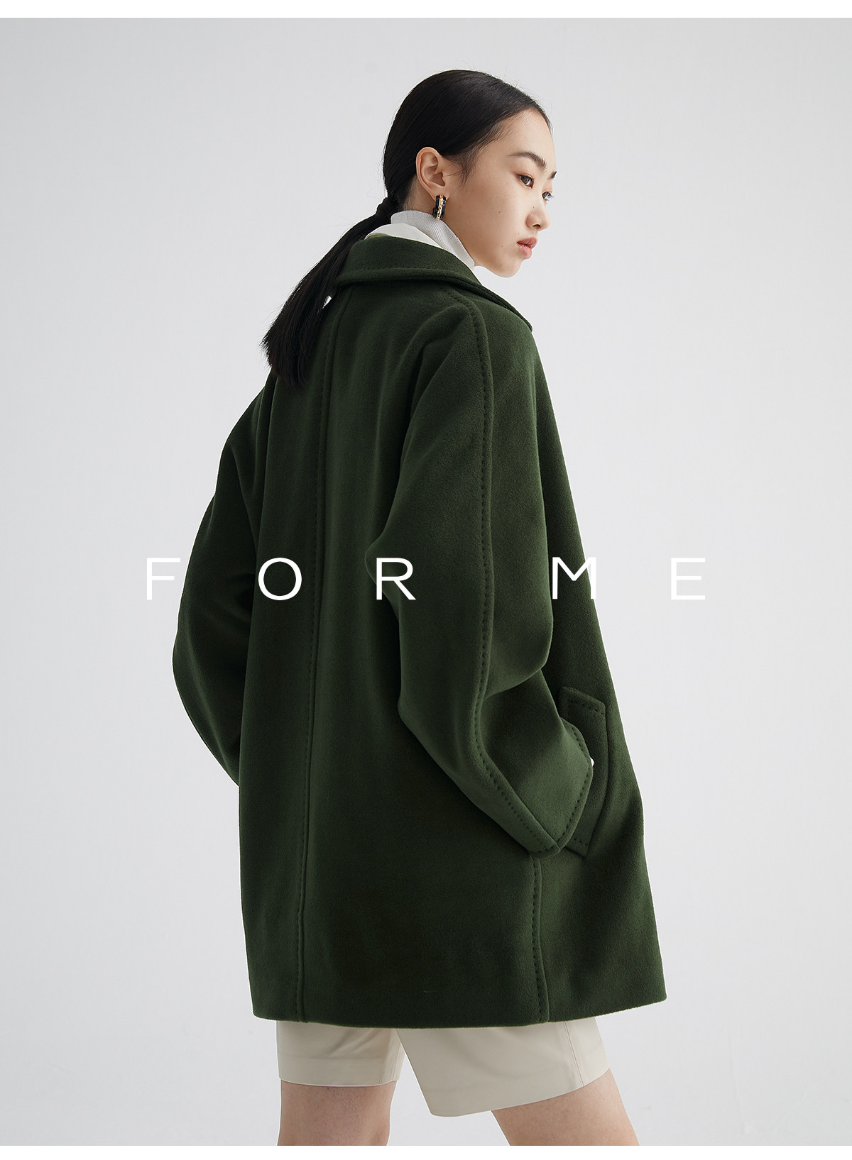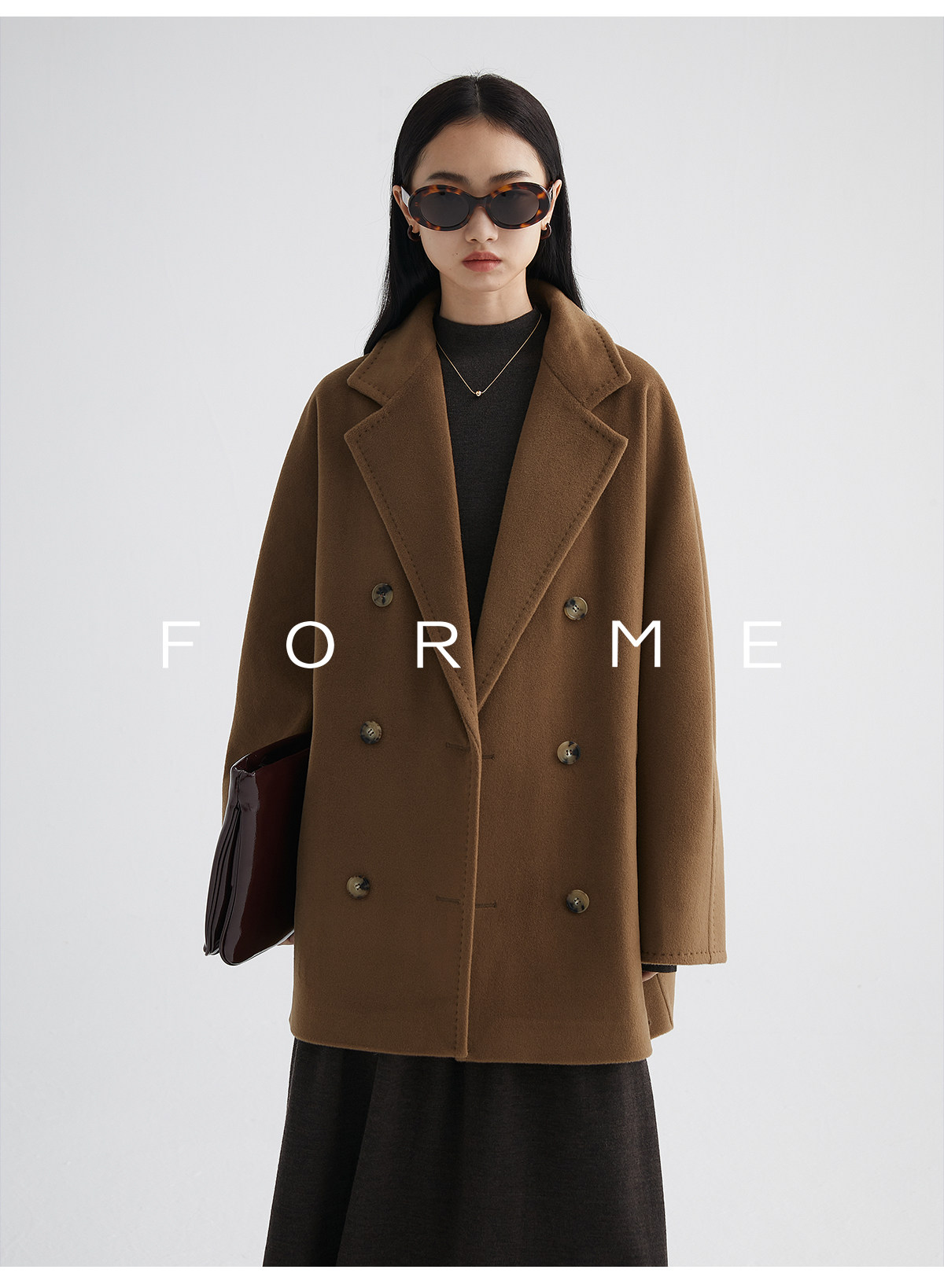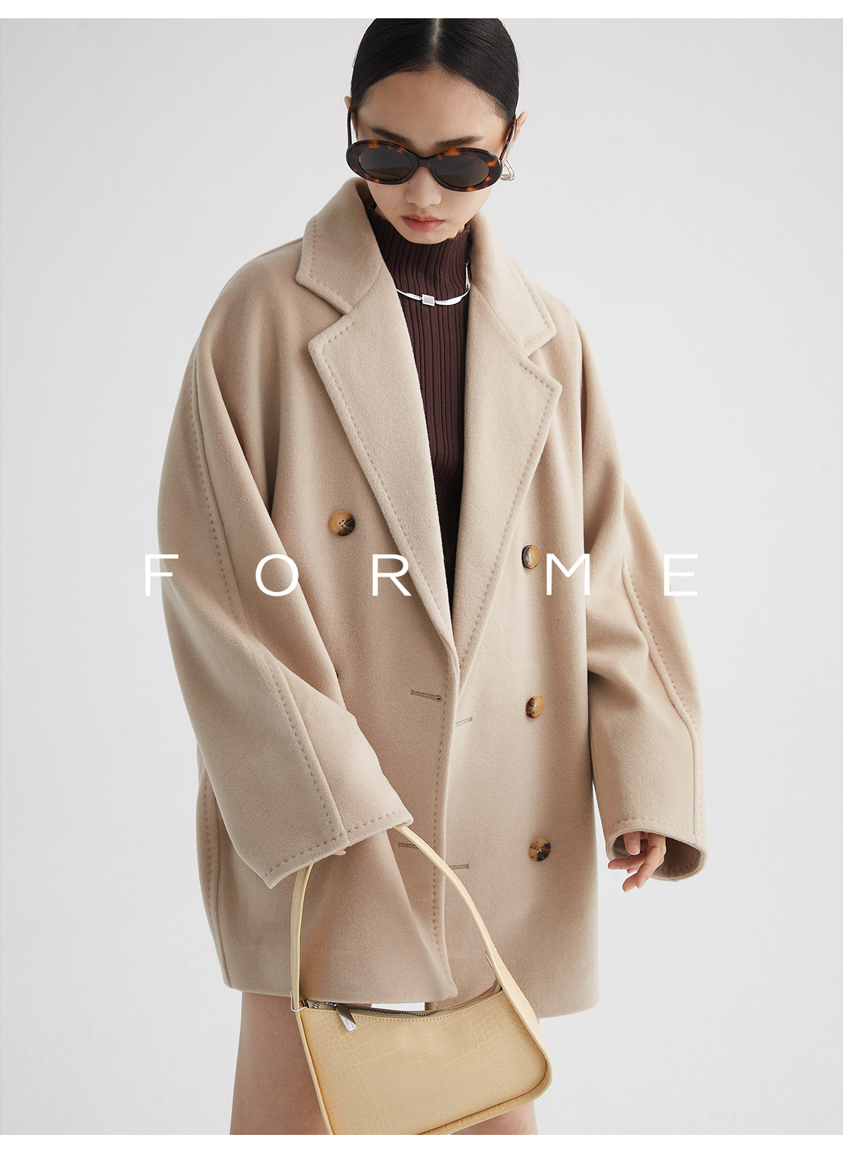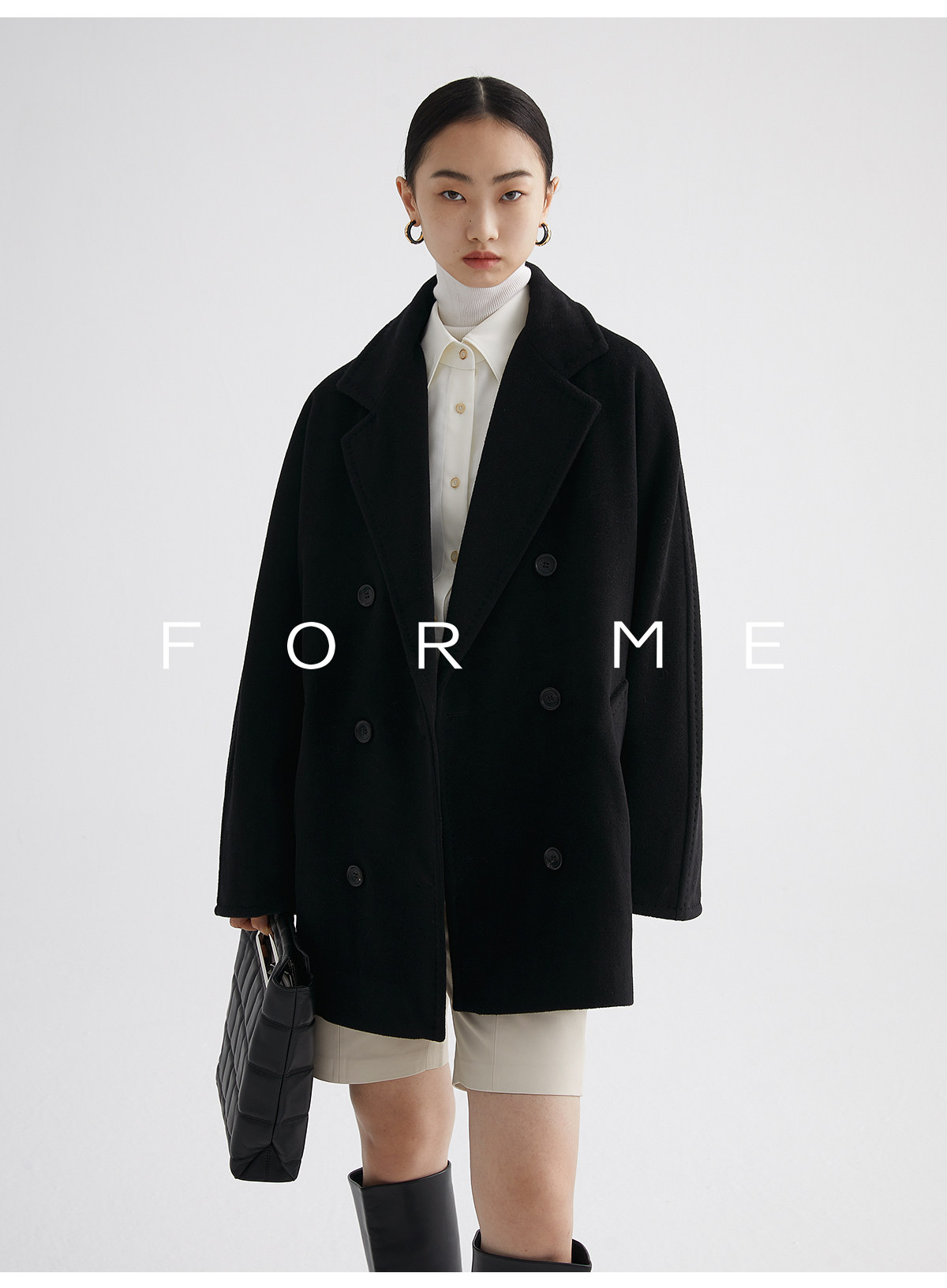 Classic Short 101801 Cashmere Coat for Women, Double-Breasted, Loose Fit, Petite, Guinea Casual Top Jacket