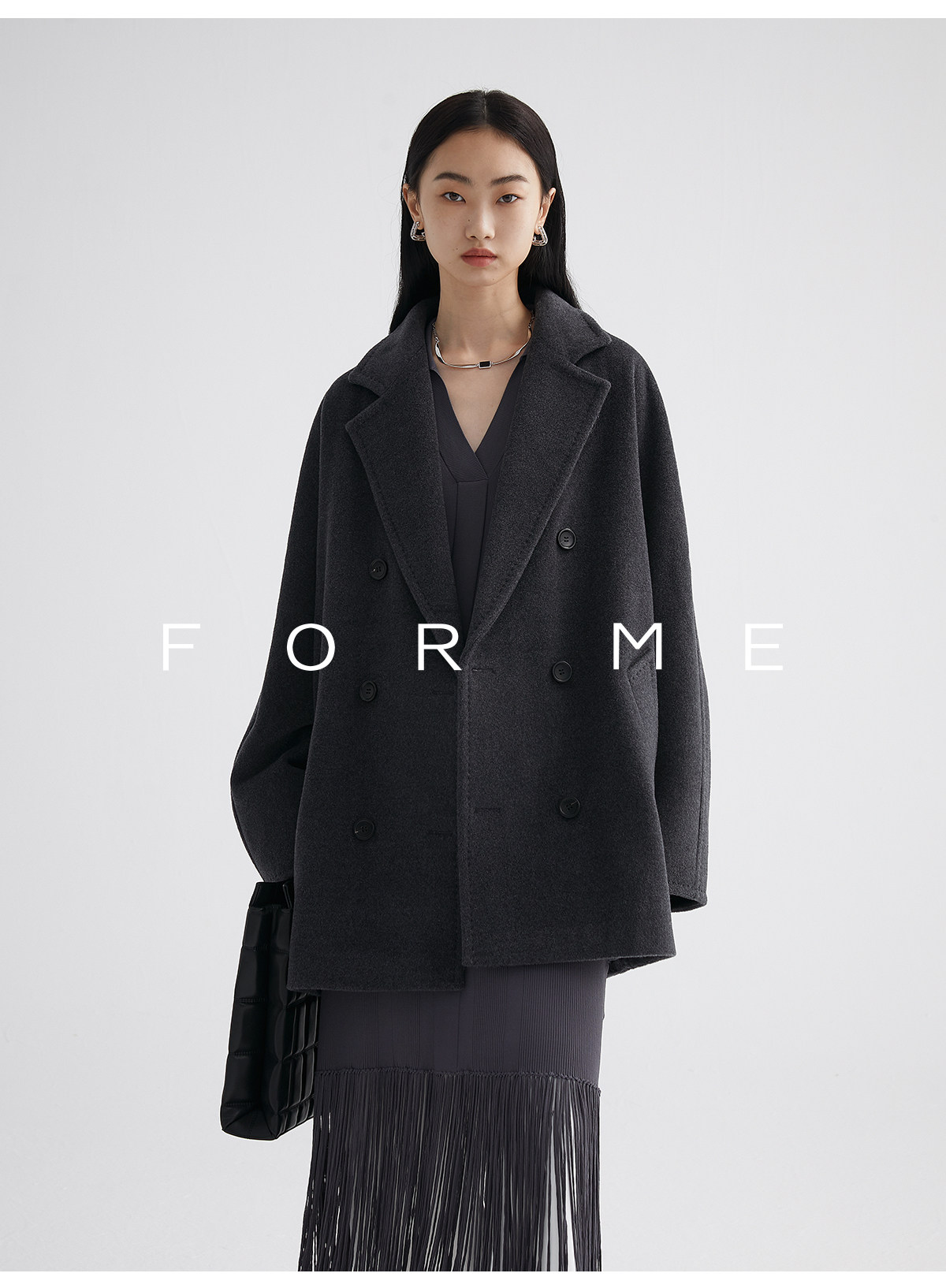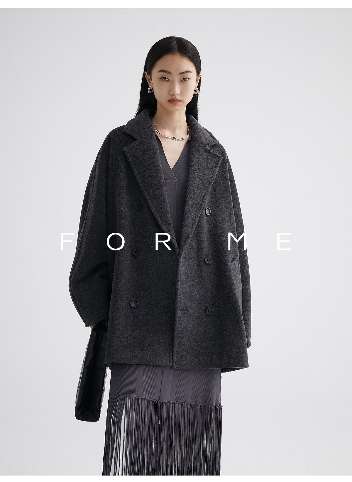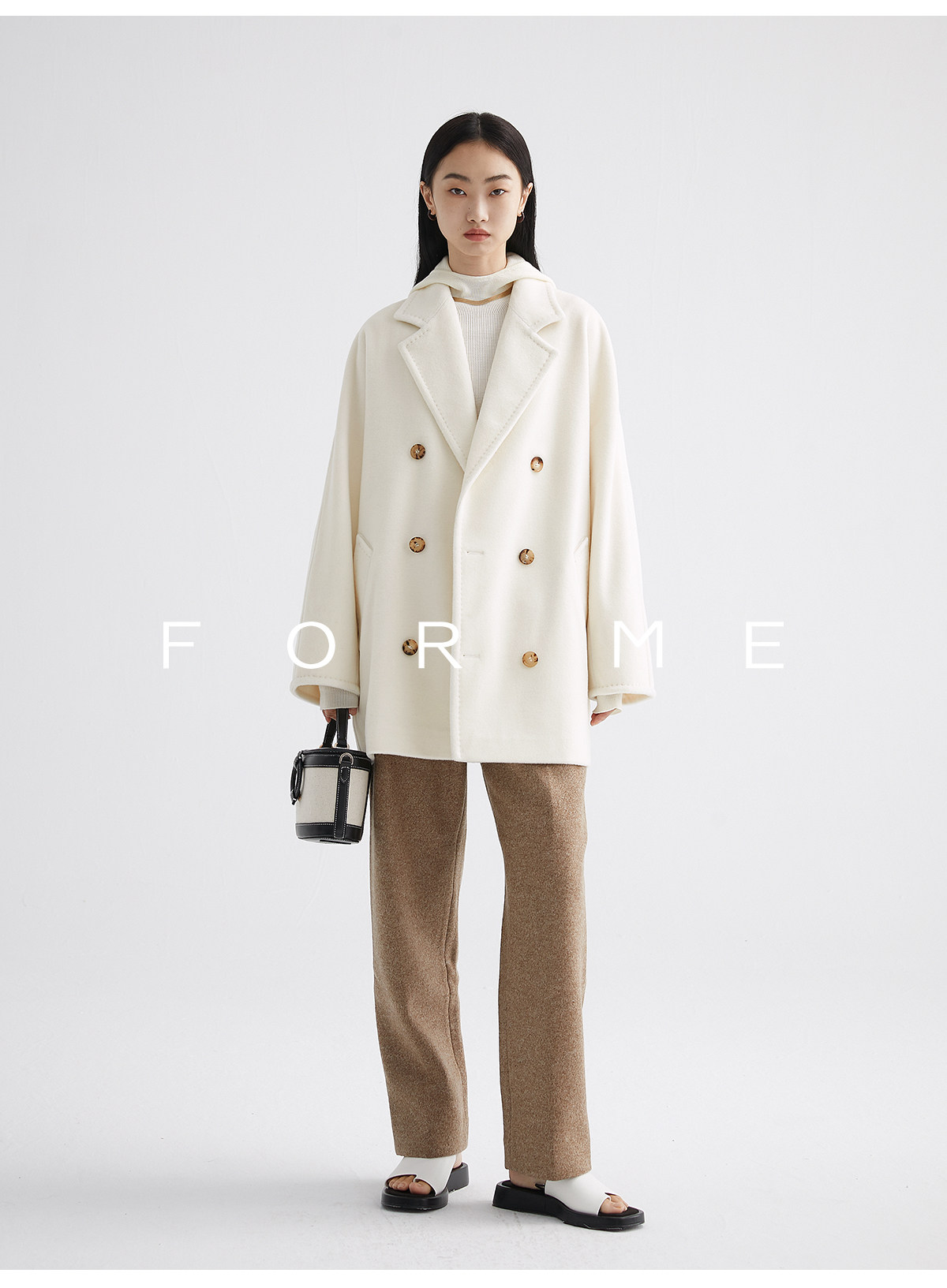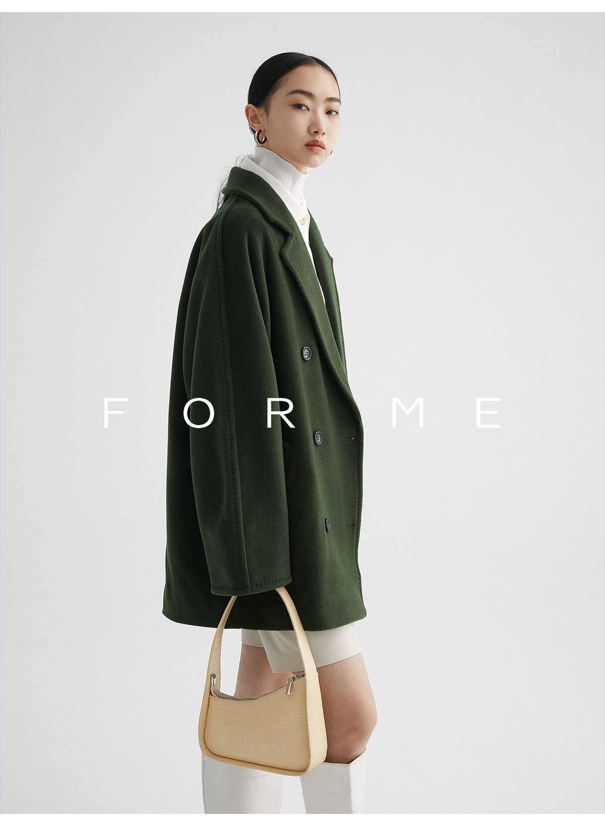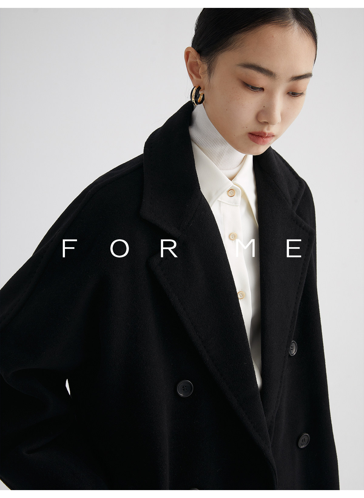 Classic Short 101801 Cashmere Coat for Women, Double-Breasted, Loose Fit, Petite, Guinea Casual Top Jacket