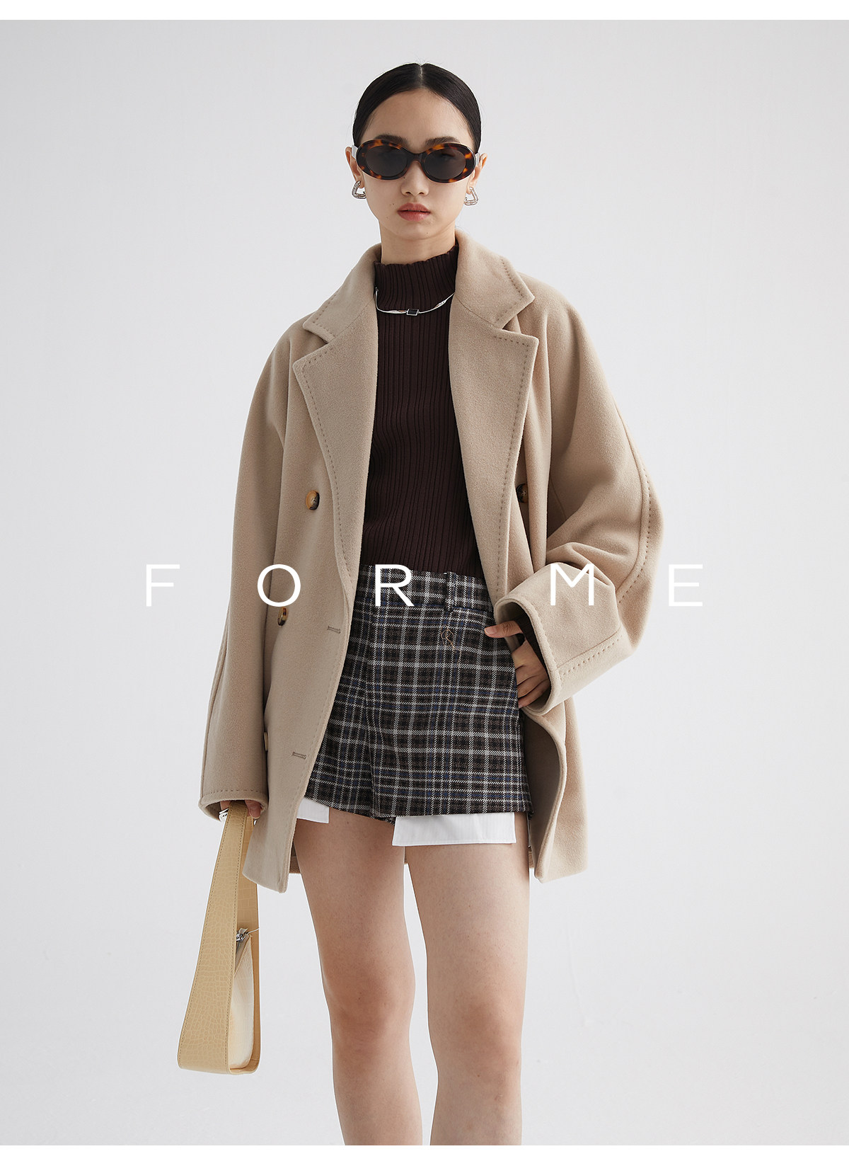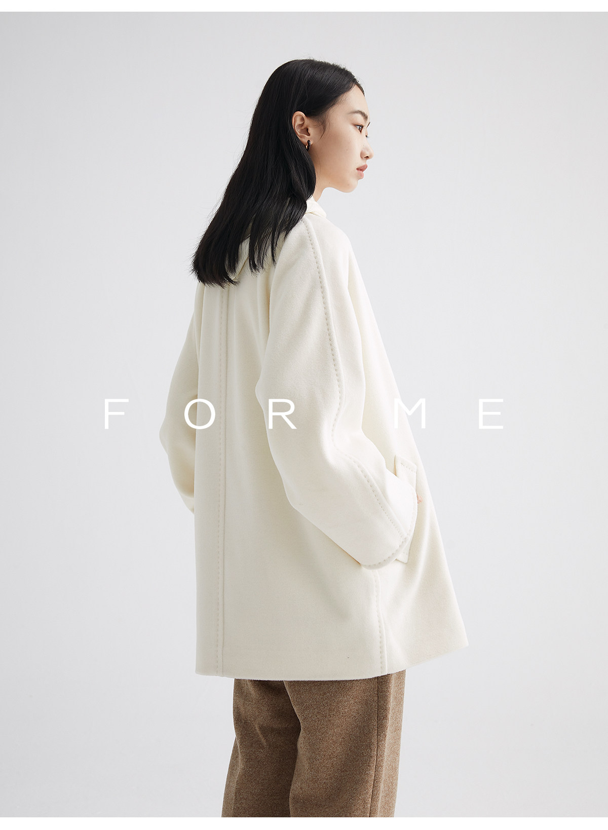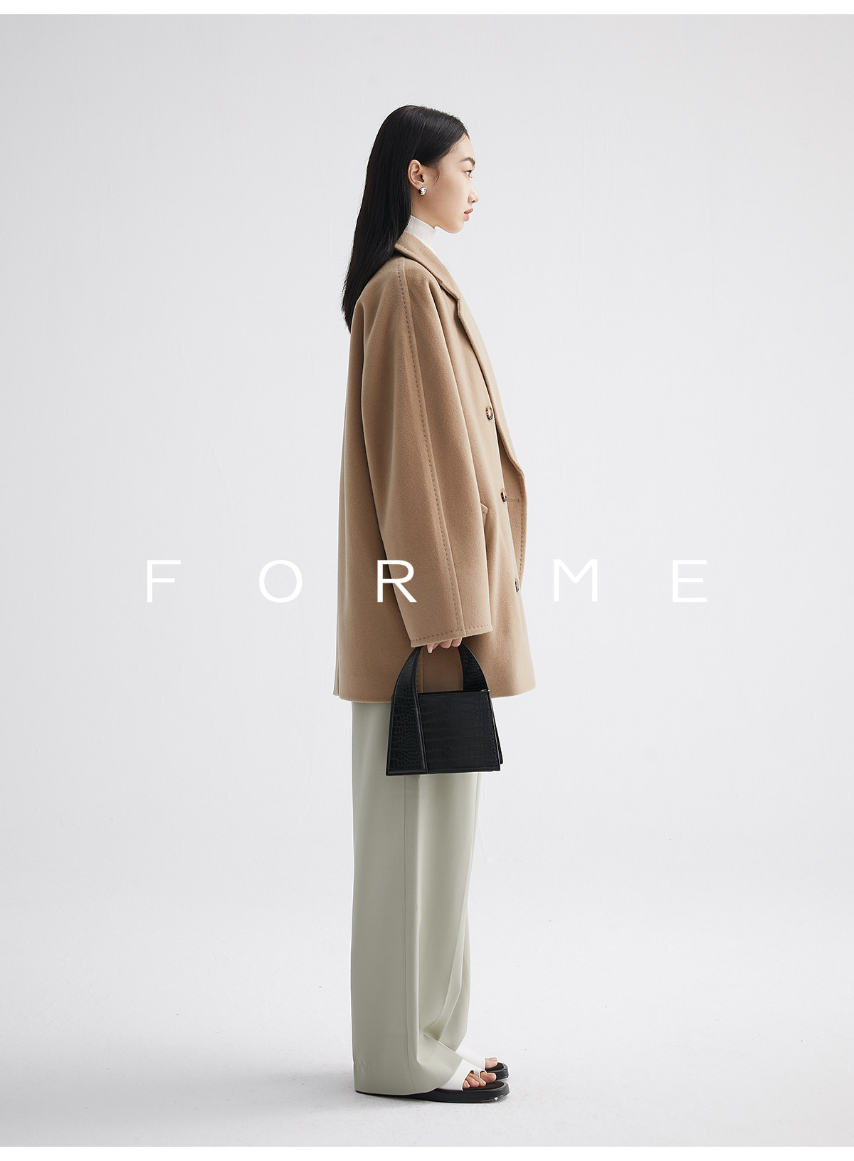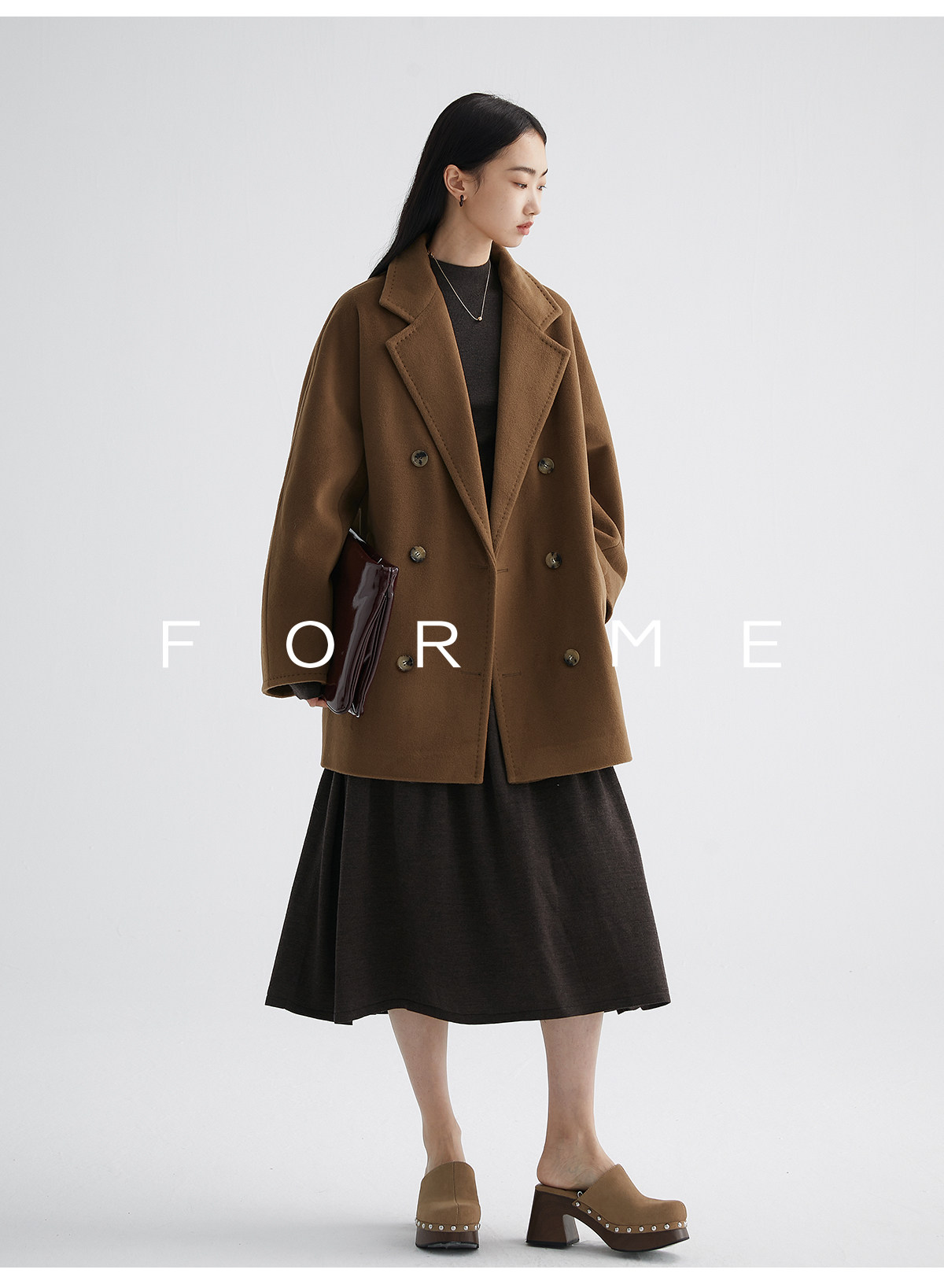Classic Short 101801 Cashmere Coat for Women, Double-Breasted, Loose Fit, Petite, Guinea Casual Top Jacket
