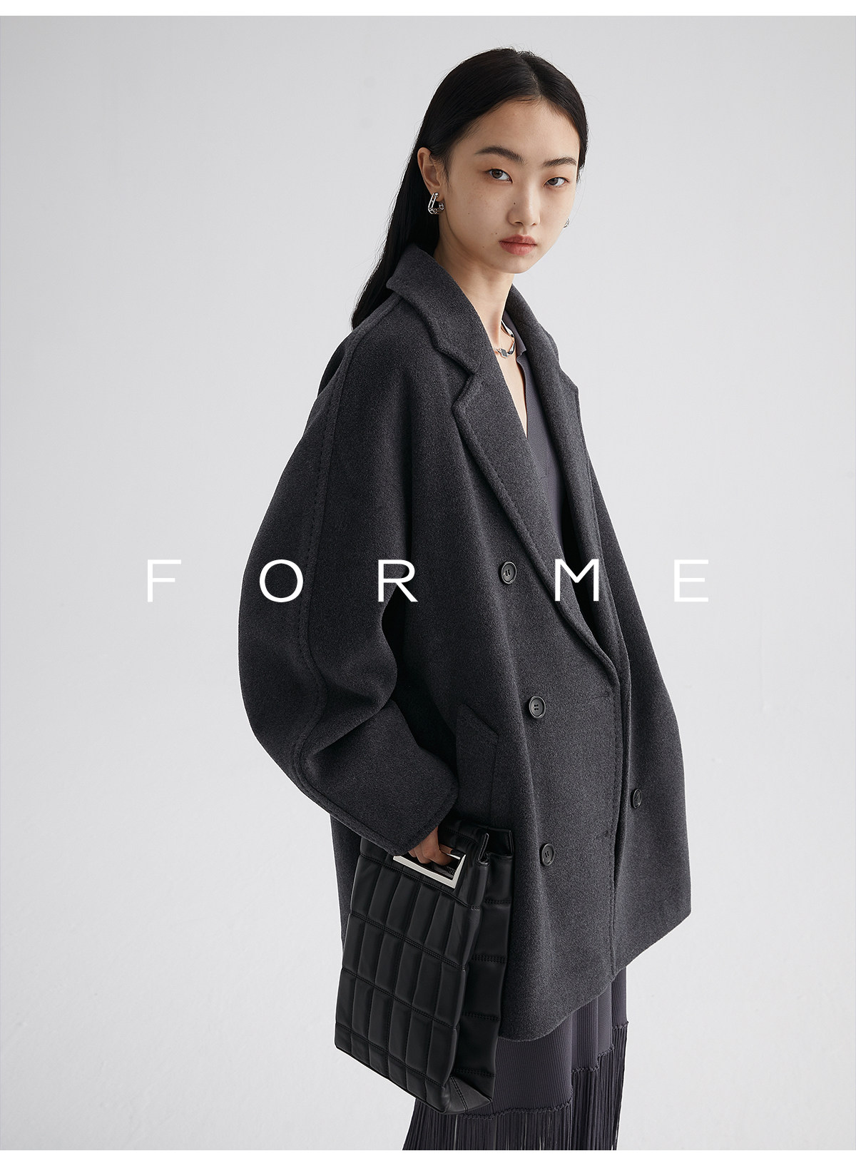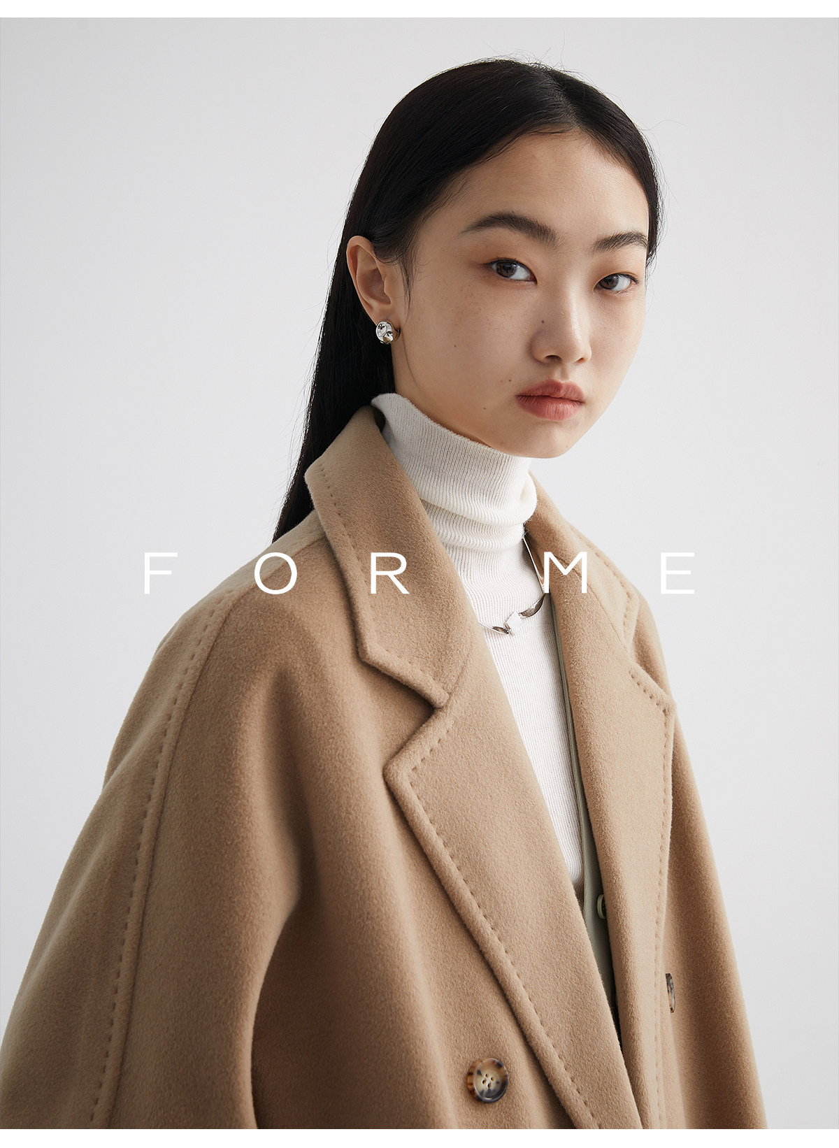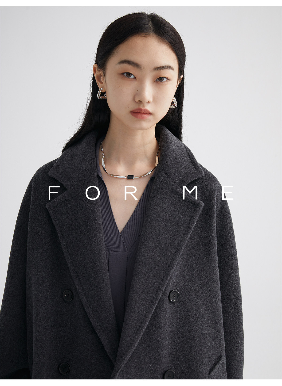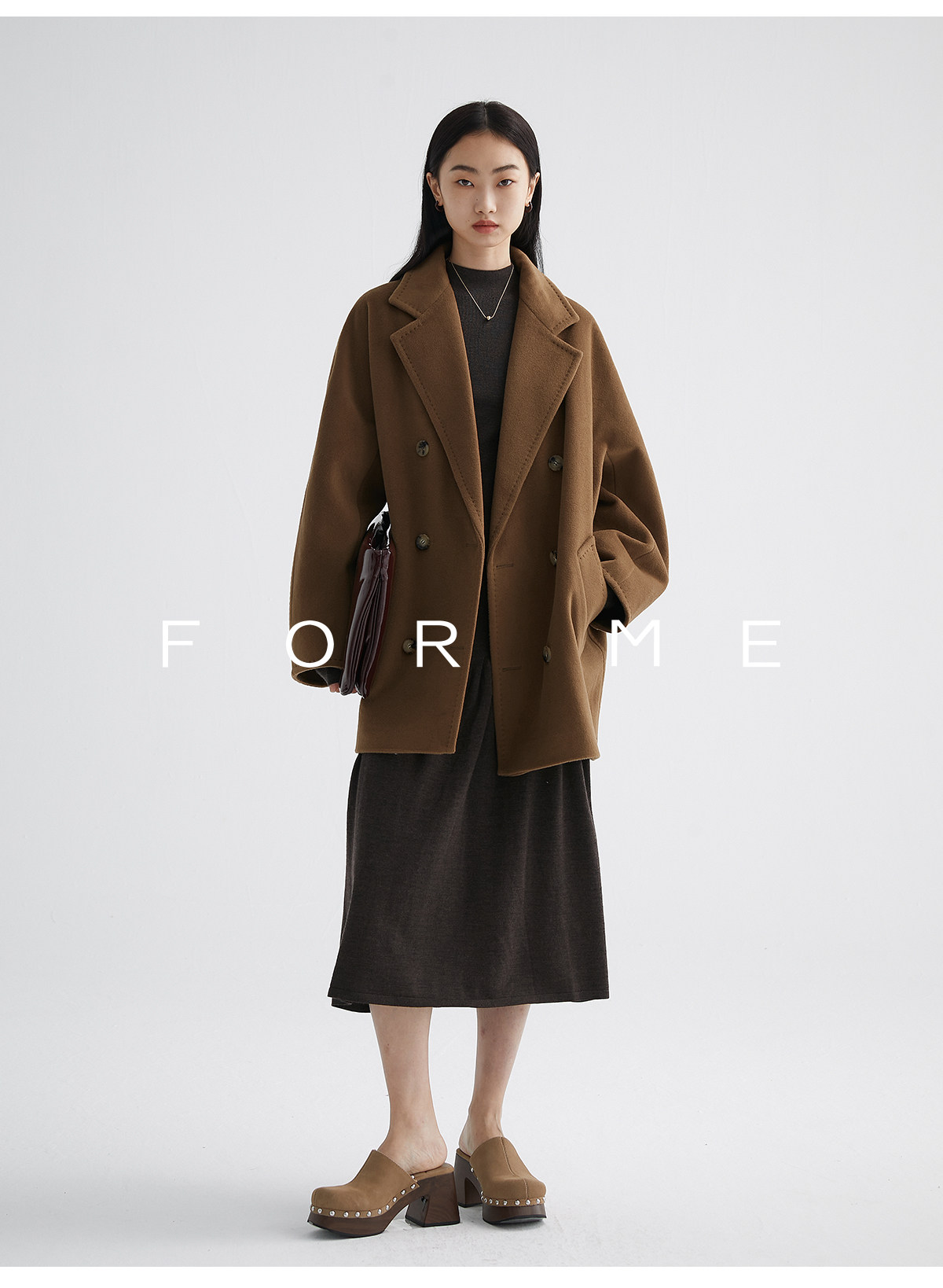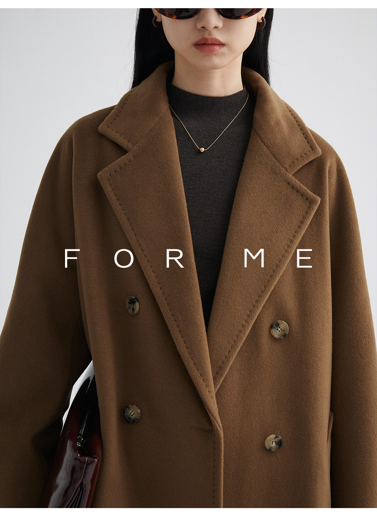 Classic Short 101801 Cashmere Coat for Women, Double-Breasted, Loose Fit, Petite, Guinea Casual Top Jacket