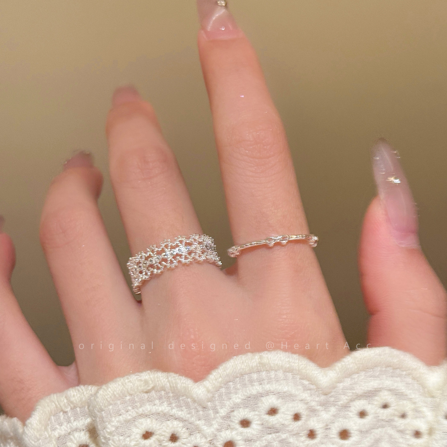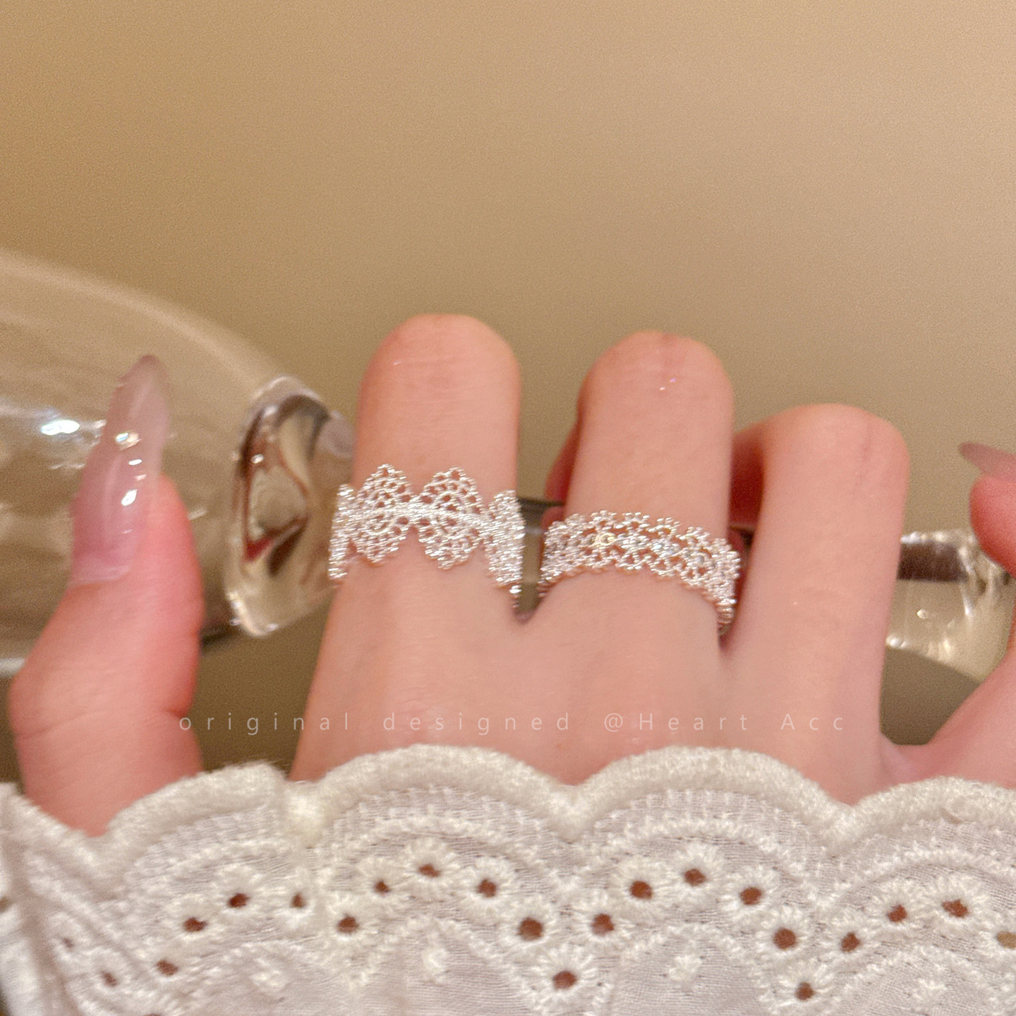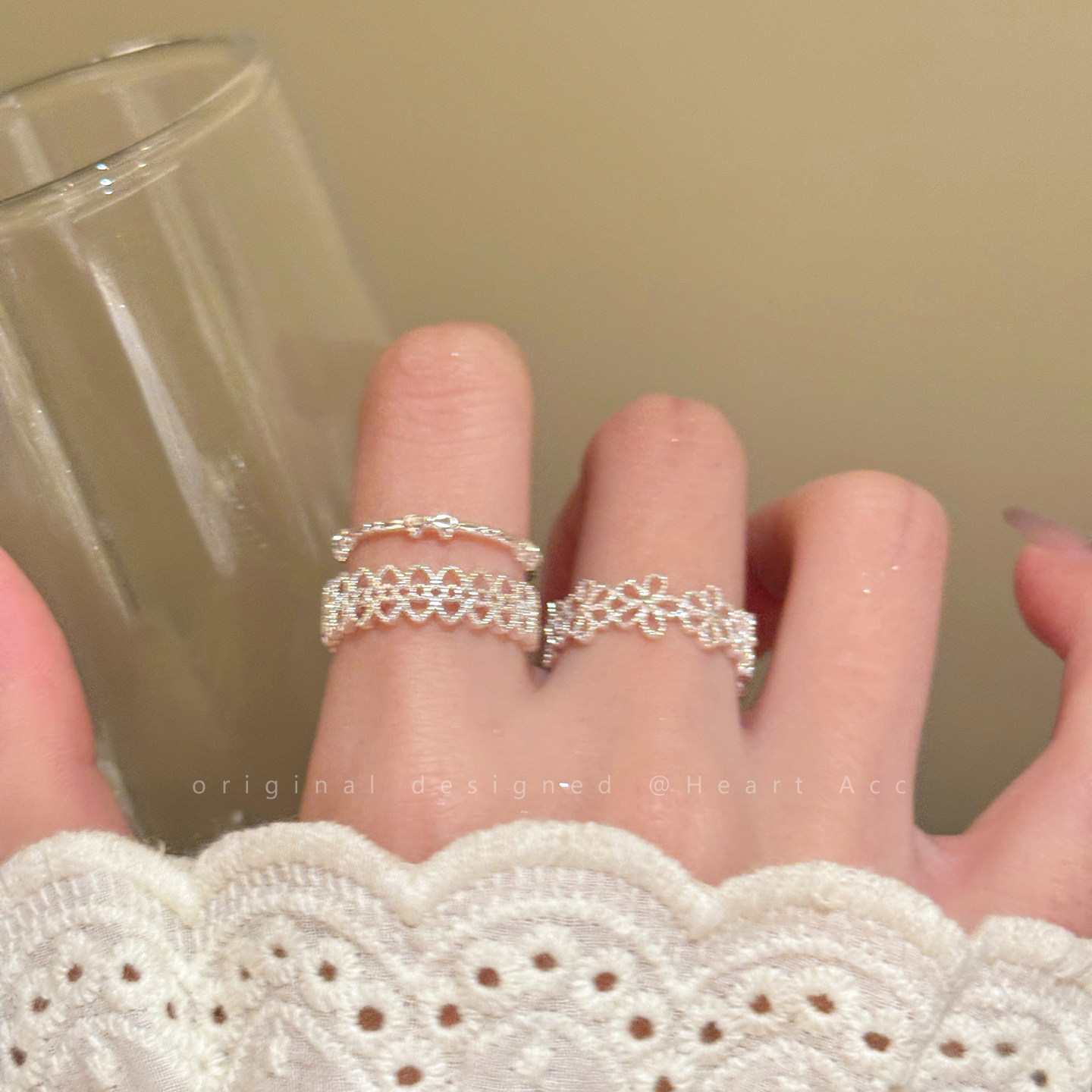 Palace-Style Lace Zircon Open Ring for Women, Light Luxury Niche High-End Index Finger Ring, Versatile and Elegant Ring