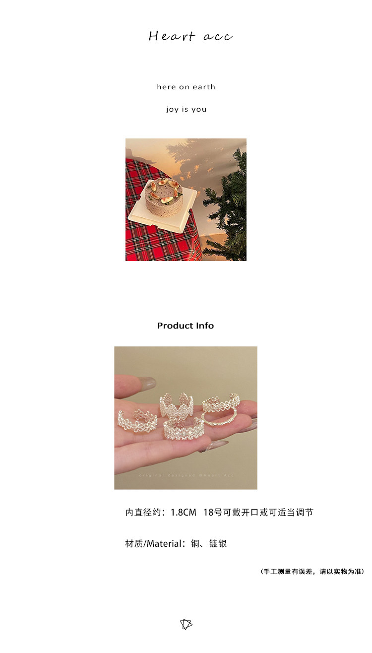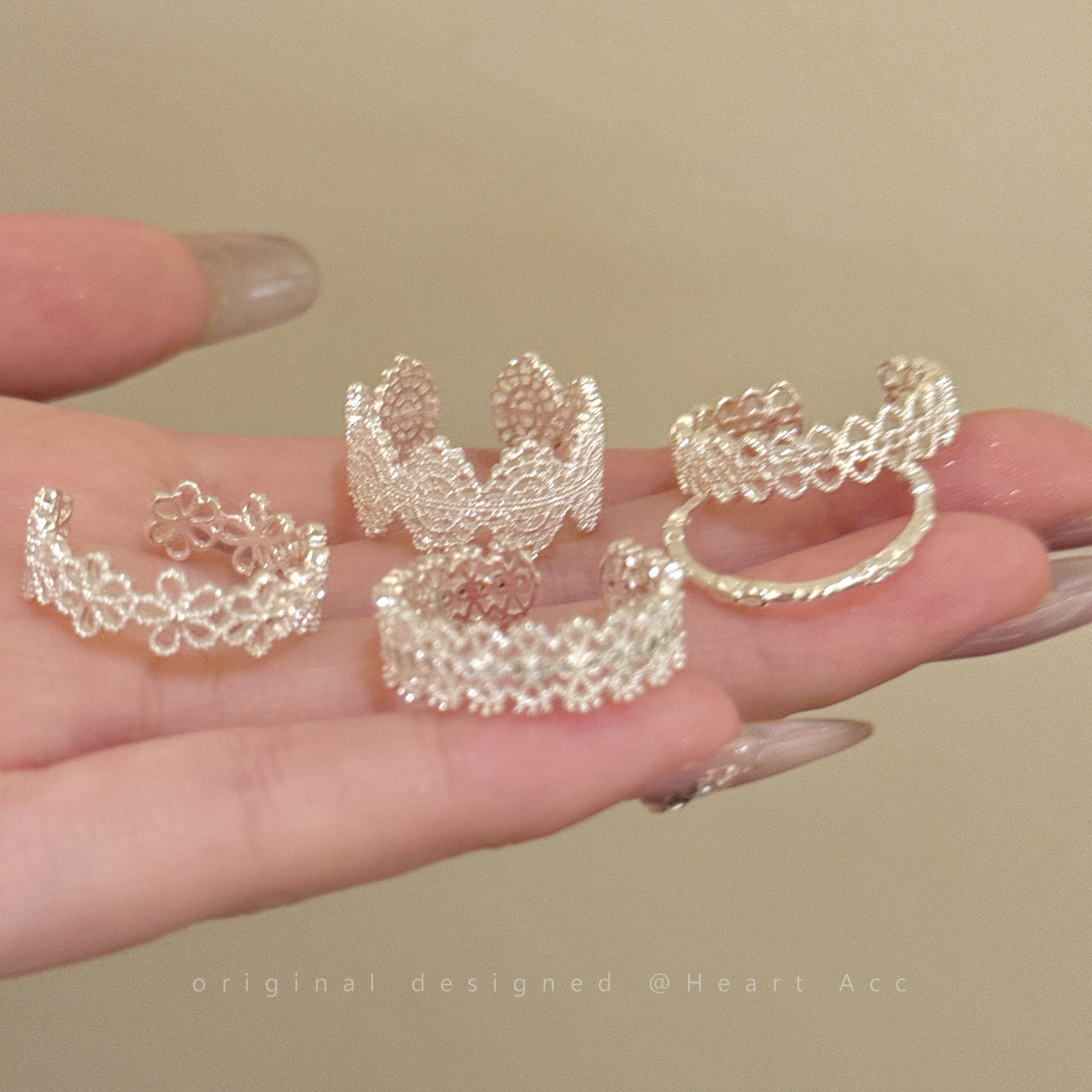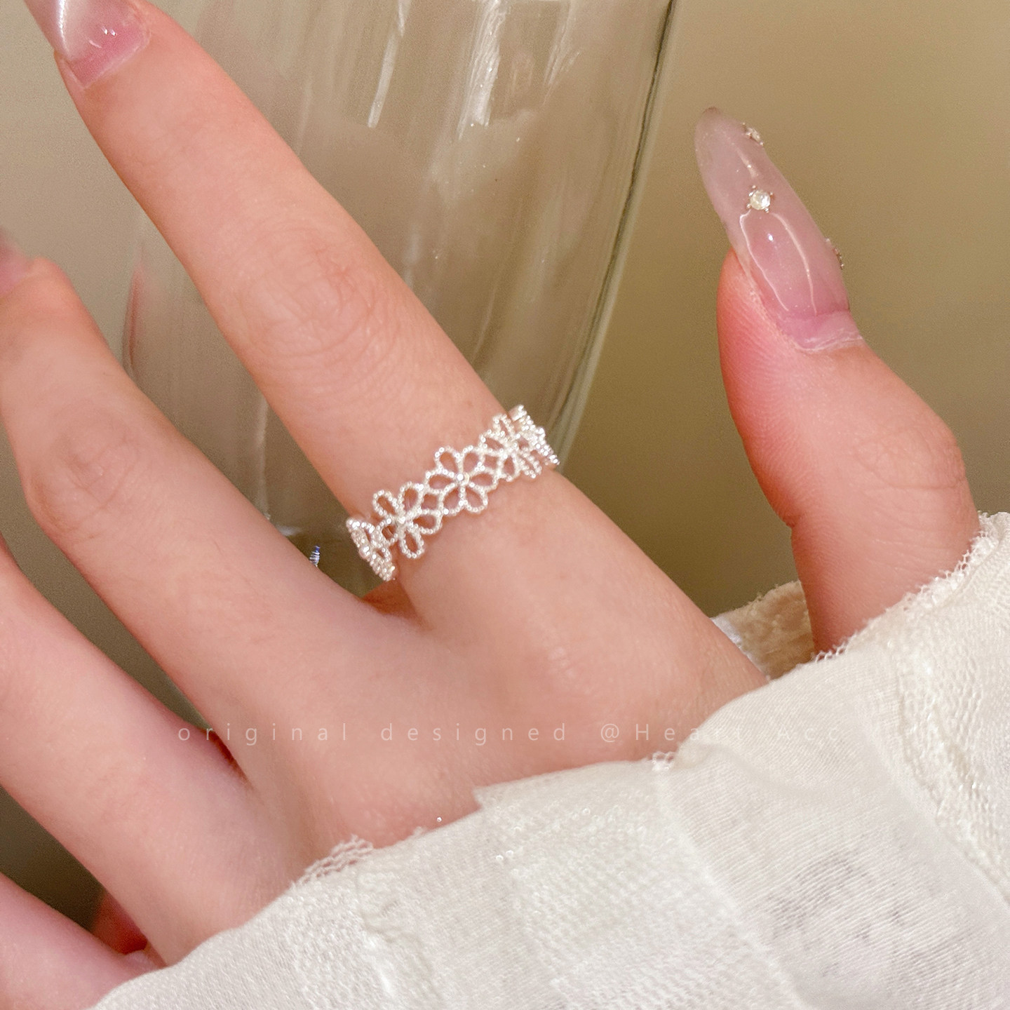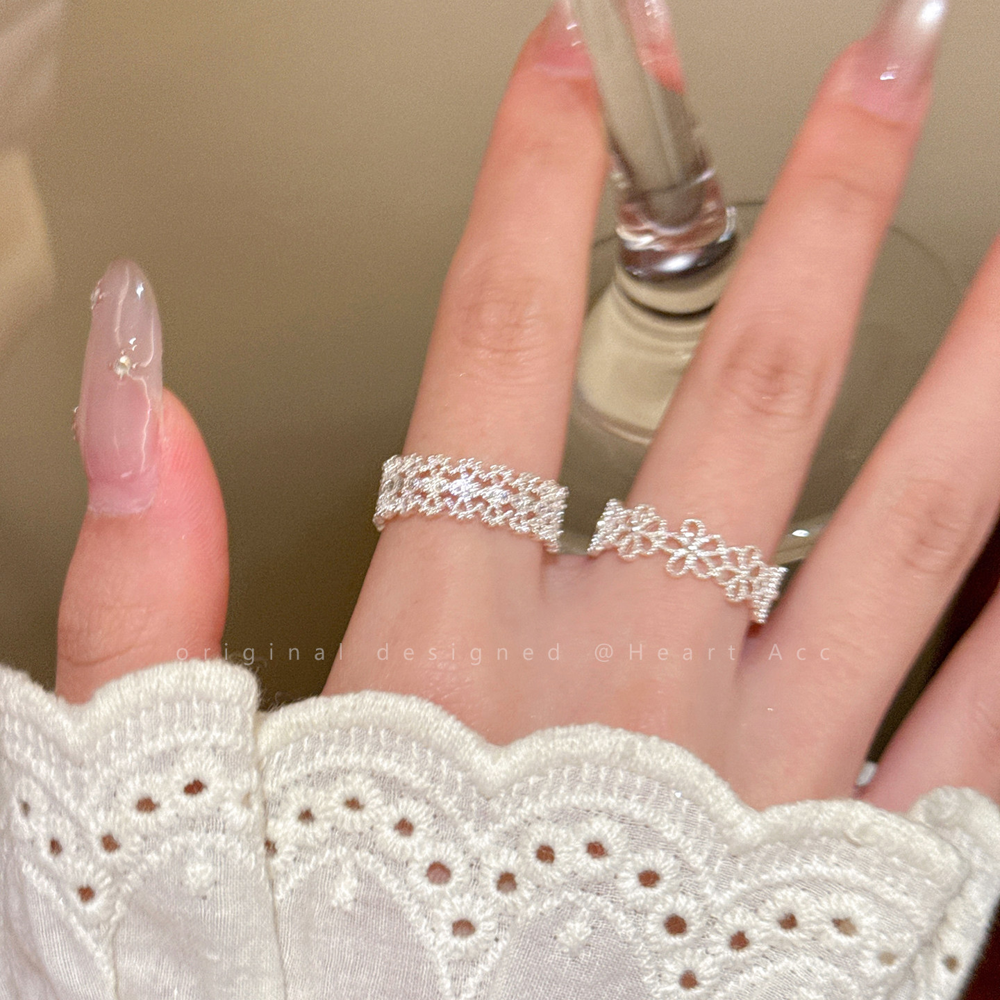 Palace-Style Lace Zircon Open Ring for Women, Light Luxury Niche High-End Index Finger Ring, Versatile and Elegant Ring