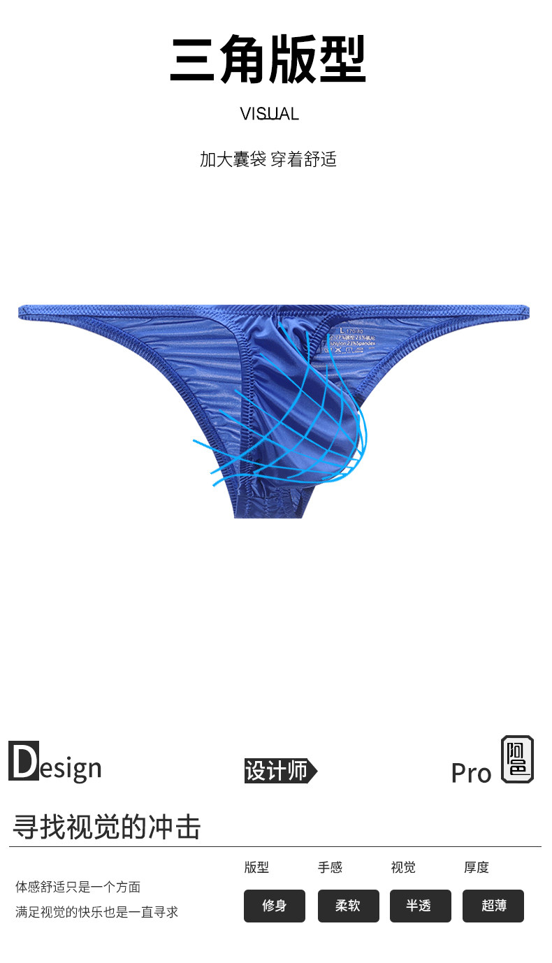 Ayie Men's Briefs Ice Silk Smooth Slightly Transparent Low-Rise Sexy Bikini Briefs Youth U-Convex 2025