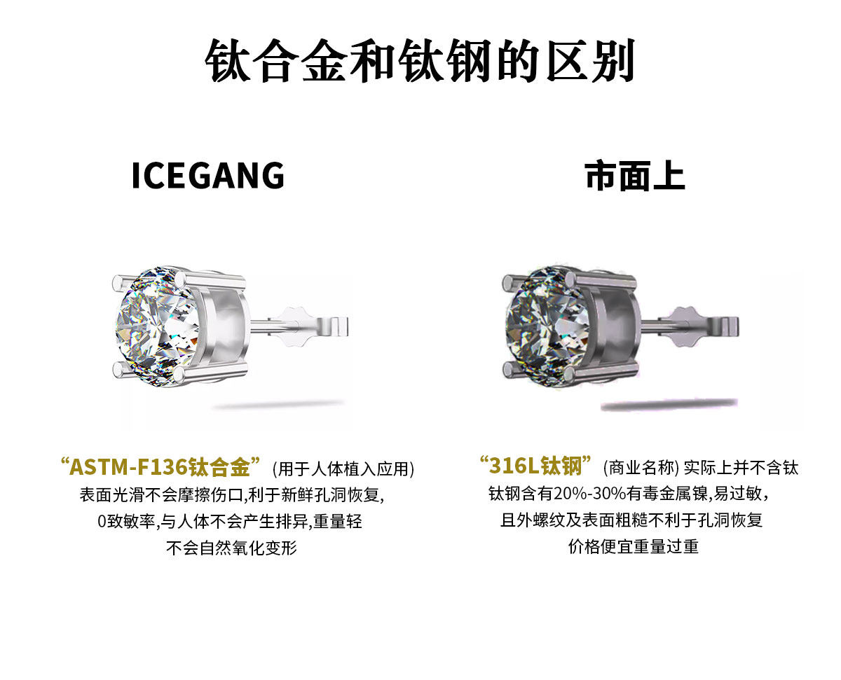 Icegang Medical Implant-Grade Titanium Alloy F136 Moissanite Earrings Hypoallergenic Ear Piercing Couple Ear Bone Studs