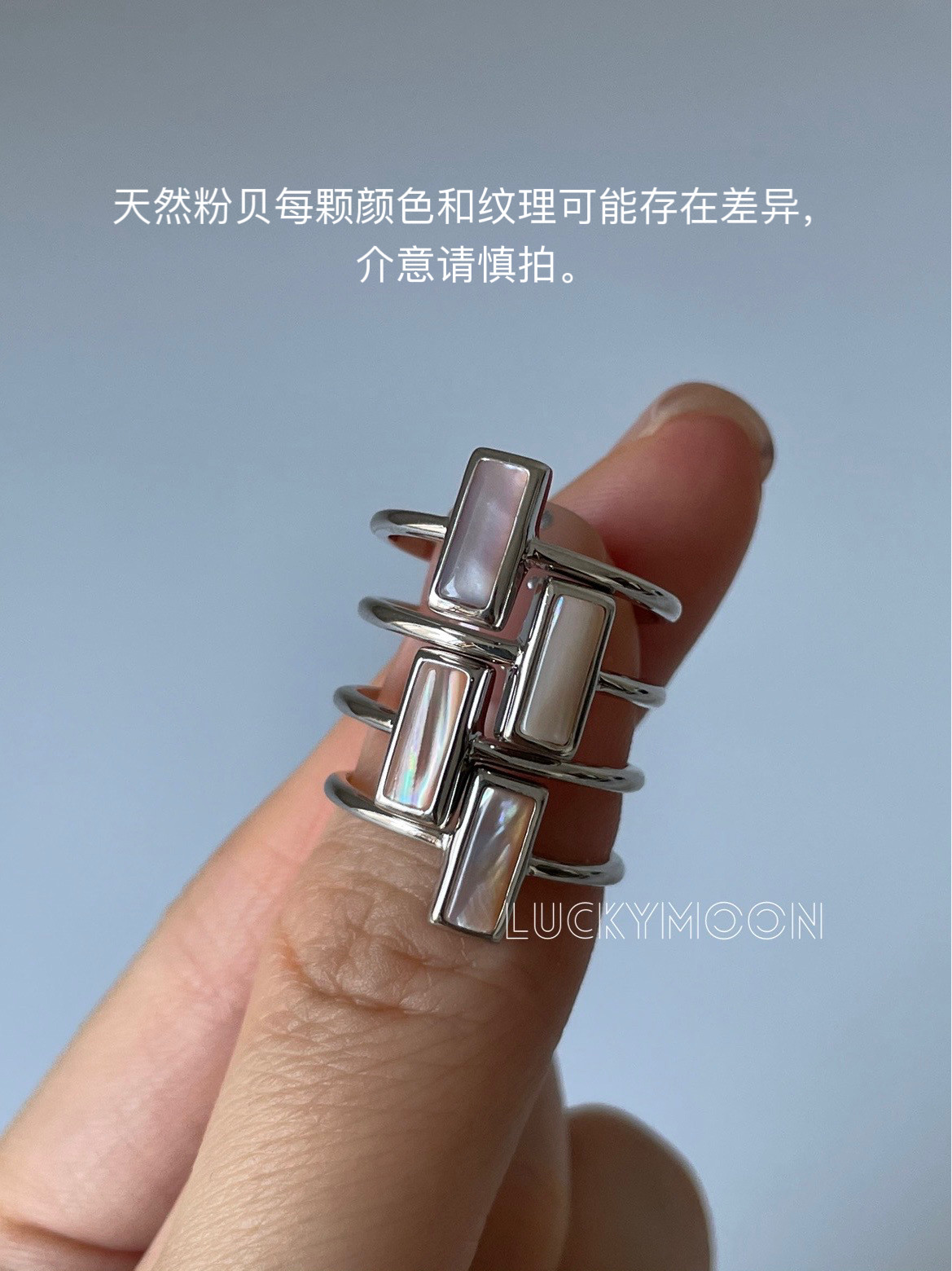 Luckymoon French Elegant High-End Pink Mother-Of-Pearl Open Ring S925 All-Over Sterling Silver R185