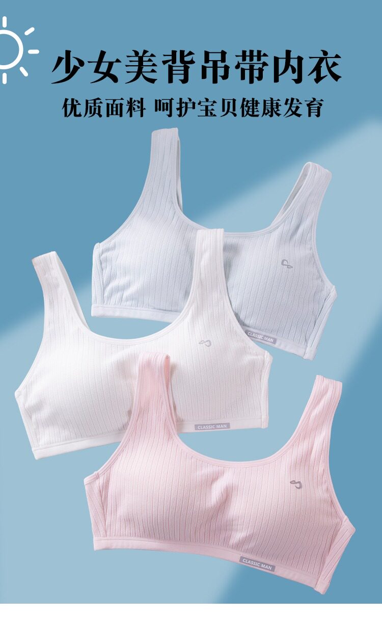 Pure Cotton Girls' Underwear for the Developmental Period, Junior High School Students, High School Students, Girls' Sports Shock-Proof Underwear, Breathable Vest-Style Thin Style
