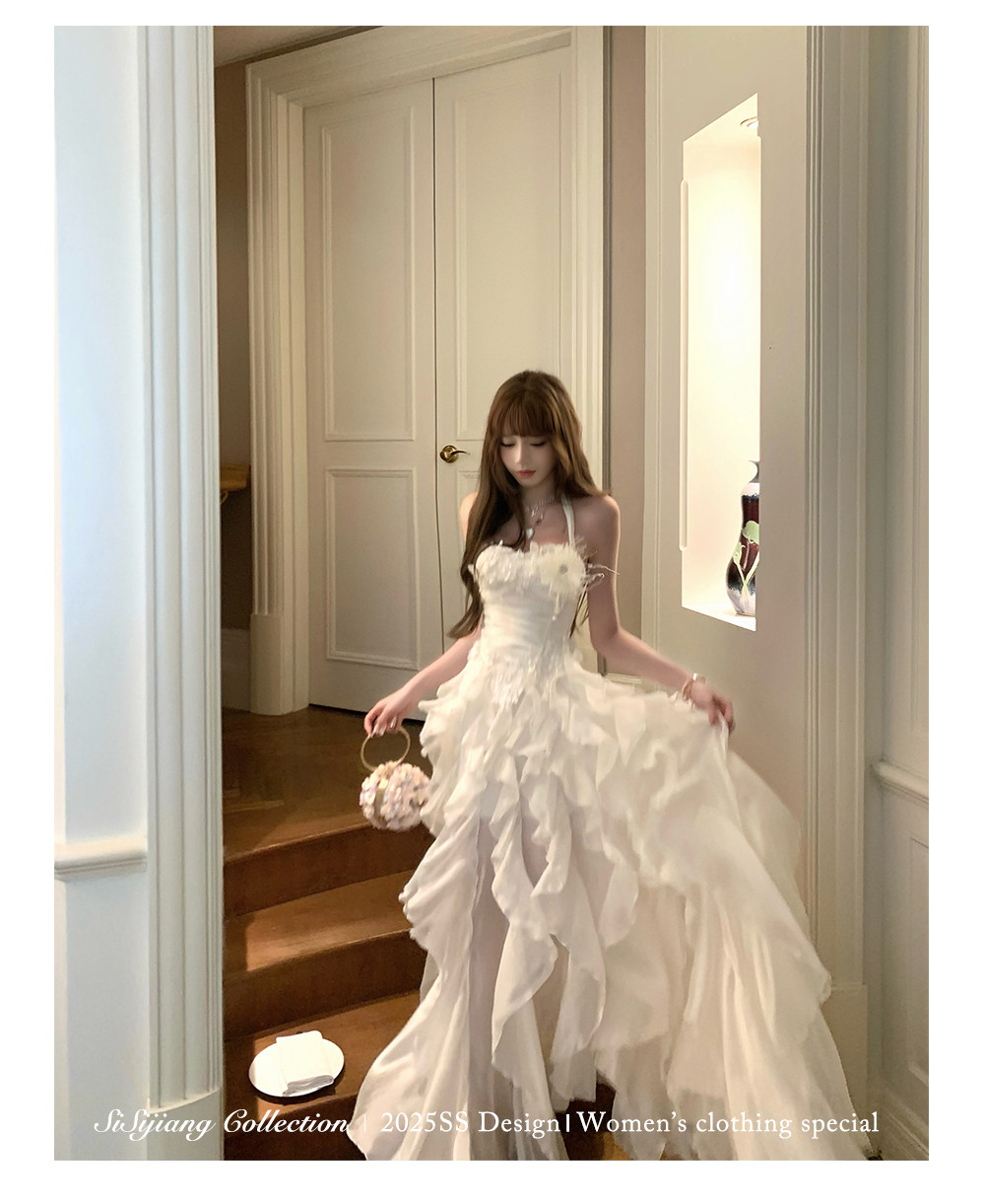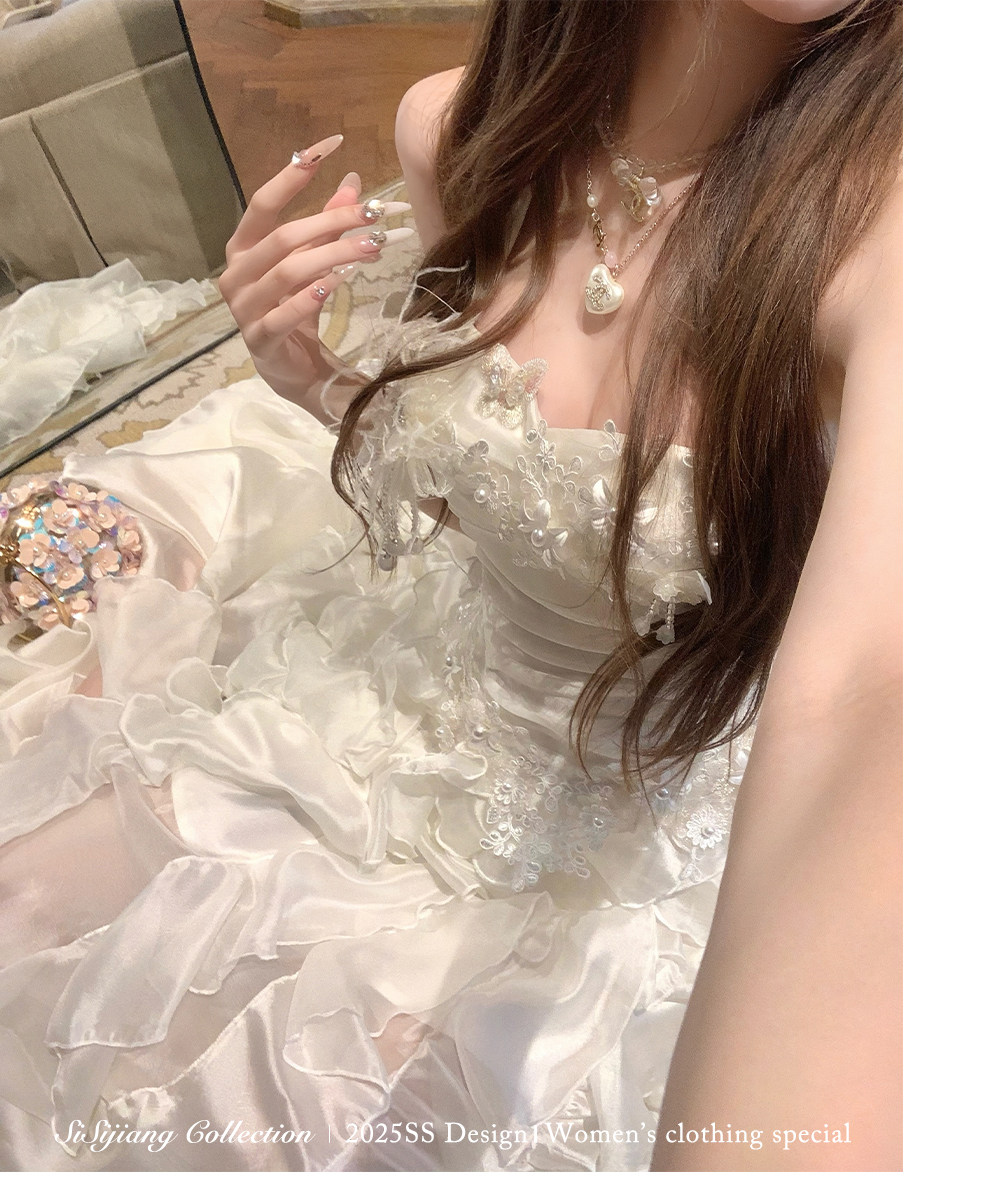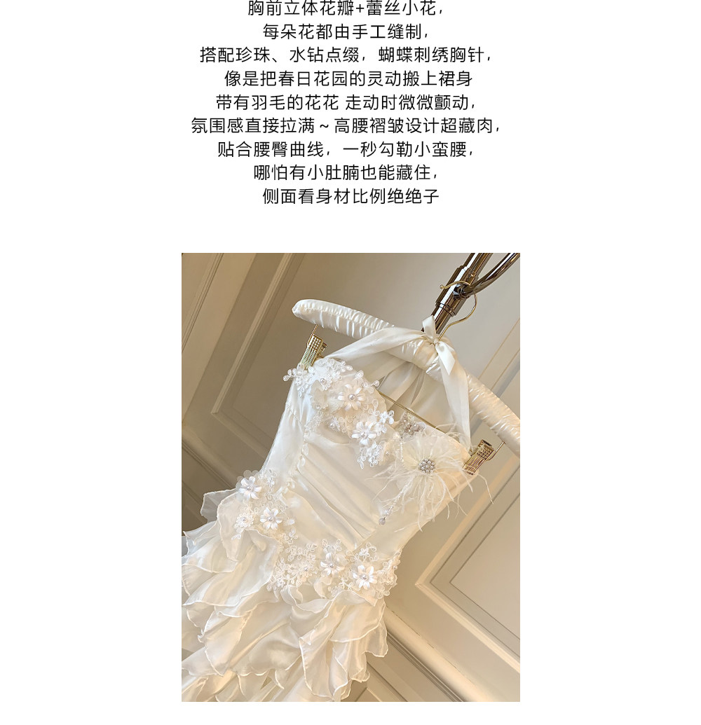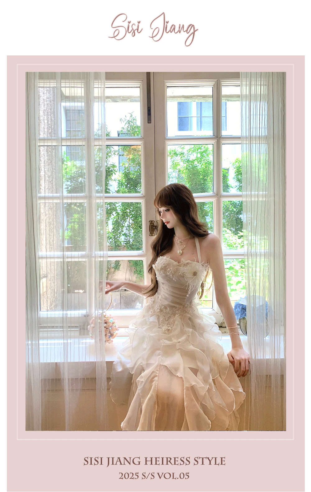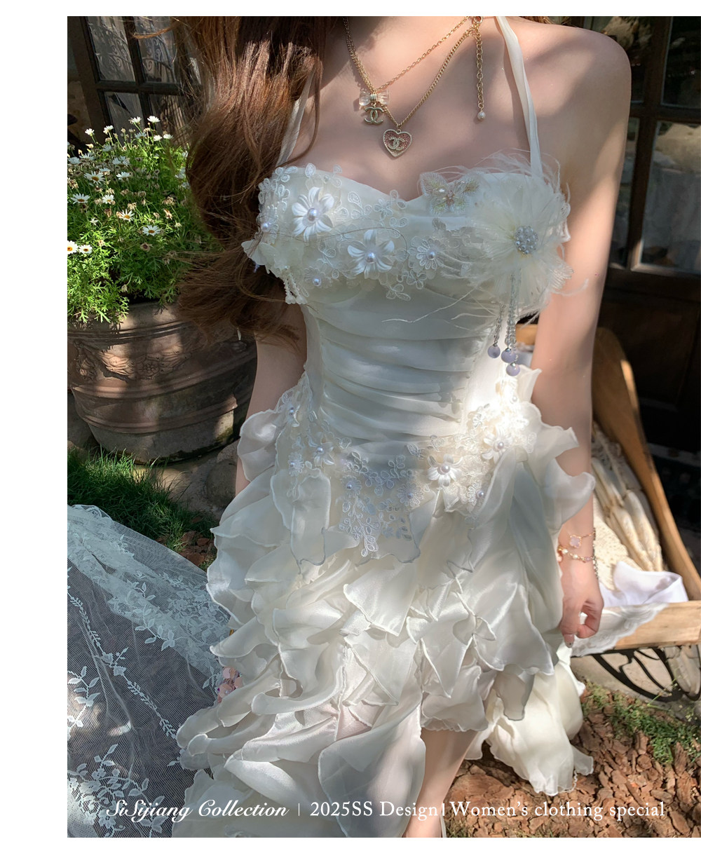 Sisi Jiang's "Garden Waltz" French Elegant Lace Waist-Cinching Mesh Floral Long Skirt