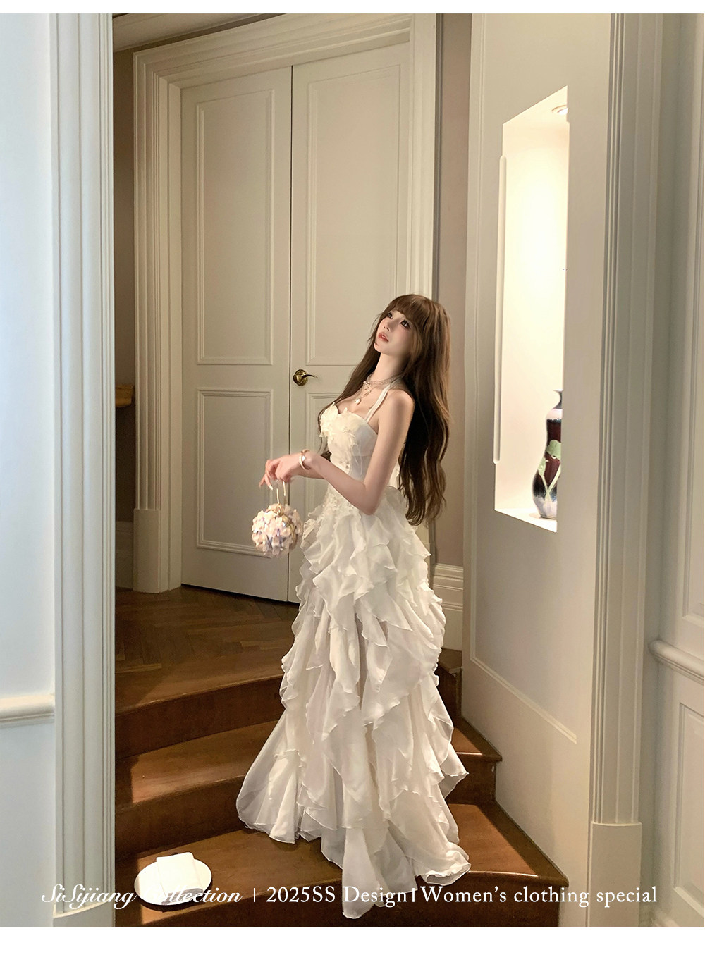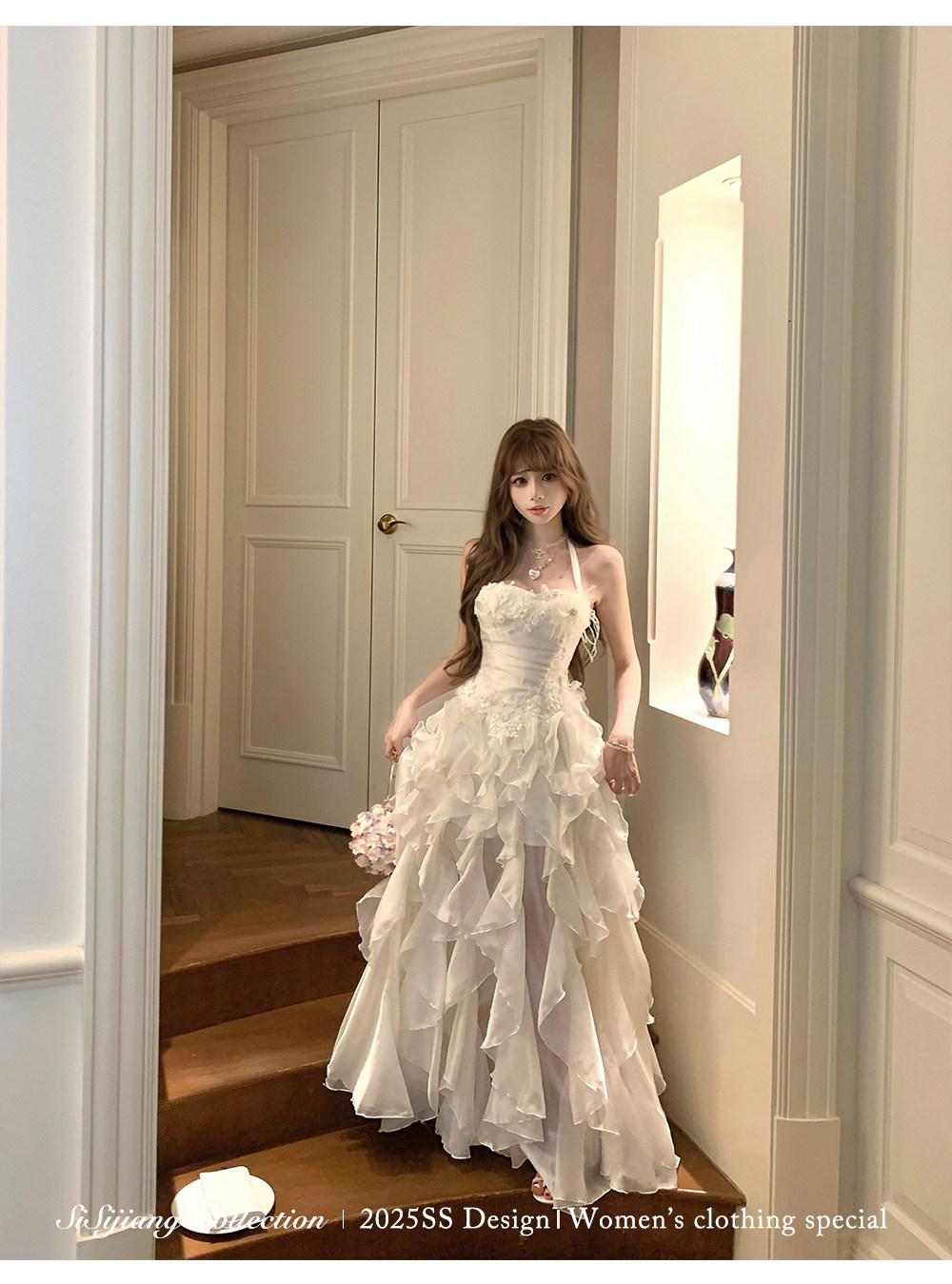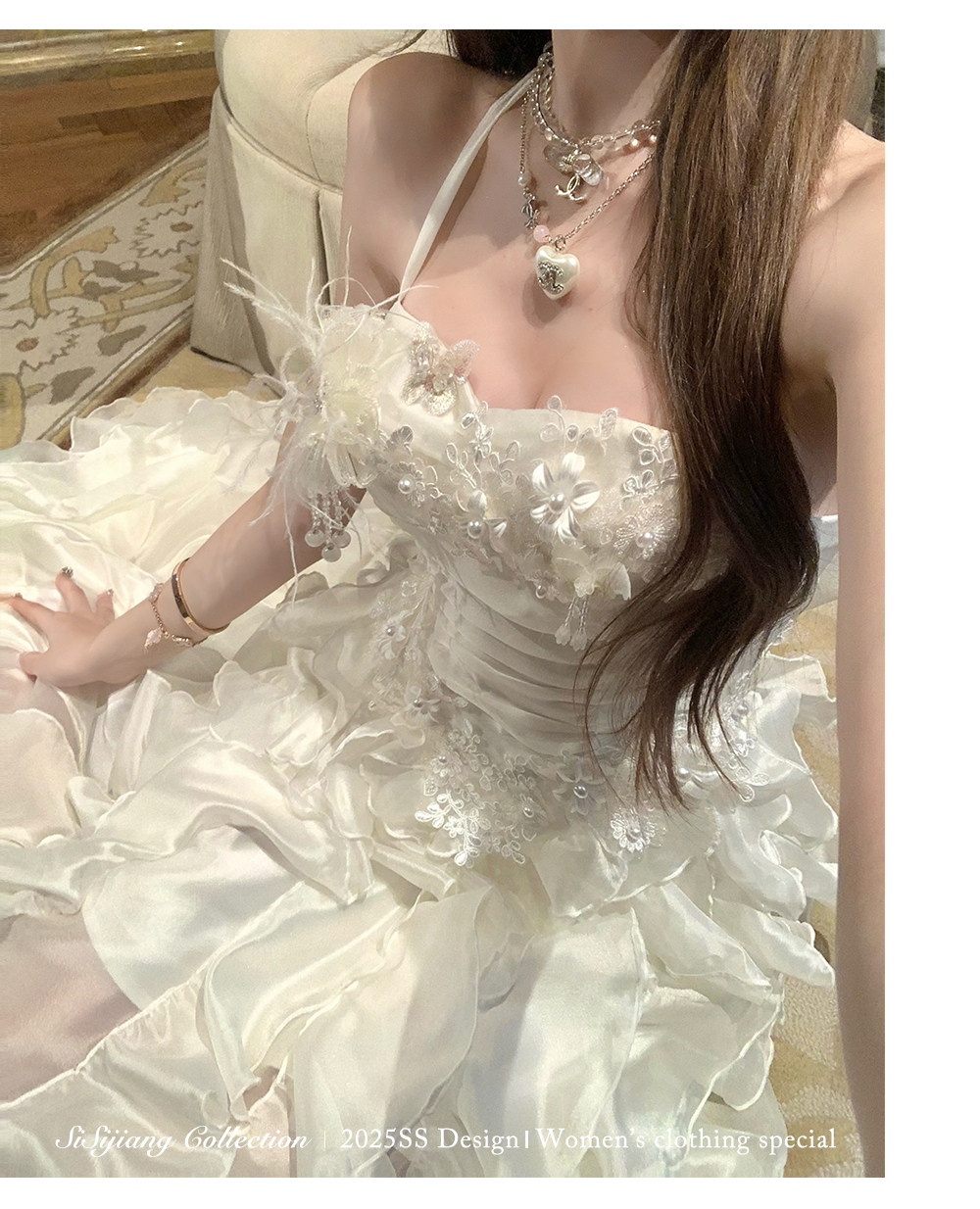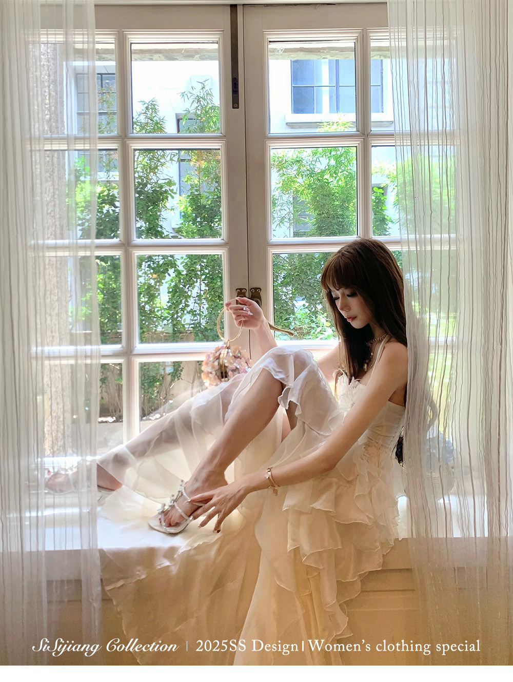 Sisi Jiang's "Garden Waltz" French Elegant Lace Waist-Cinching Mesh Floral Long Skirt