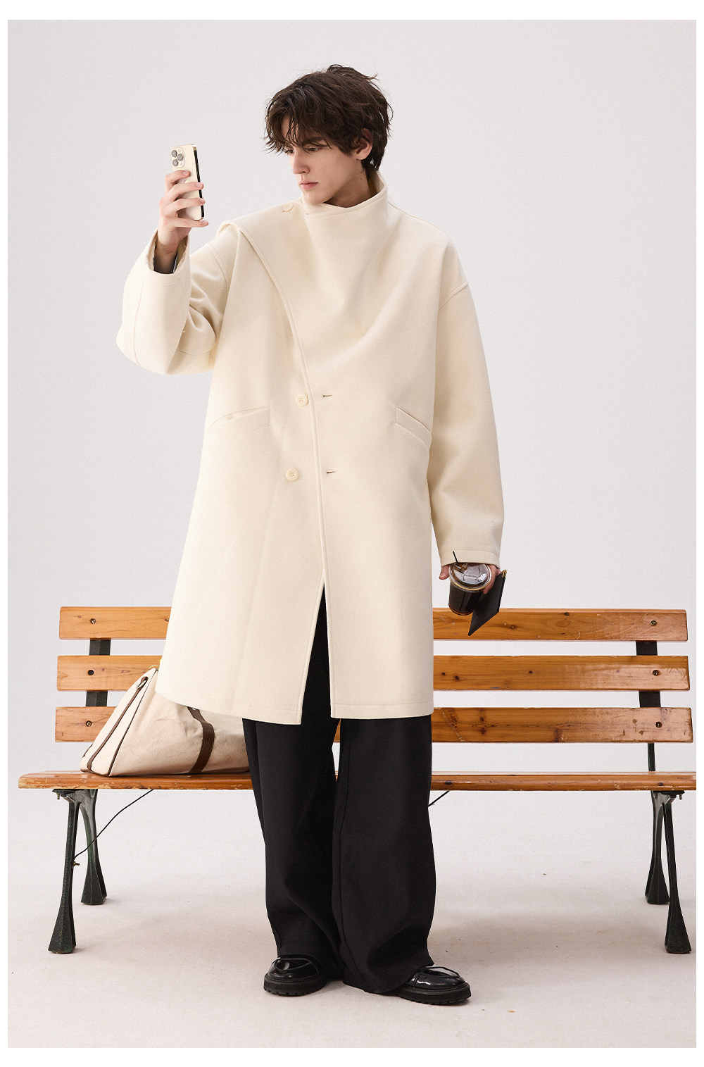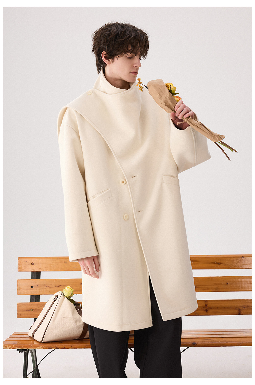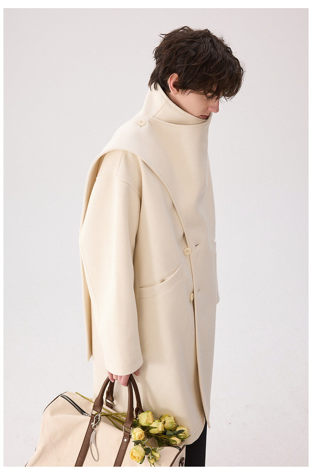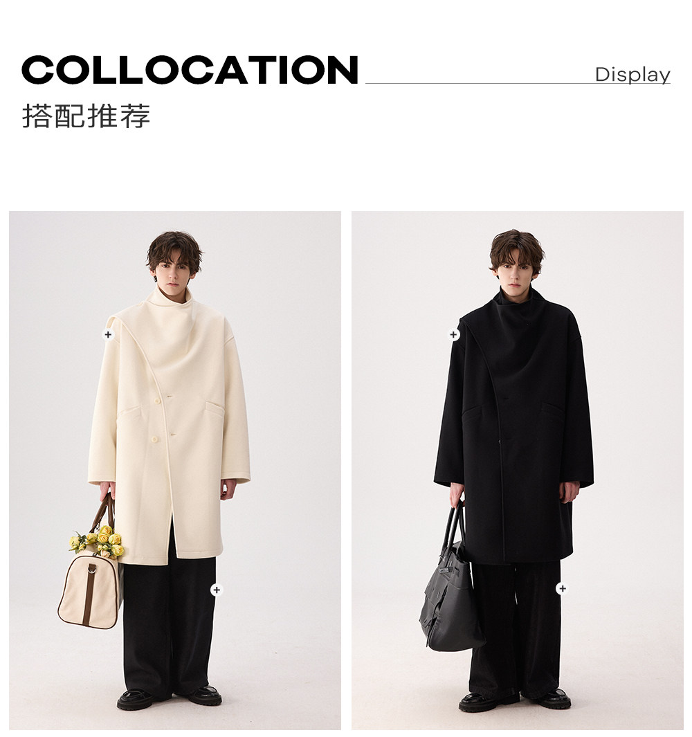 Chicerro Sicilian Men's Winter Designer One-Piece Scarf Wool Long Coat Trendy Men's Outerwear
