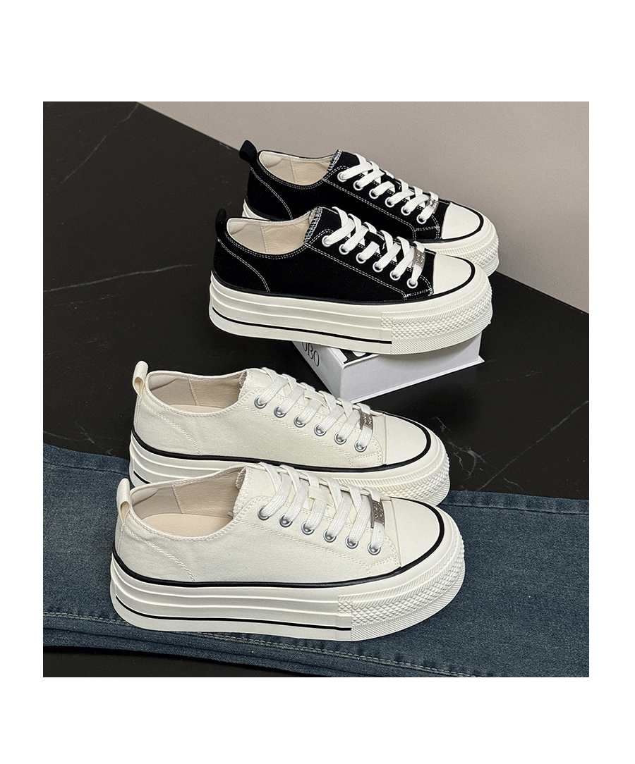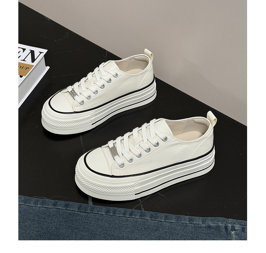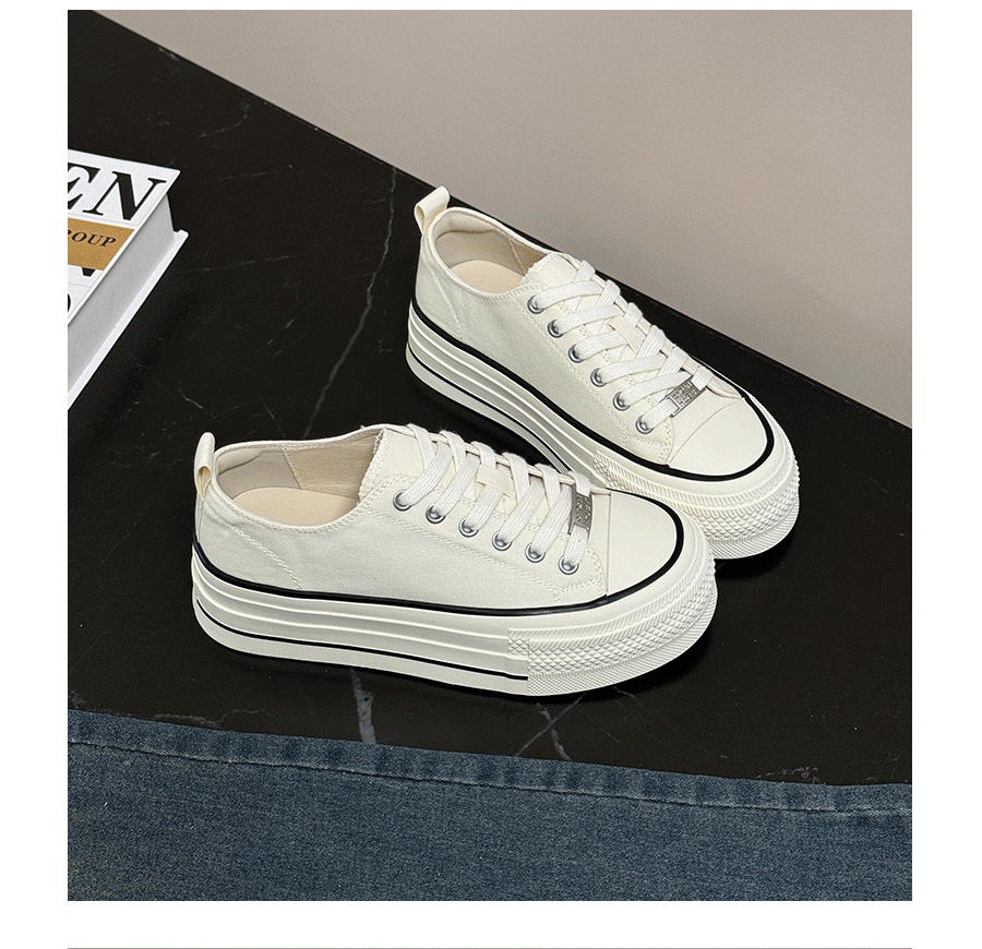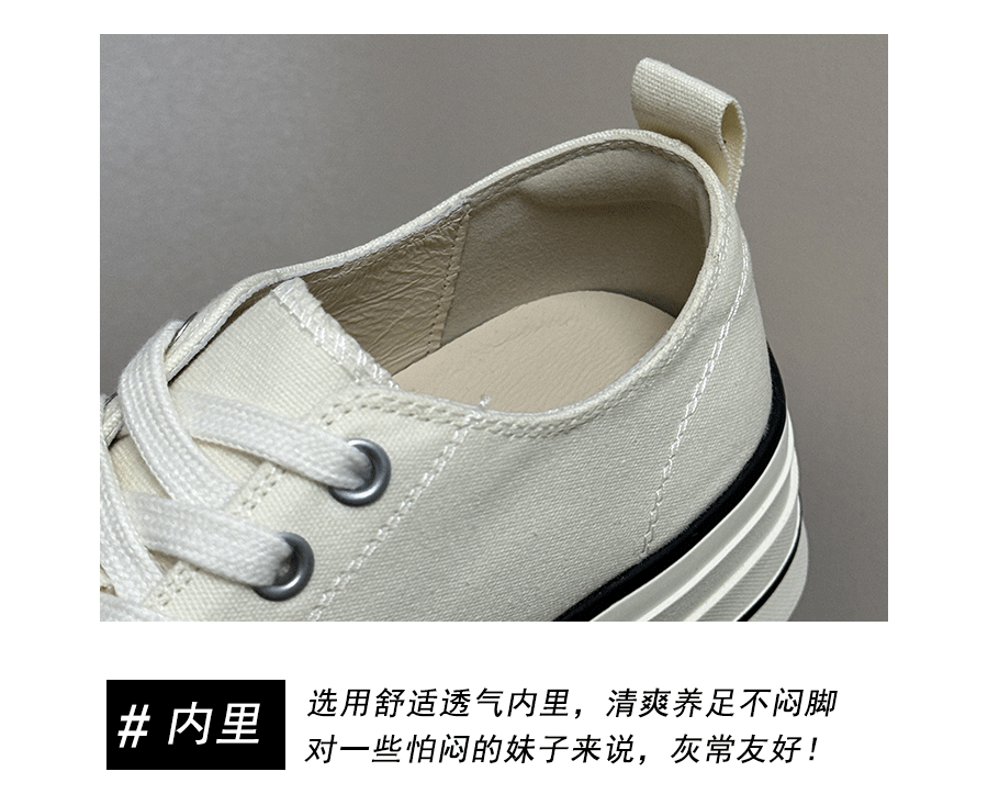 Sanli Genuine Leather Thick-Soled Height-Increasing Canvas Shoes for Women 2026 Spring and Autumn New Versatile Breathable Platform Shoes College Style Sneakers