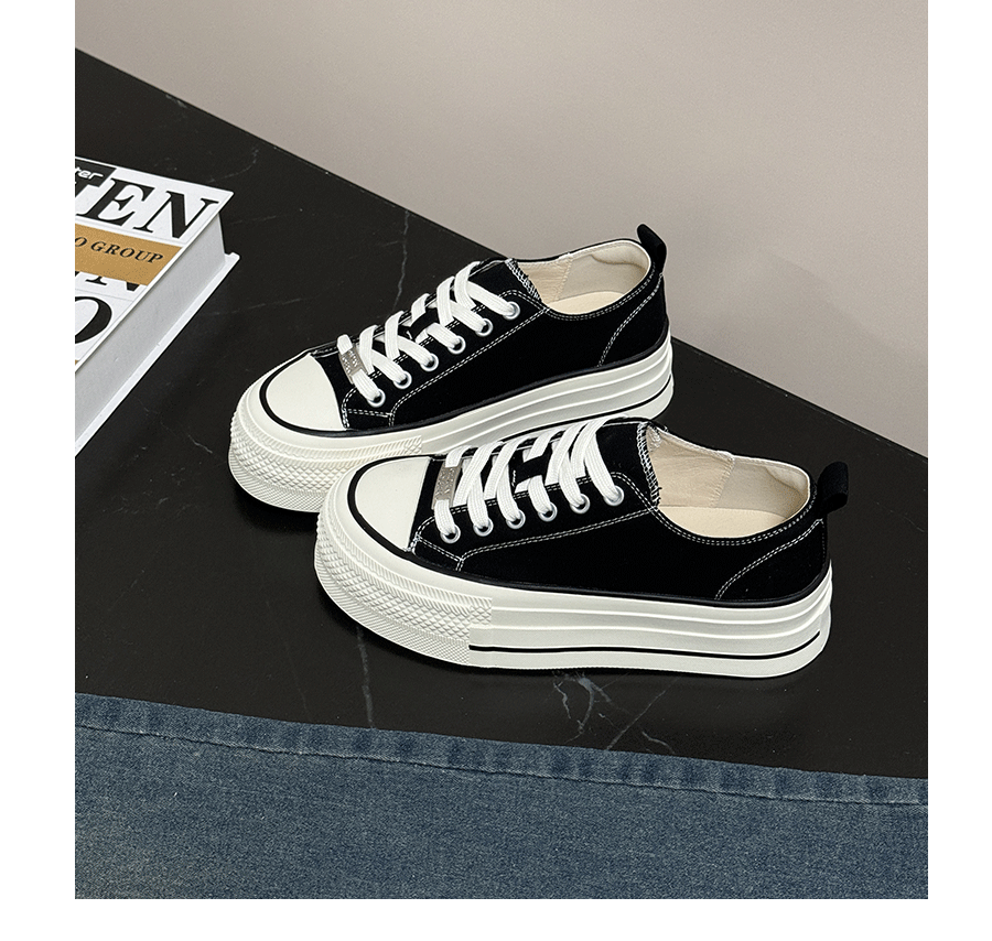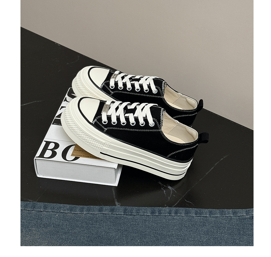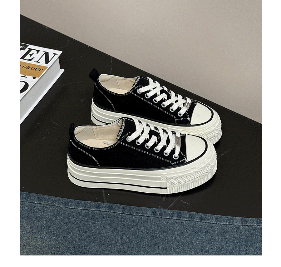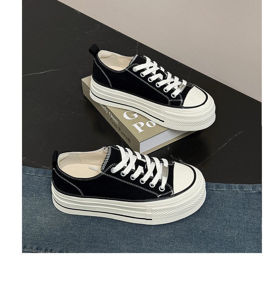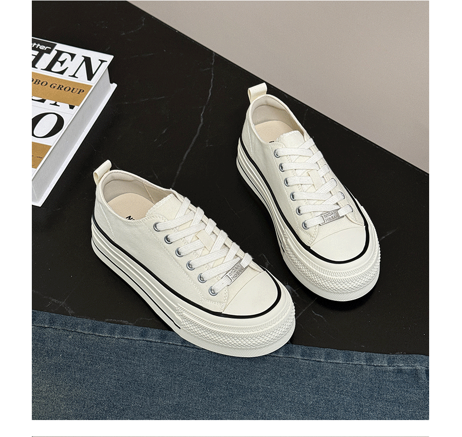 Sanli Genuine Leather Thick-Soled Height-Increasing Canvas Shoes for Women 2026 Spring and Autumn New Versatile Breathable Platform Shoes College Style Sneakers