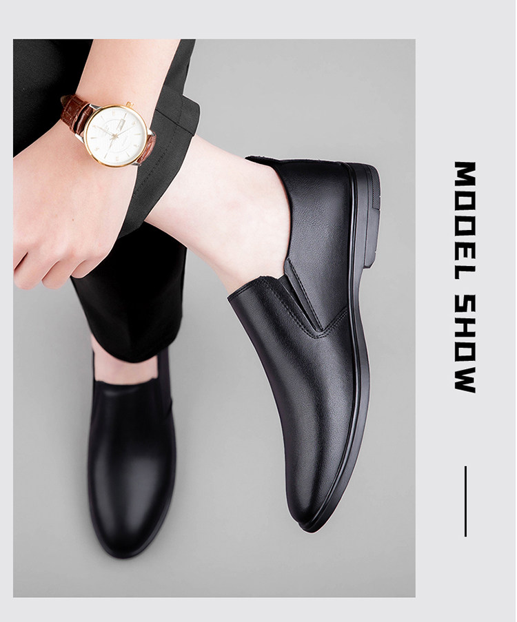 Woodpecker Men's Autumn Business Casual Slip-On Formal Work Leather Shoes Genuine Leather Breathable Soft Sole Men's Shoes