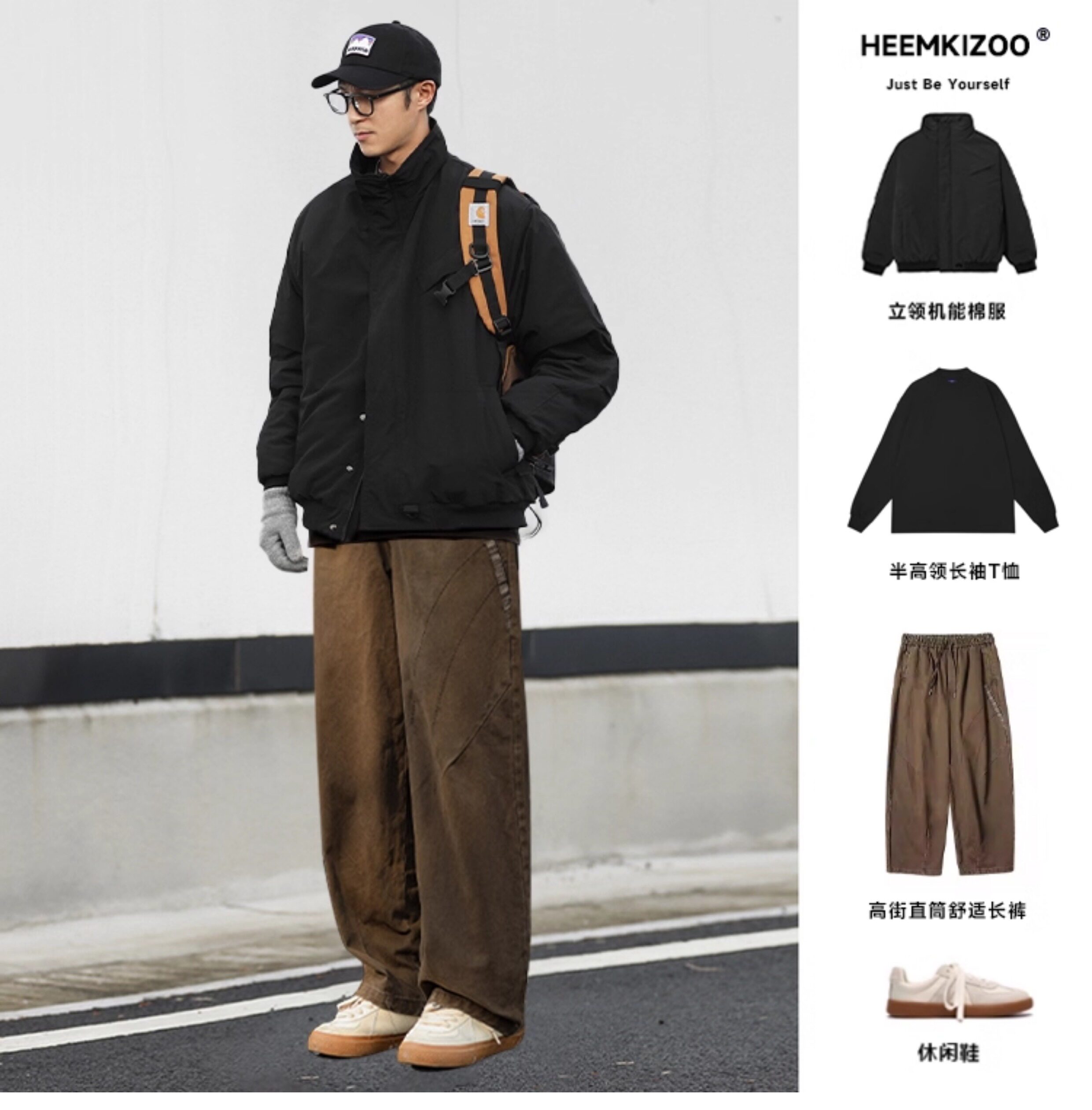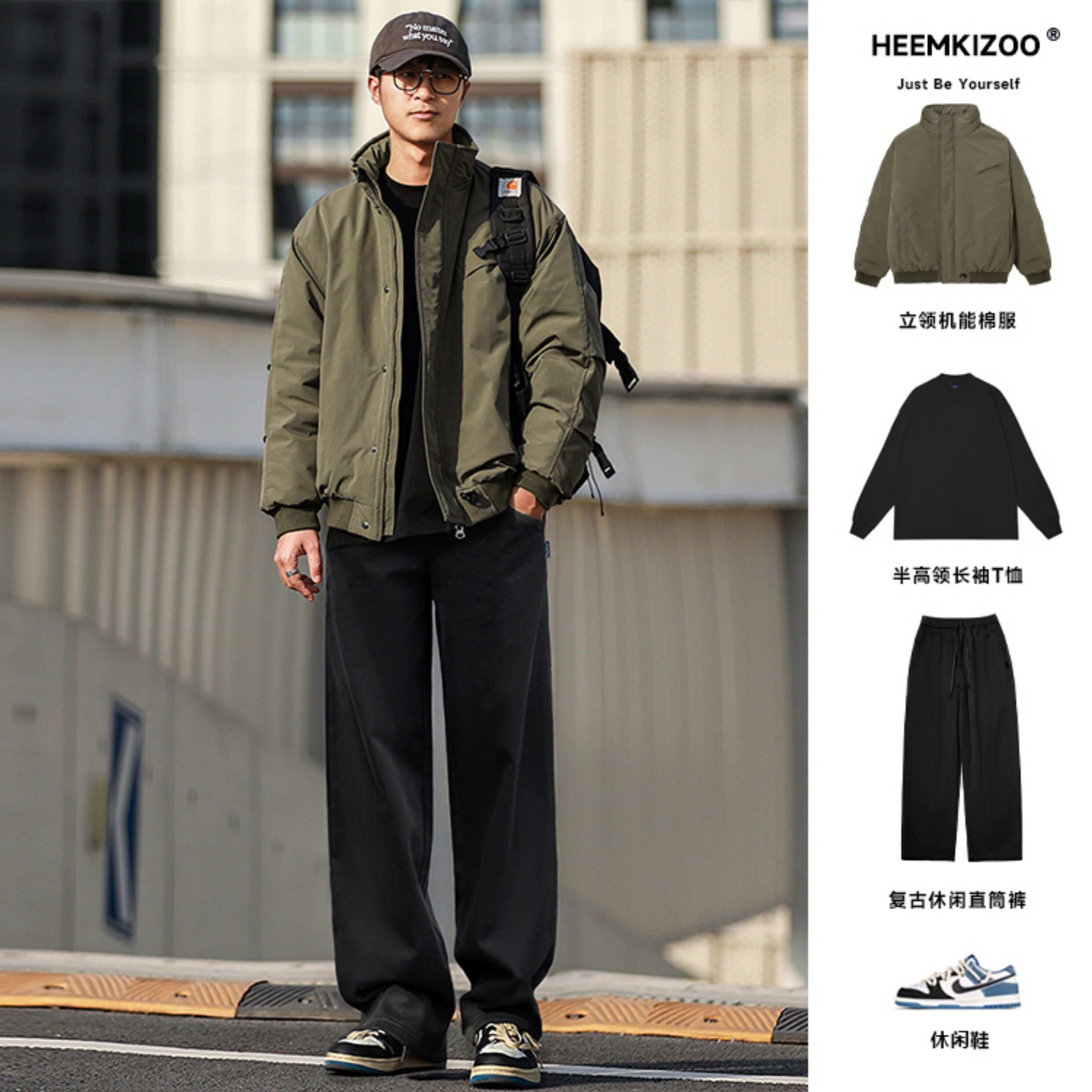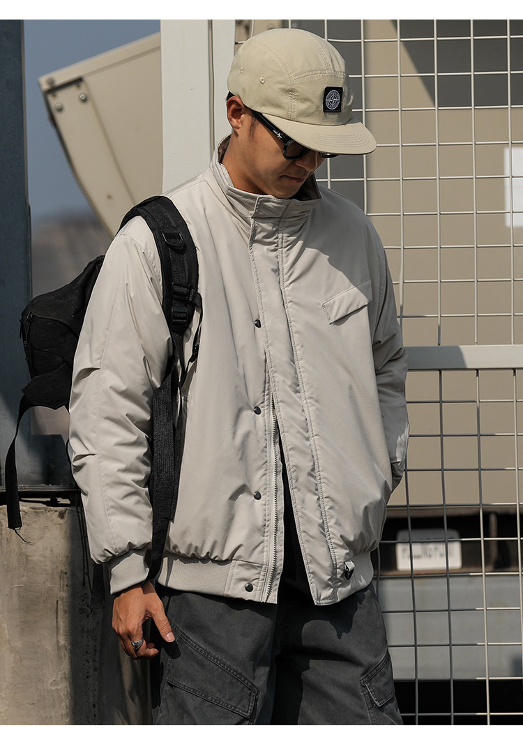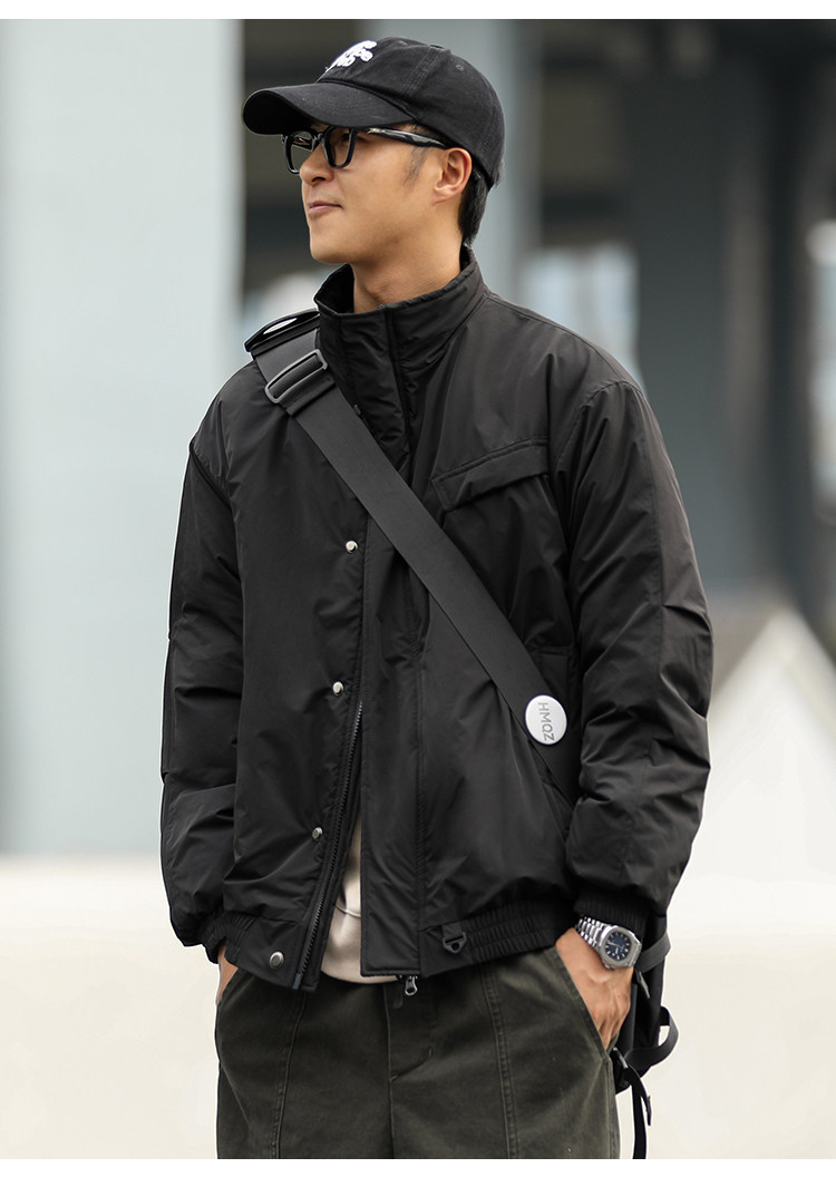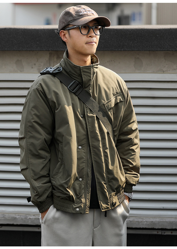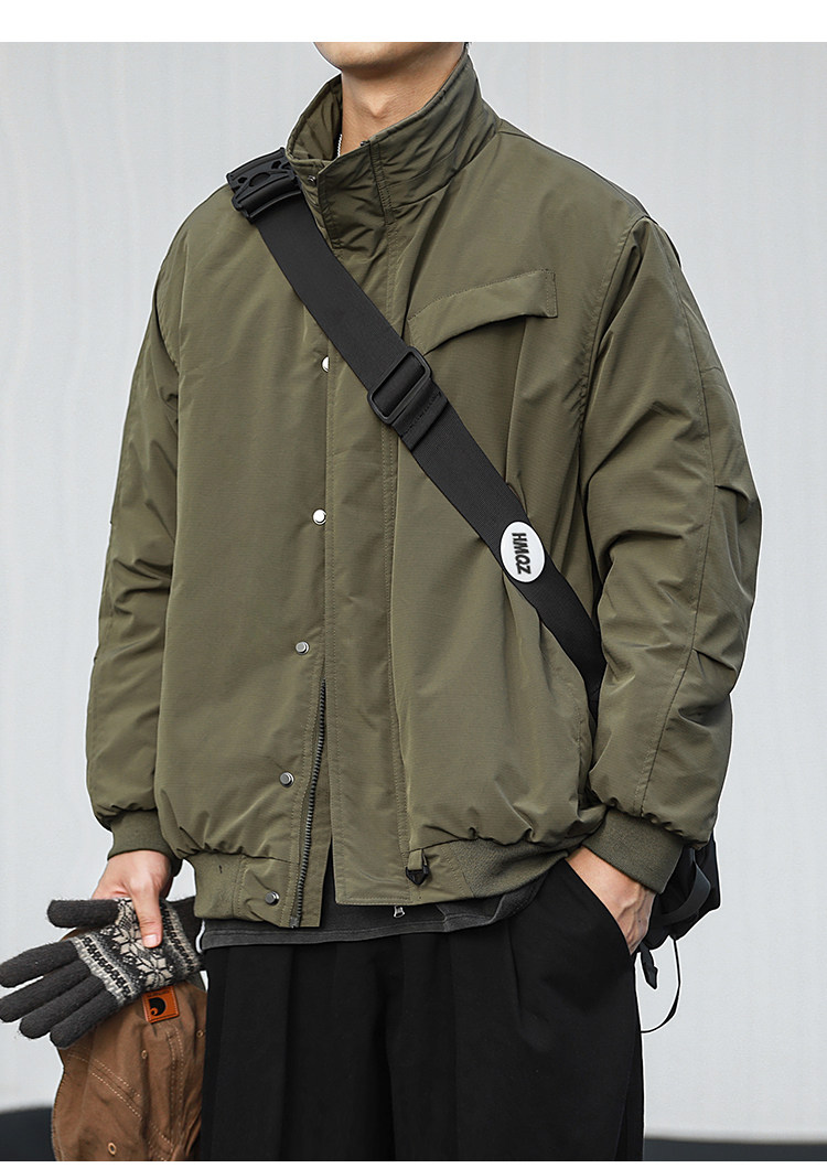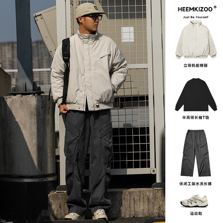Water-Repellent Heyma Qizuo Japanese Retro Winter Men's Dark Plaid American-Style Cotton Jacket with Stand Collar Trendy Brand