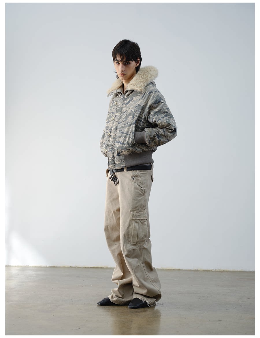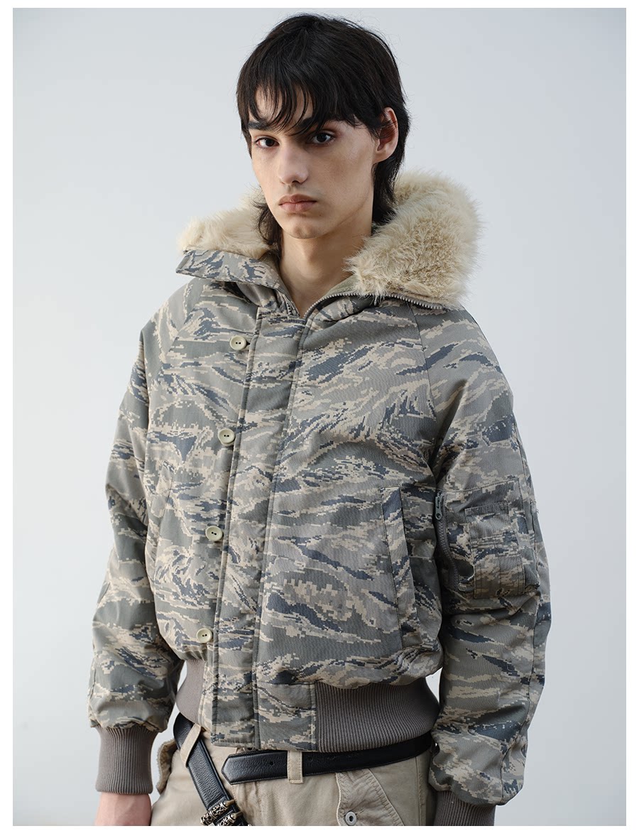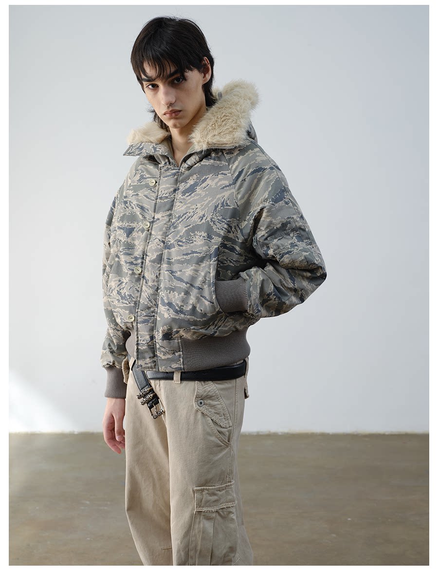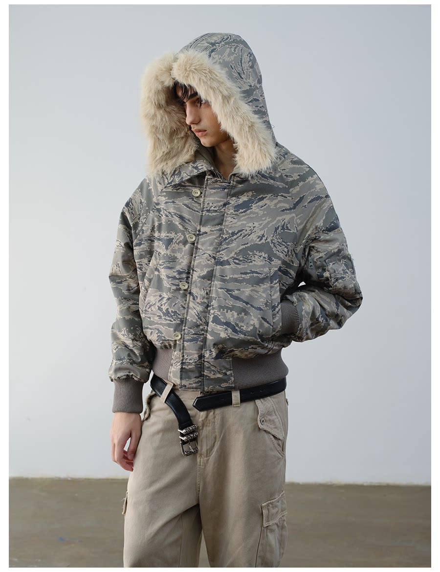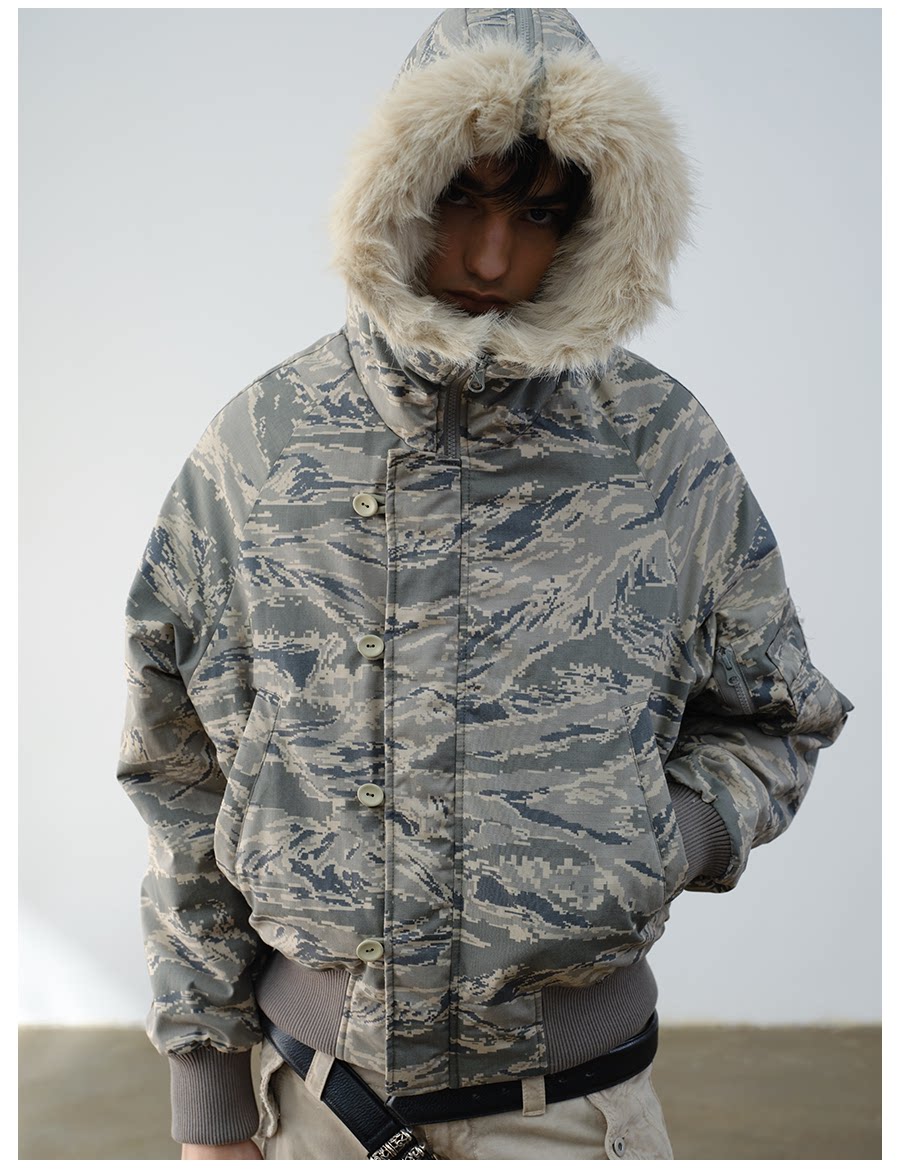 Vlabmade Polar Tiger Camouflage Fur Collar Mountain Eagle 3m Thinsulate Thickened Cotton Jacket N2B Coat