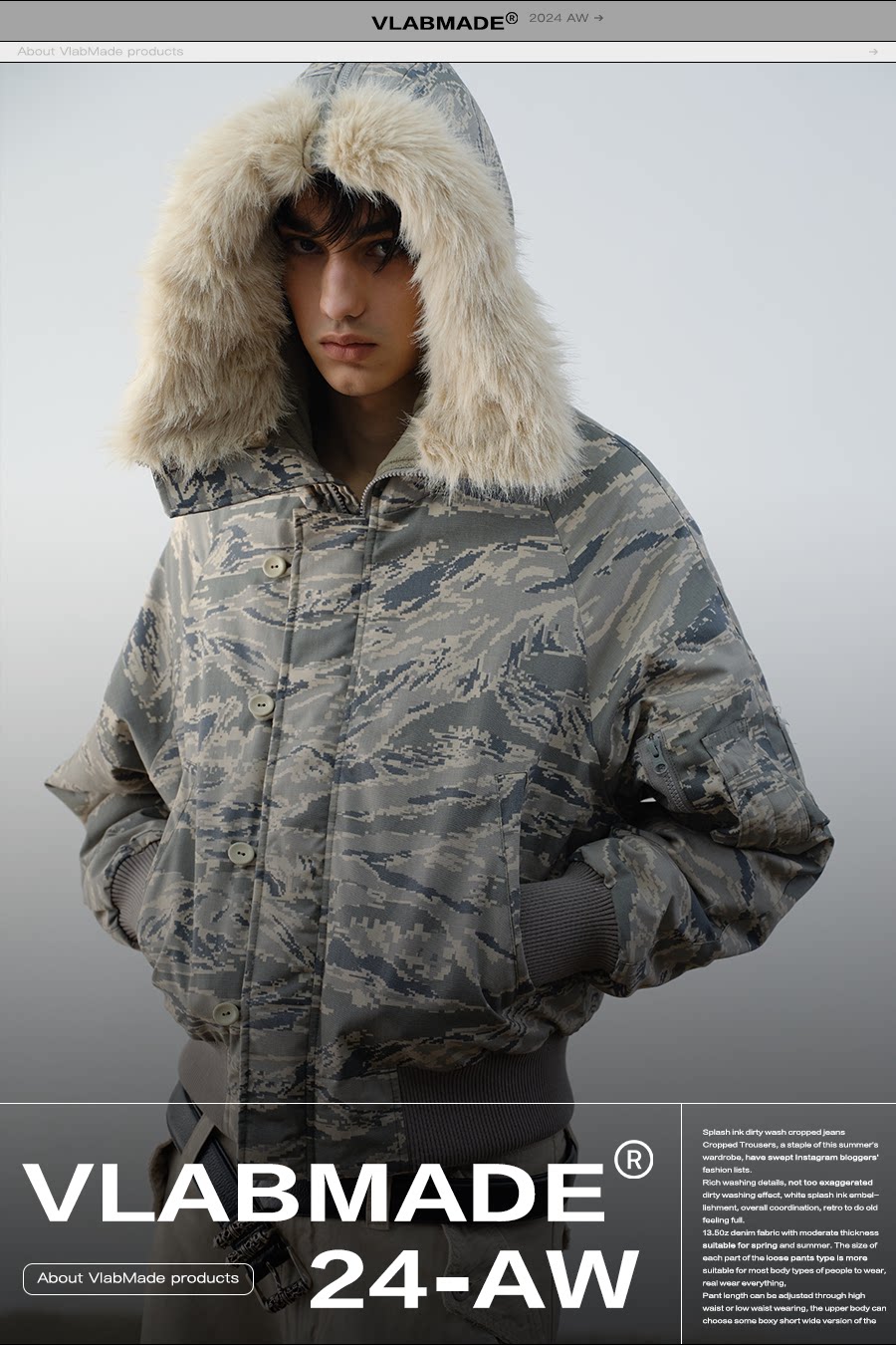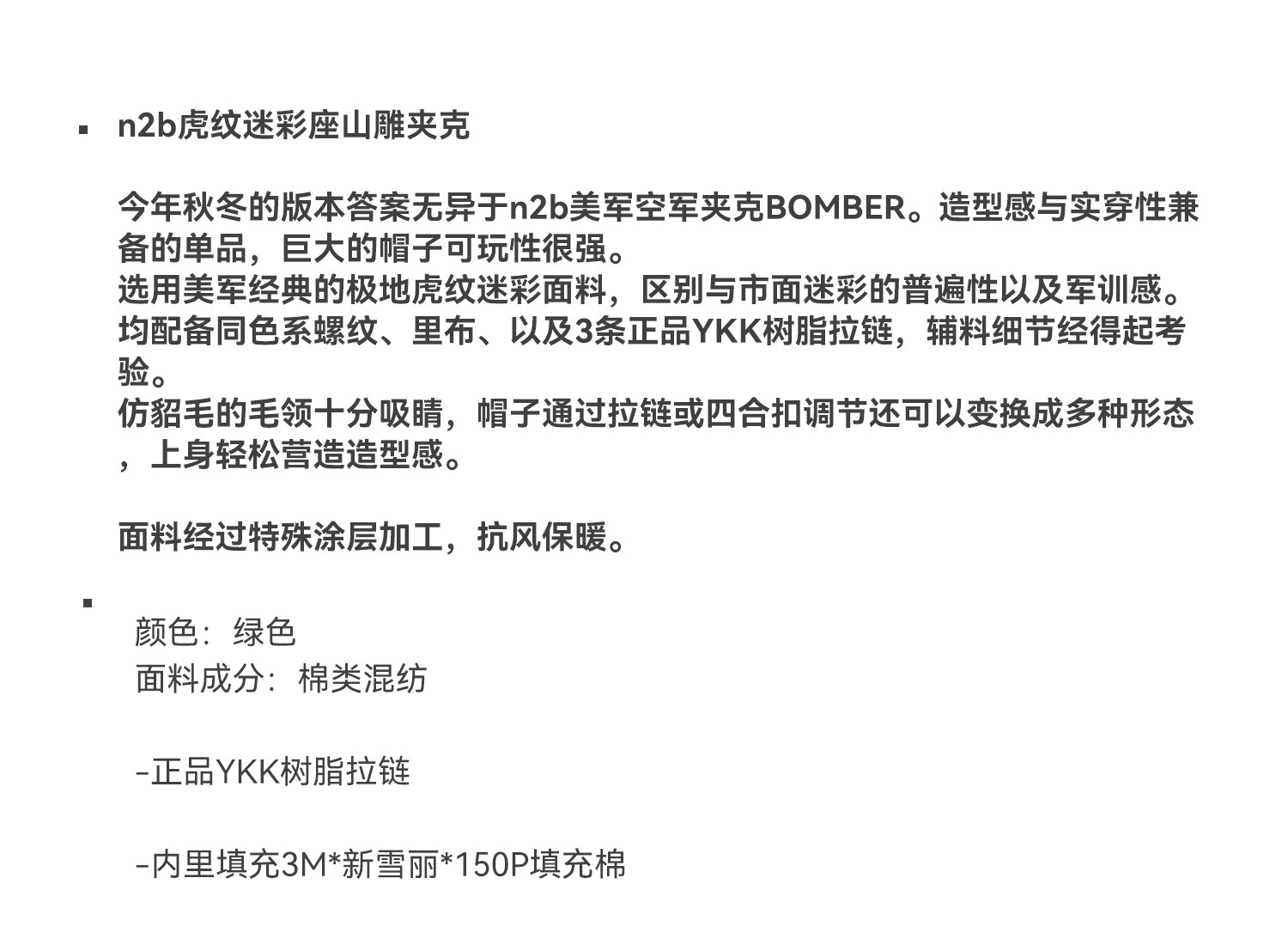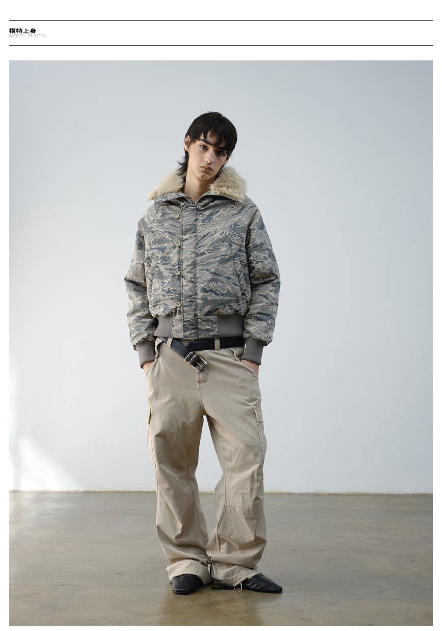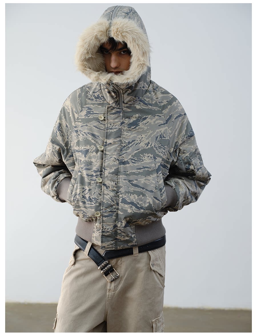 Vlabmade Polar Tiger Camouflage Fur Collar Mountain Eagle 3m Thinsulate Thickened Cotton Jacket N2B Coat