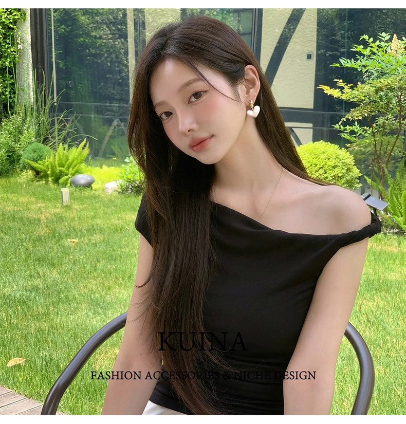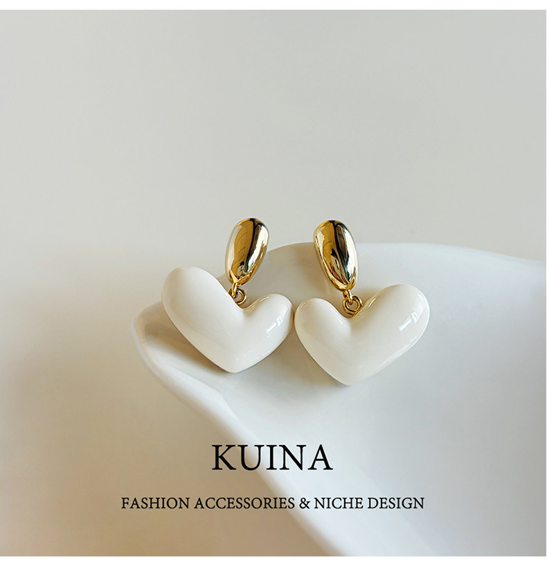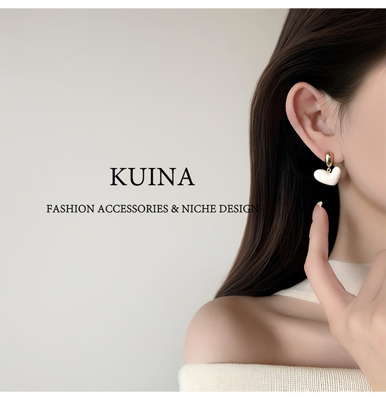 French-Style White Heart Earrings 2026 New Model Light Luxury High-End Silver Needle Stud Earrings for Women Unique Niche Earrings