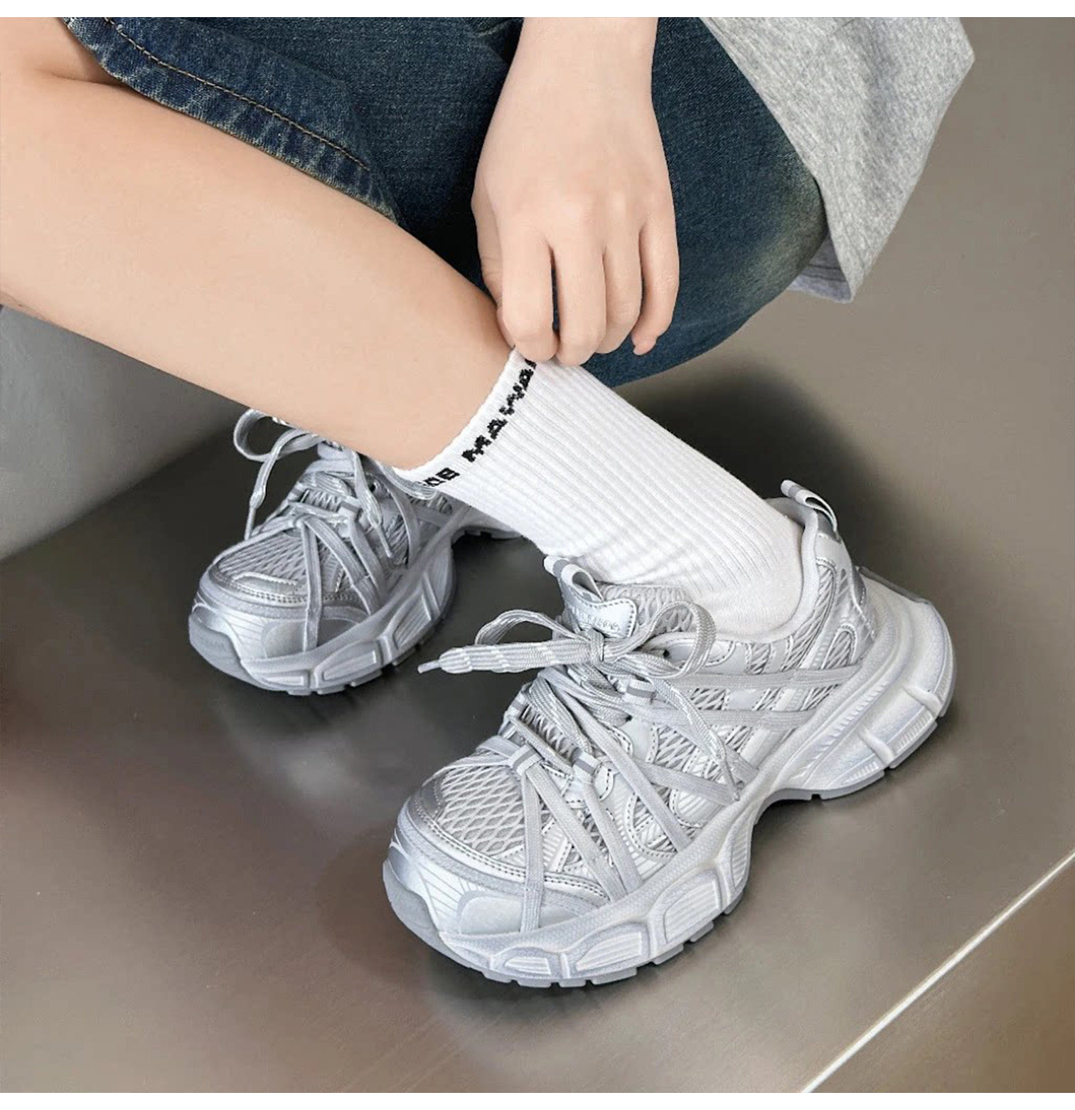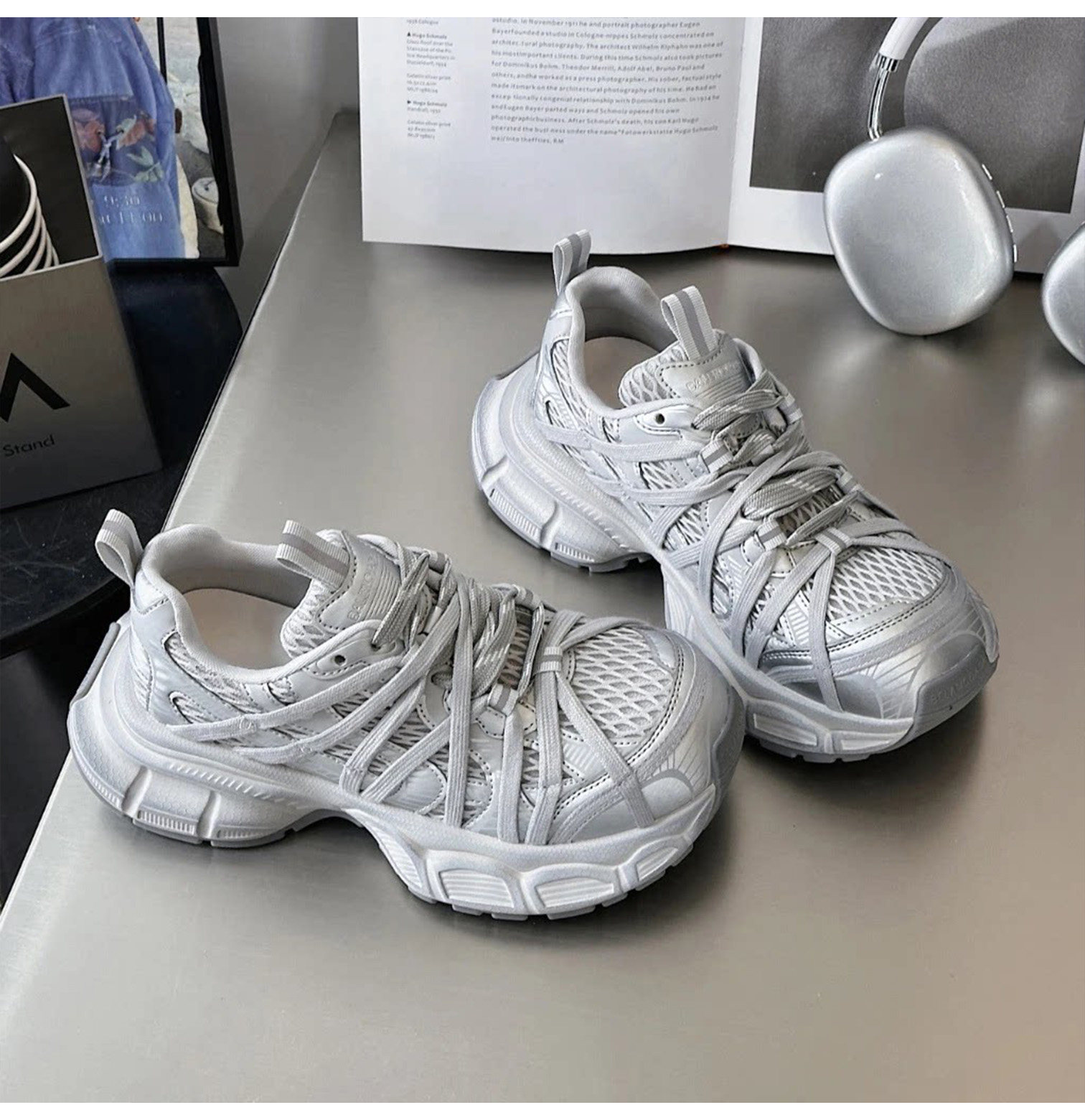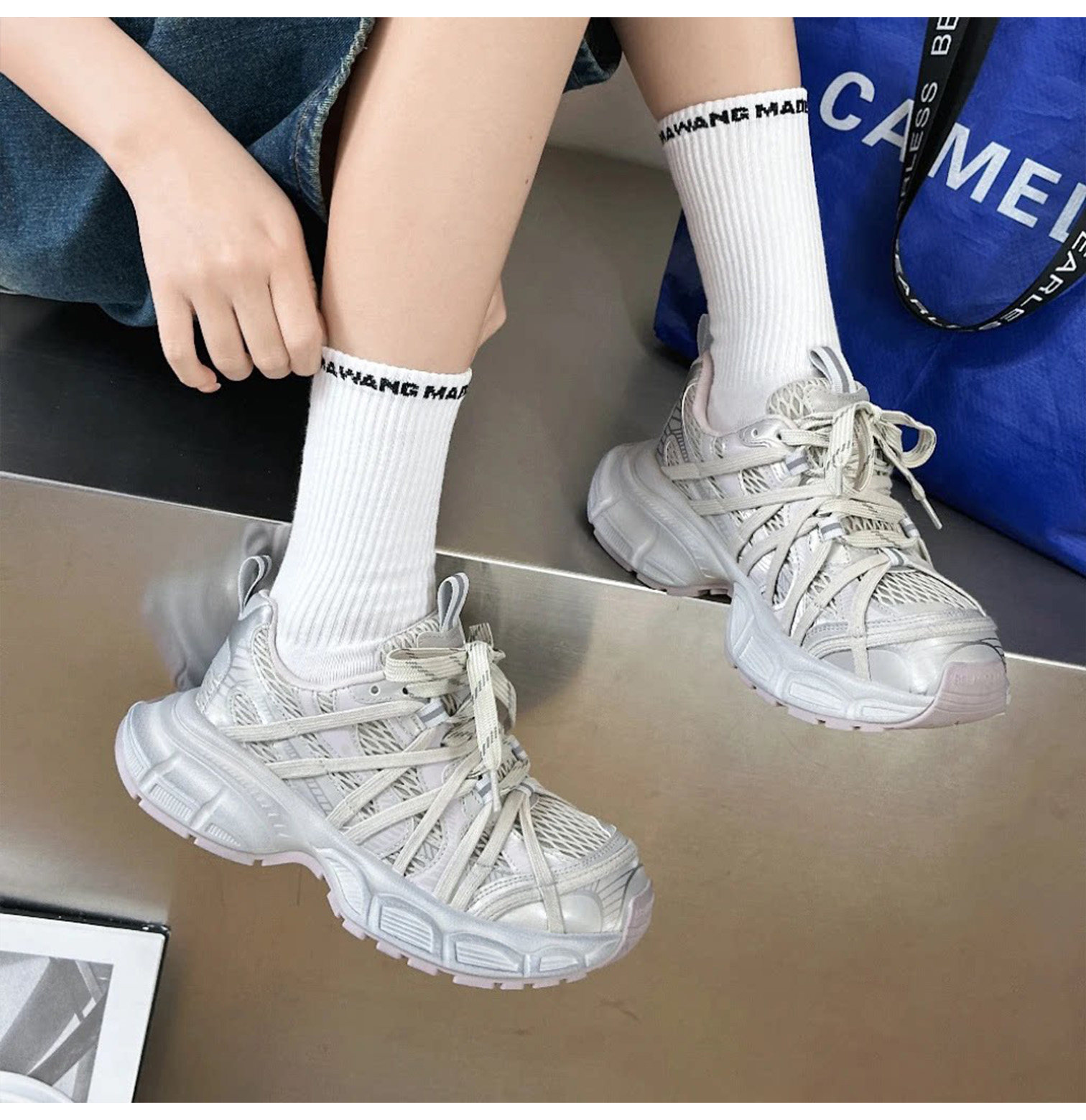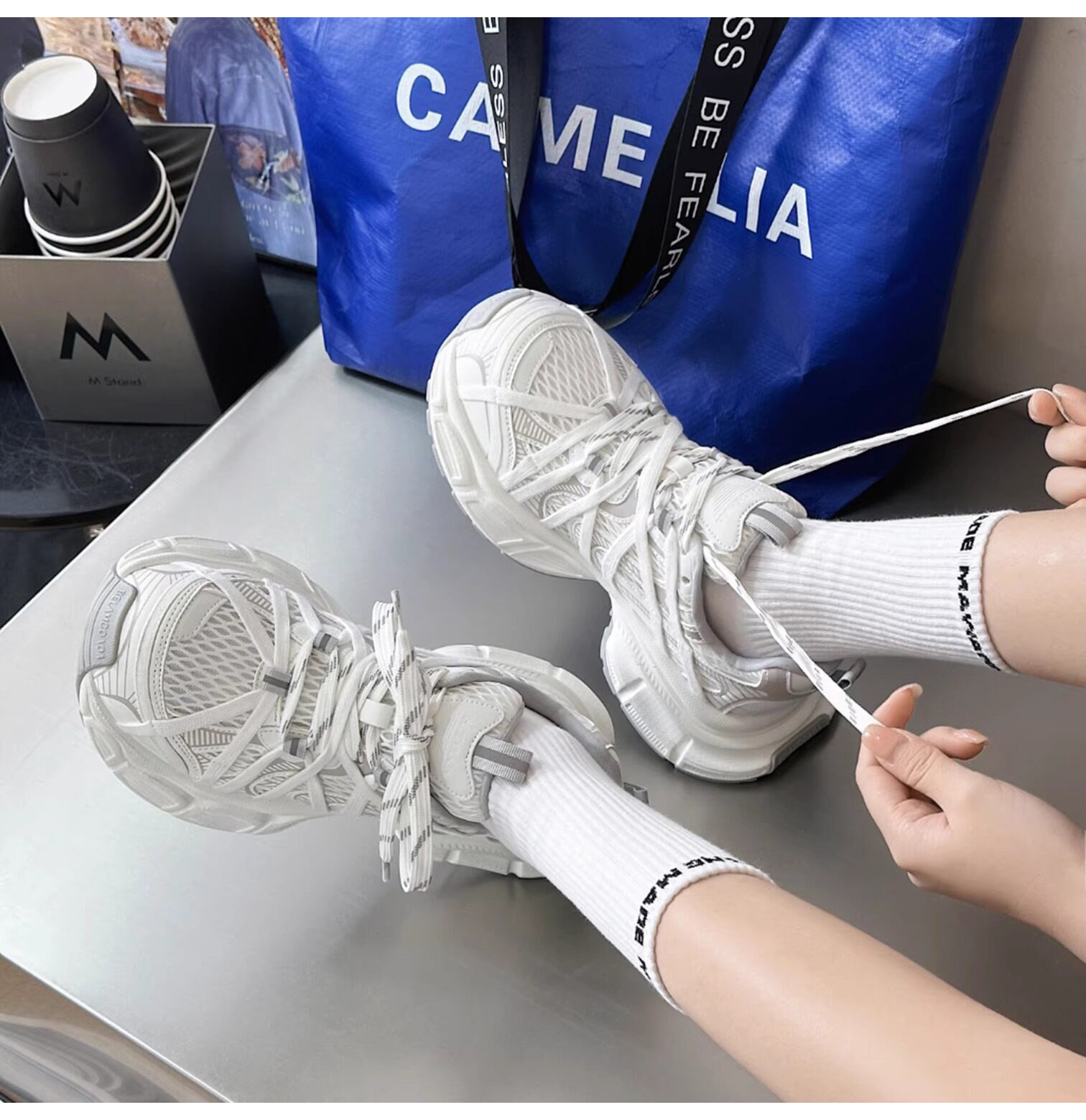 Hong Kong Vintage-Style Thick-Soled Dad Shoes for Women, 2026 Spring New Model, Super Popular Lace-Up Mesh Breathable Casual Sneakers