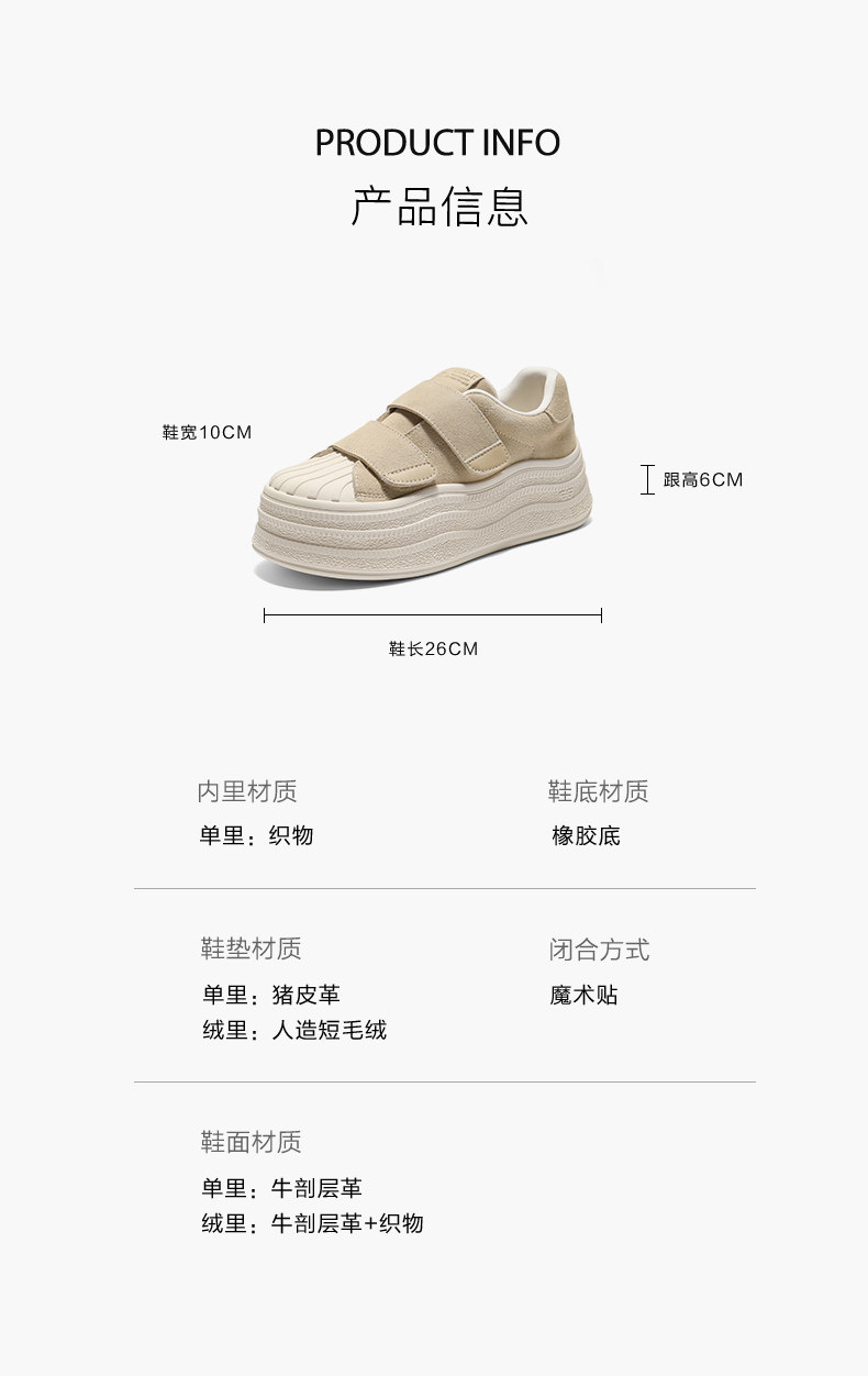 Belle Retro White Sneakers for Women, New Thick-Soled Height-Increasing Shell-Toe Loafers B2919Cm5