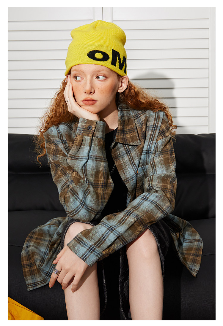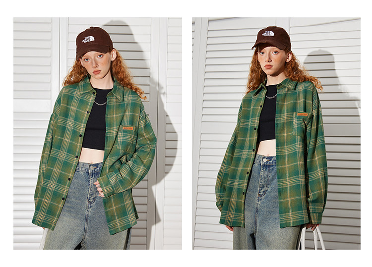 Beetle Town American Retro Brushed Plaid Long-Sleeved Shirt for Women, Spring and Autumn Lazy Shirt, Couple's Thin Jacket