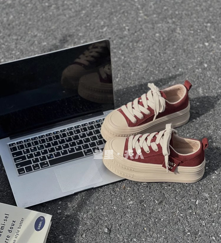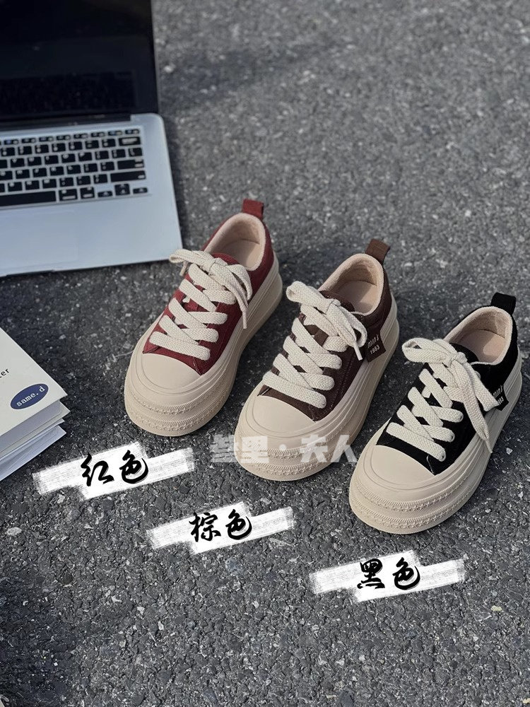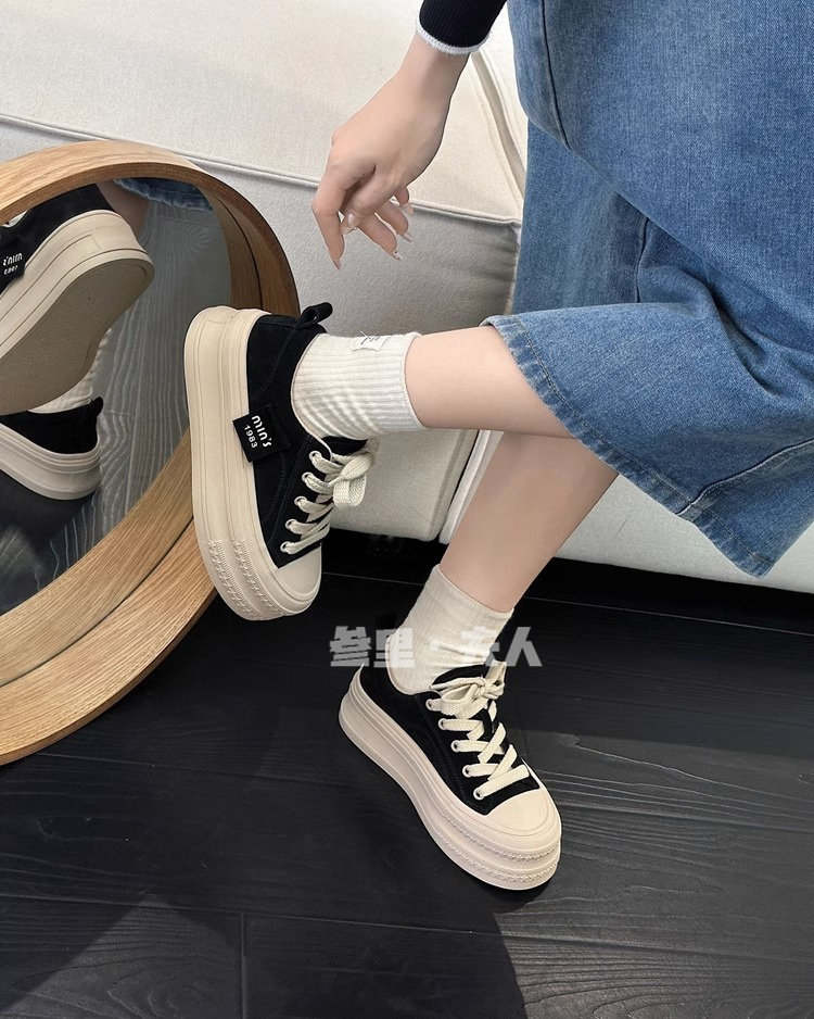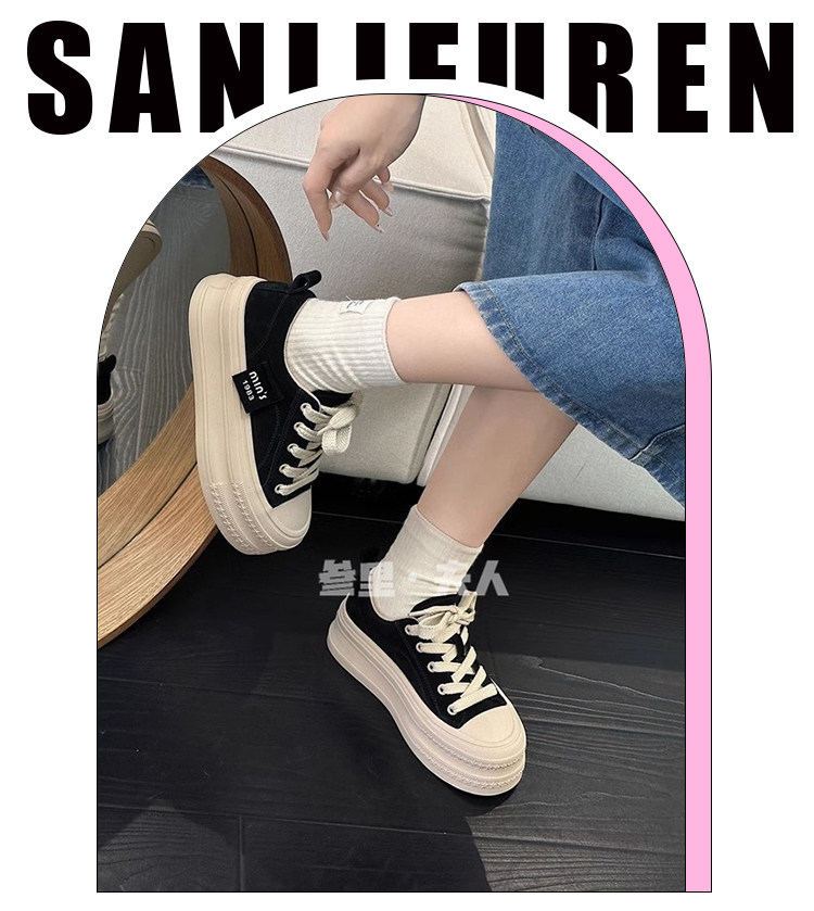Italy Sanli~ Height-Increasing Thick-Soled Sneakers for Women, Versatile Lightweight Canvas Shoes for Spring and Autumn, Casual Sports Shoes for Petite Individuals