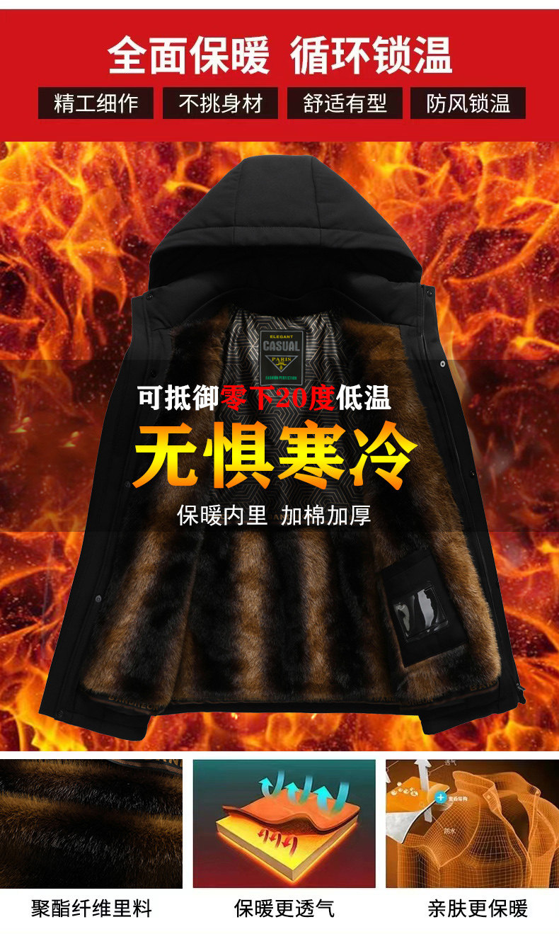 Woodpecker Brand New Winter Cotton Coat for Middle-Aged Men, Dad's Style, Fleece-Lined and Thickened Jacket with Hood