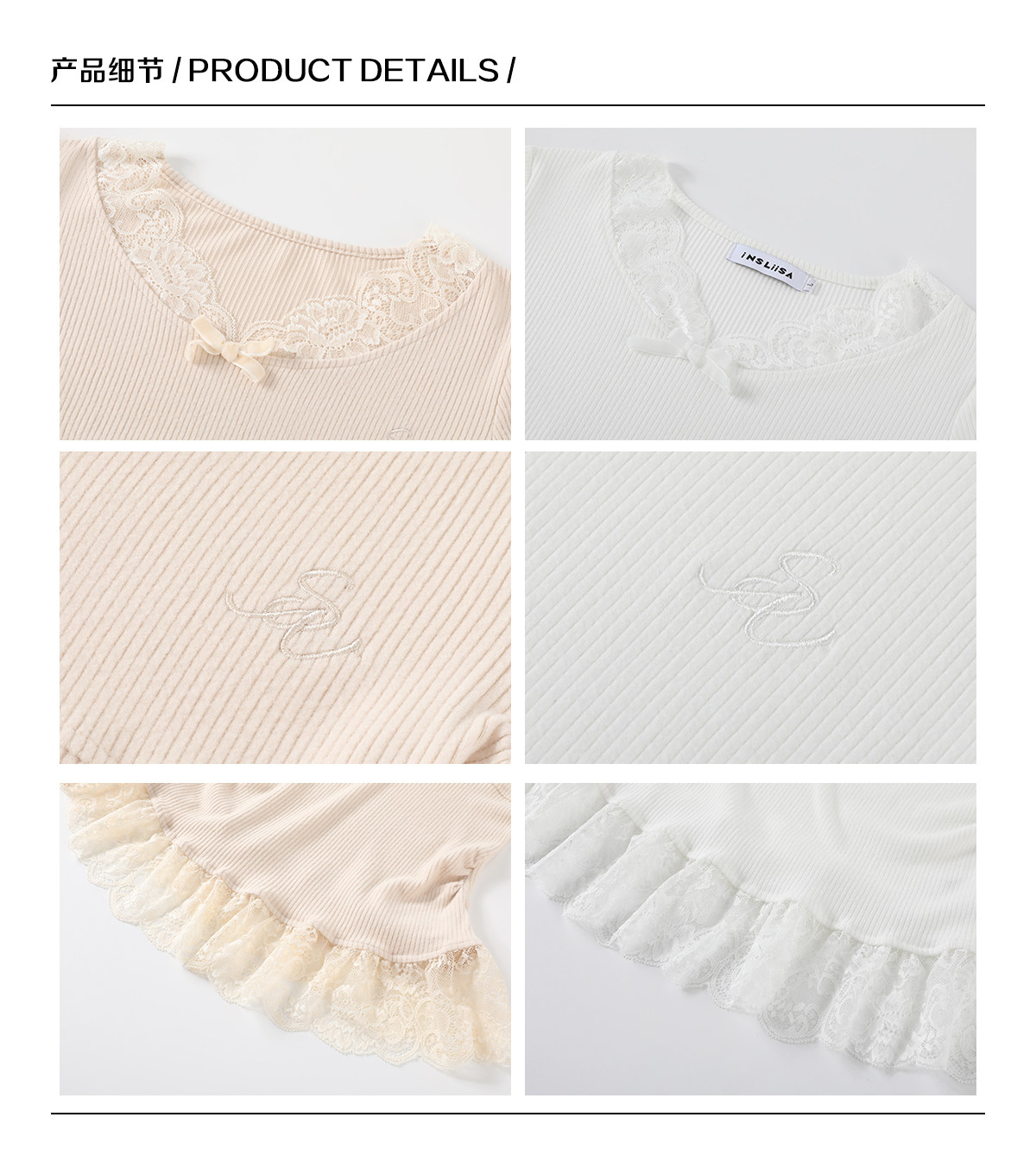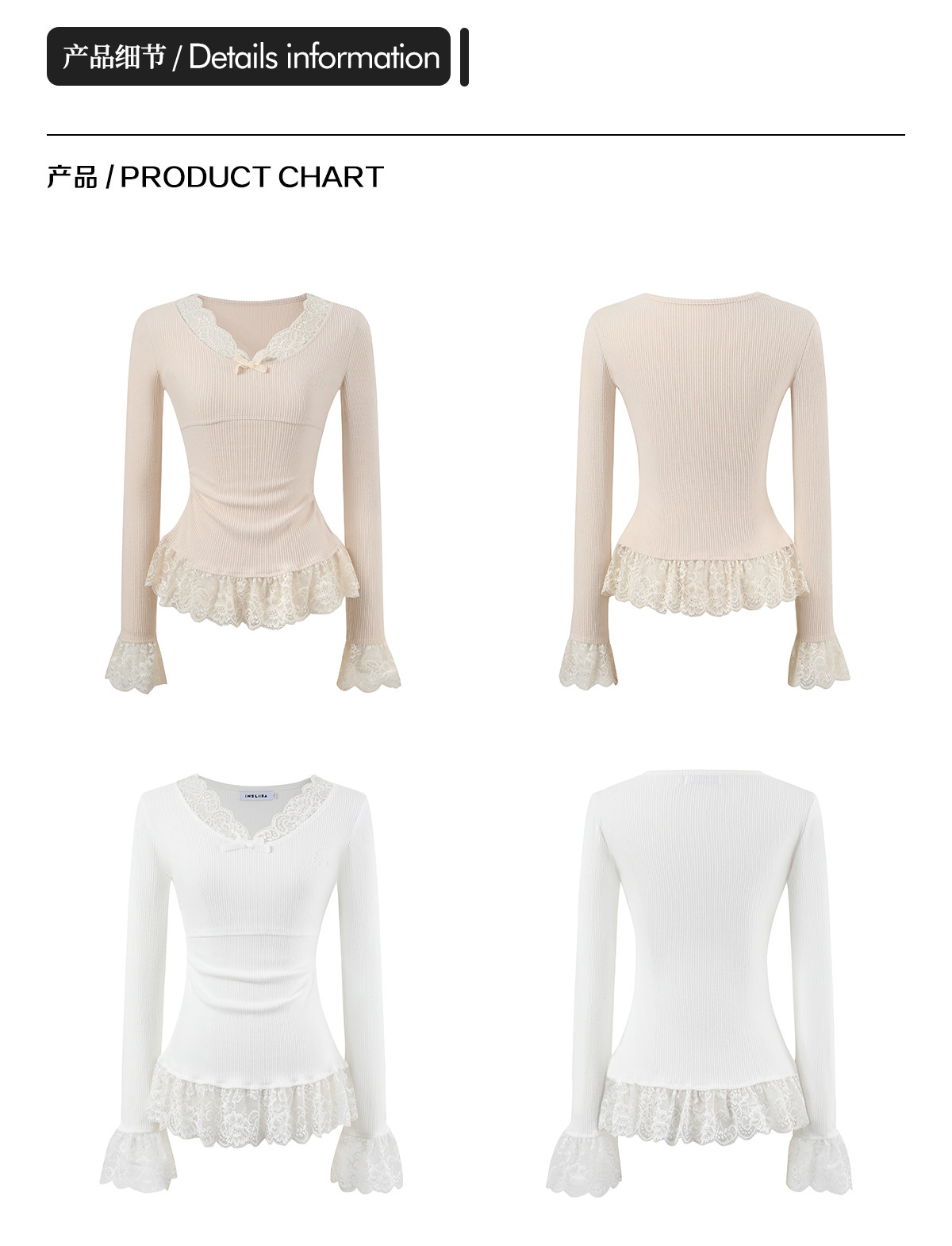 Insliisa Korean Style Lace Early Spring Apricot-Colored Long-Sleeve T-Shirt for Women, Slim Fit, Flattering, Pure and Desirable, Can Be Worn as an Outer Layer or as a Base Layer