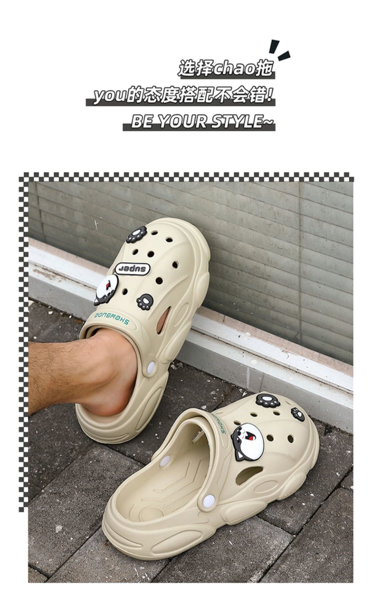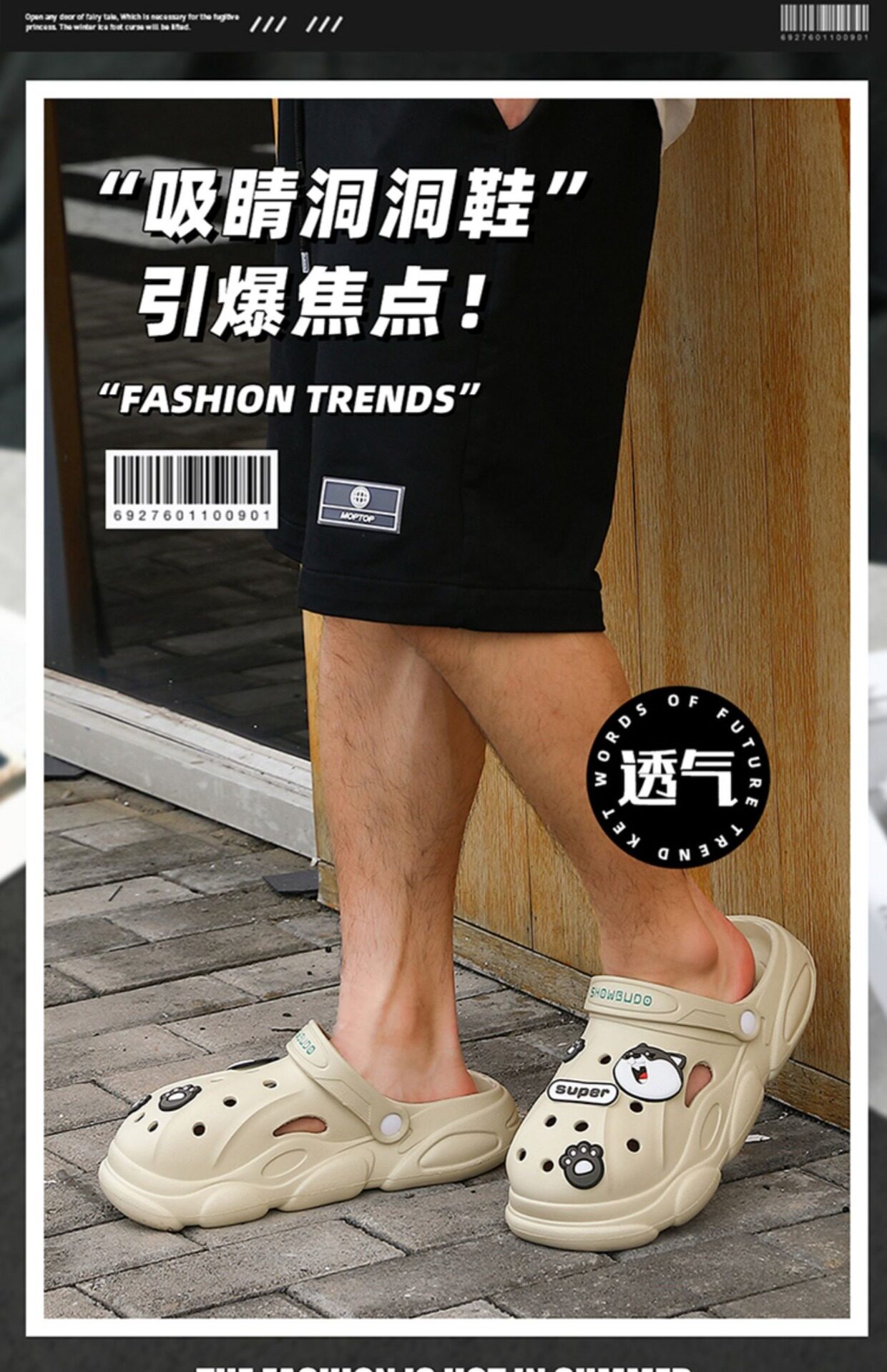 Japanese-Style Gp Clogs for Men and Women, Suitable for Spring and Summer, Outdoor Sports, Thick Soft Sole, Non-Slip, Closed-Toe, Half-Slipper, Breathable, Men's soft sole Cool