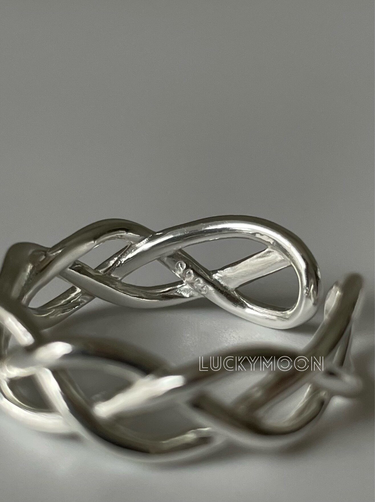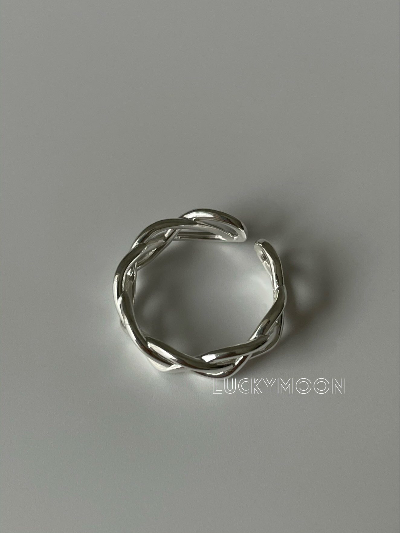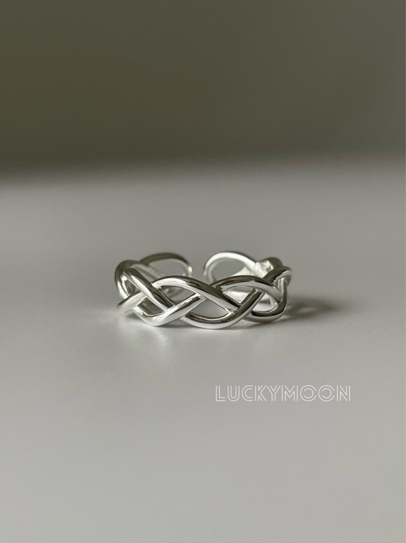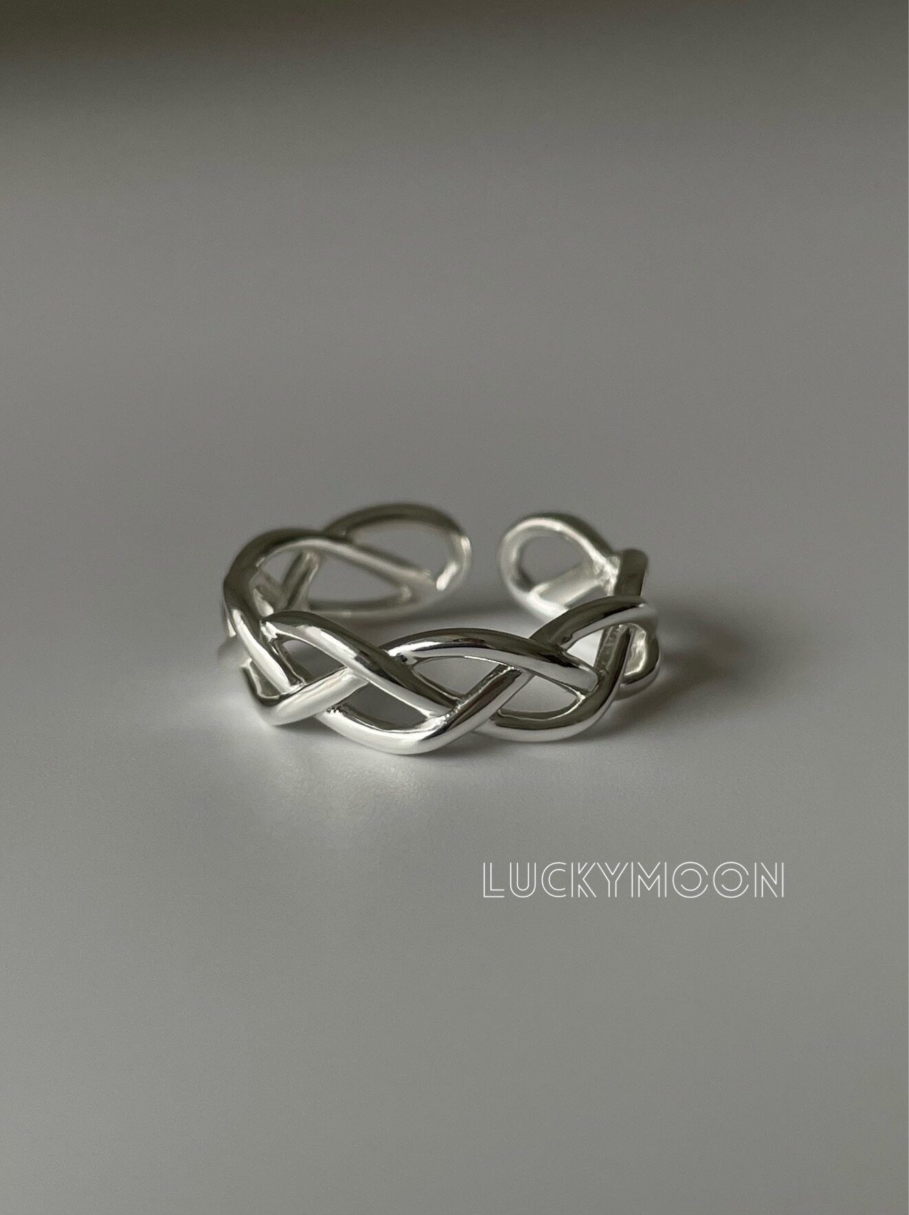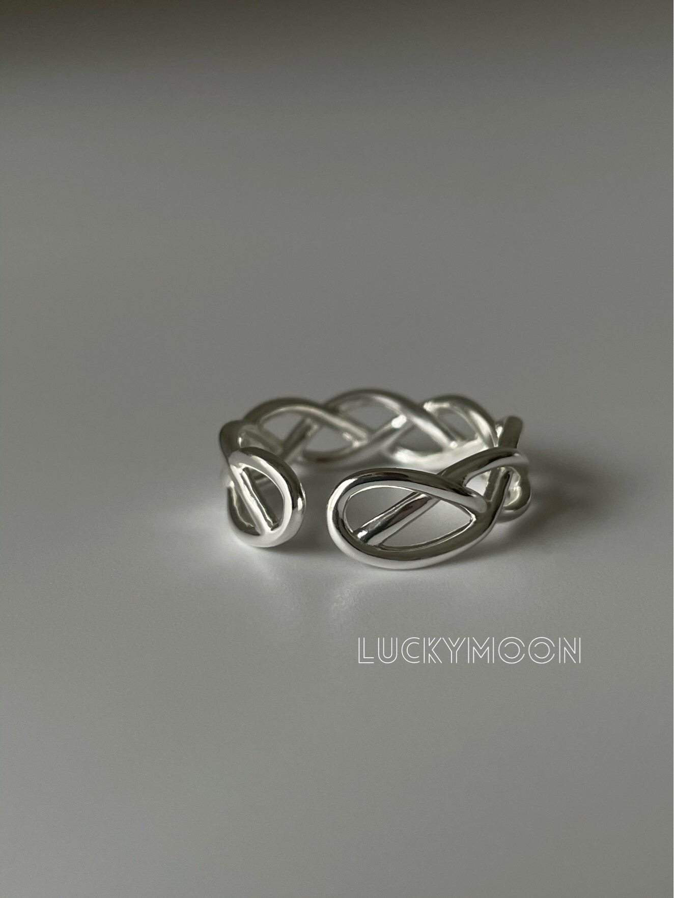 Luckymoon Hollow Line Weaving Minimalist Korean Style Ring with Adjustable Opening, All-Over S925 Sterling Silver R310
