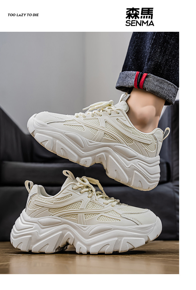 Semir Men's Shoes 2026 New Summer Breathable Mesh Sports Casual Thick-Soled Height-Increasing Popular White Dad Sneakers