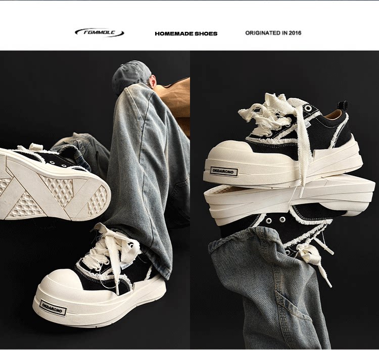 Okko Celebrity-Style Canvas Shoes for Men and Women, Thick-Soled Height-Increasing Outdoor Hiking and Running Shoes, Fashionable and Versatile Casual Sneakers