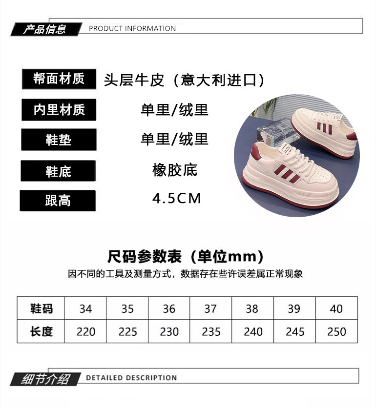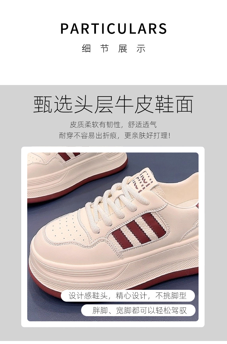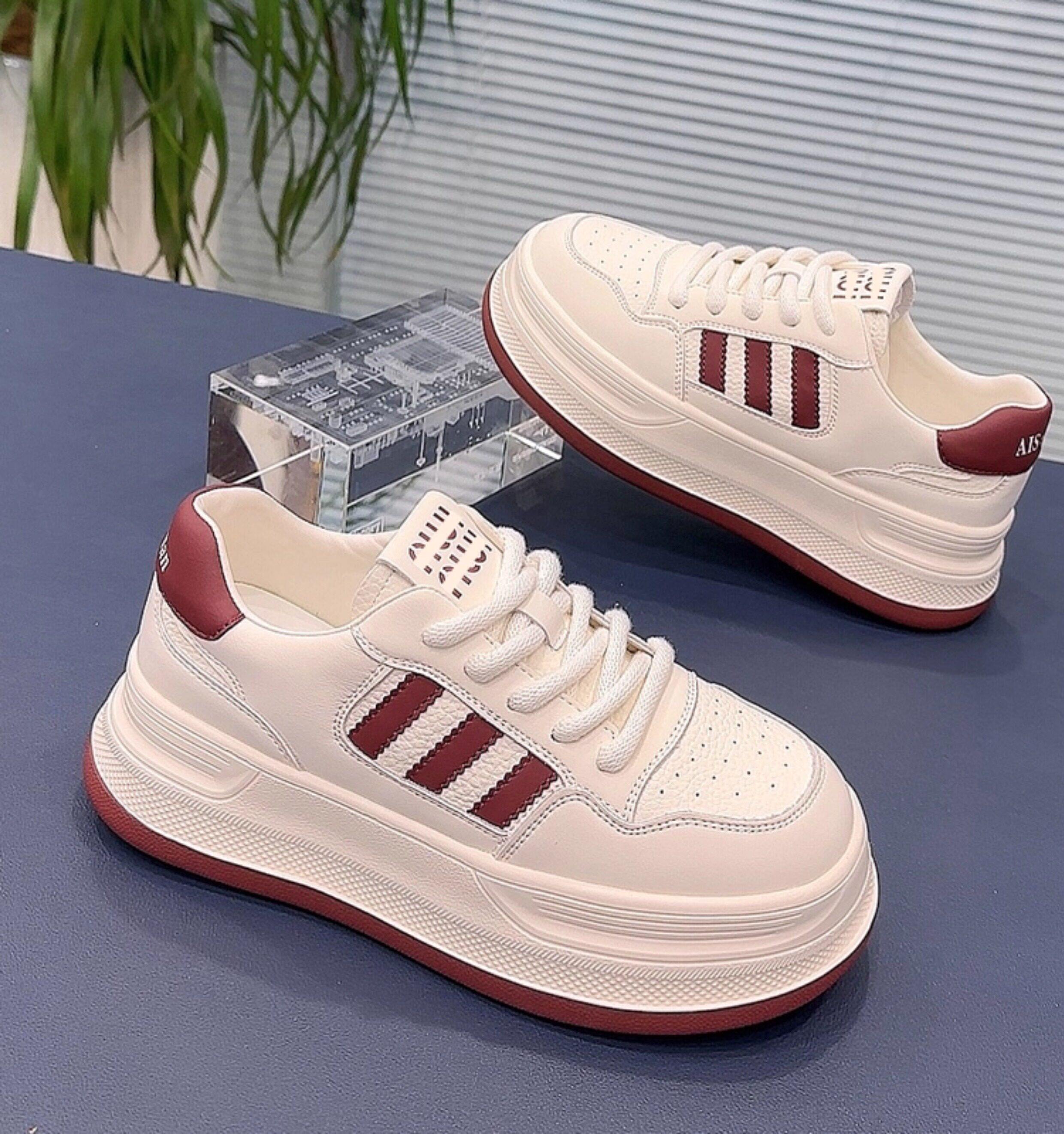 Hong Kong Thick-Soled Genuine Leather Popular Versatile White Sneakers for Women 2026 Spring and Autumn Warm Fashionable Flat-Soled Sports Casual Sneakers